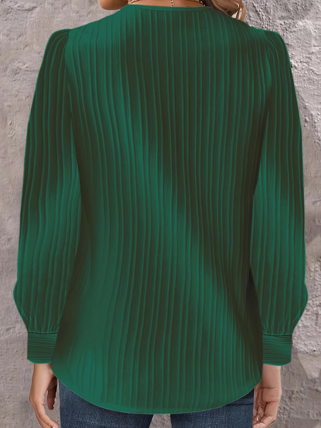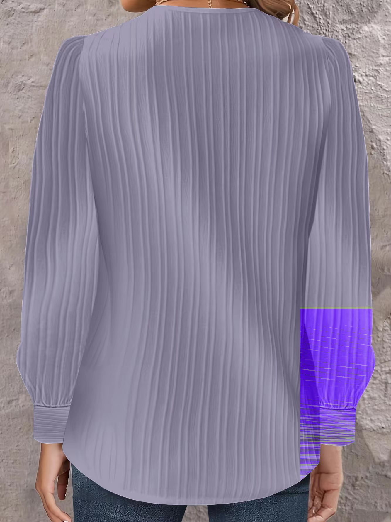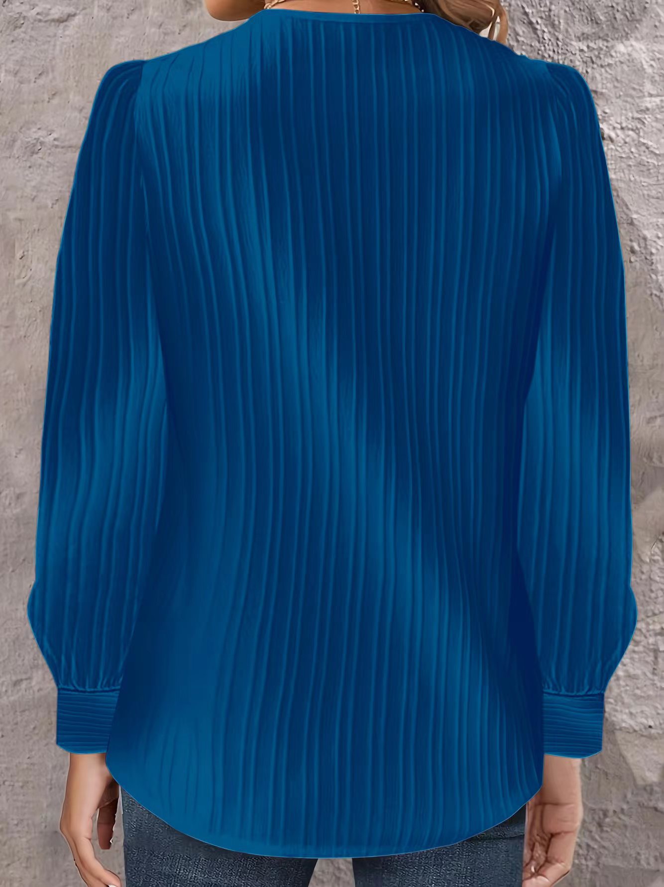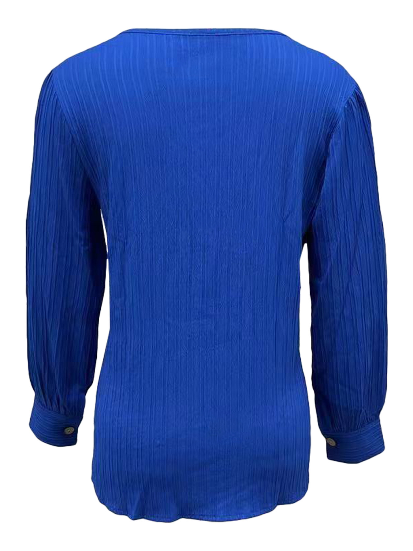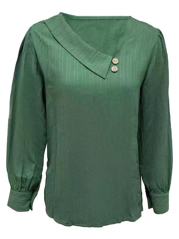 가을 2023 새로운 소원 아마존 유럽과 미국 심플한 V-넥 버튼 단색 여성용 모든 경기 긴 소매 플리츠 셔츠