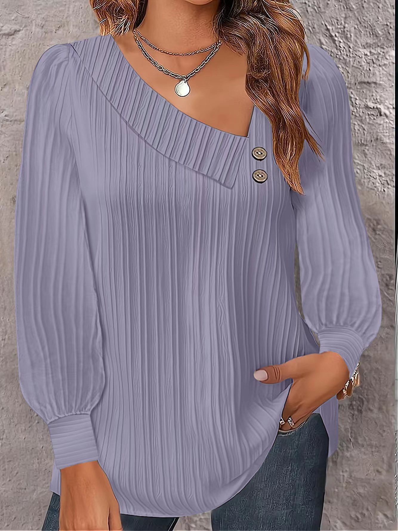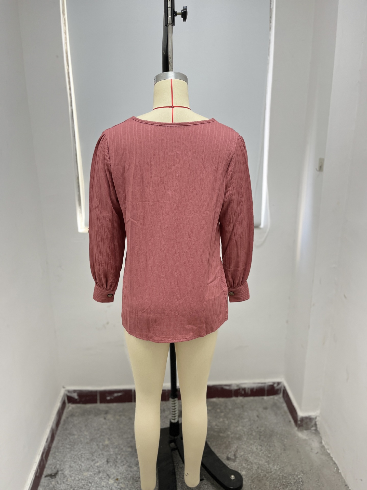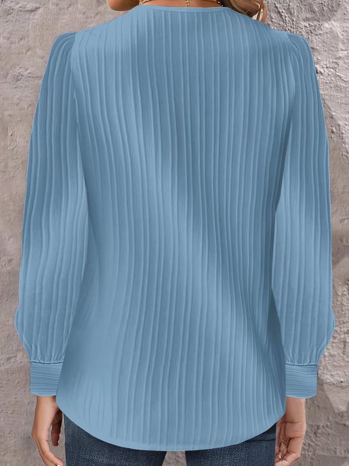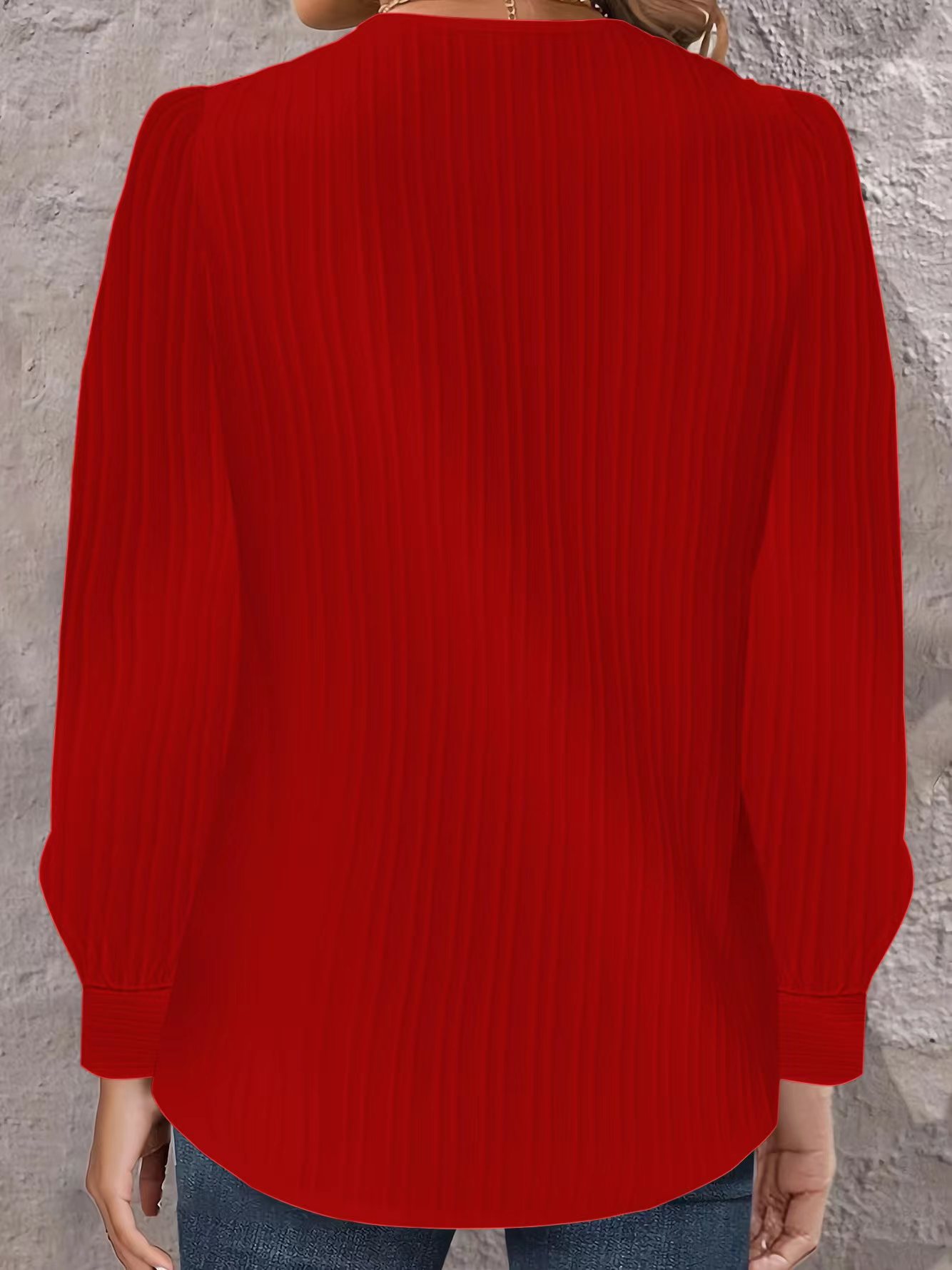 가을 2023 새로운 소원 아마존 유럽과 미국 심플한 V-넥 버튼 단색 여성용 모든 경기 긴 소매 플리츠 셔츠