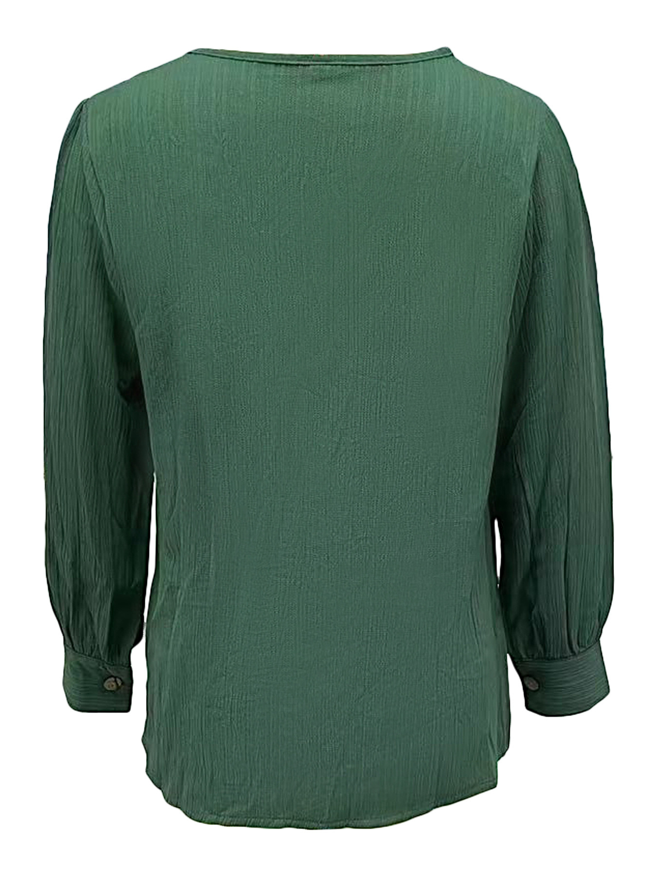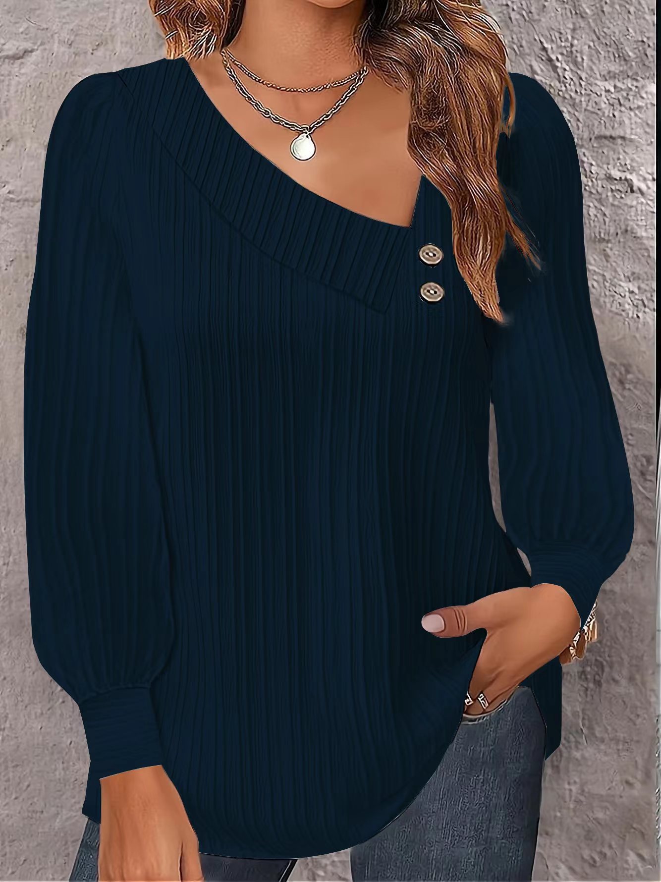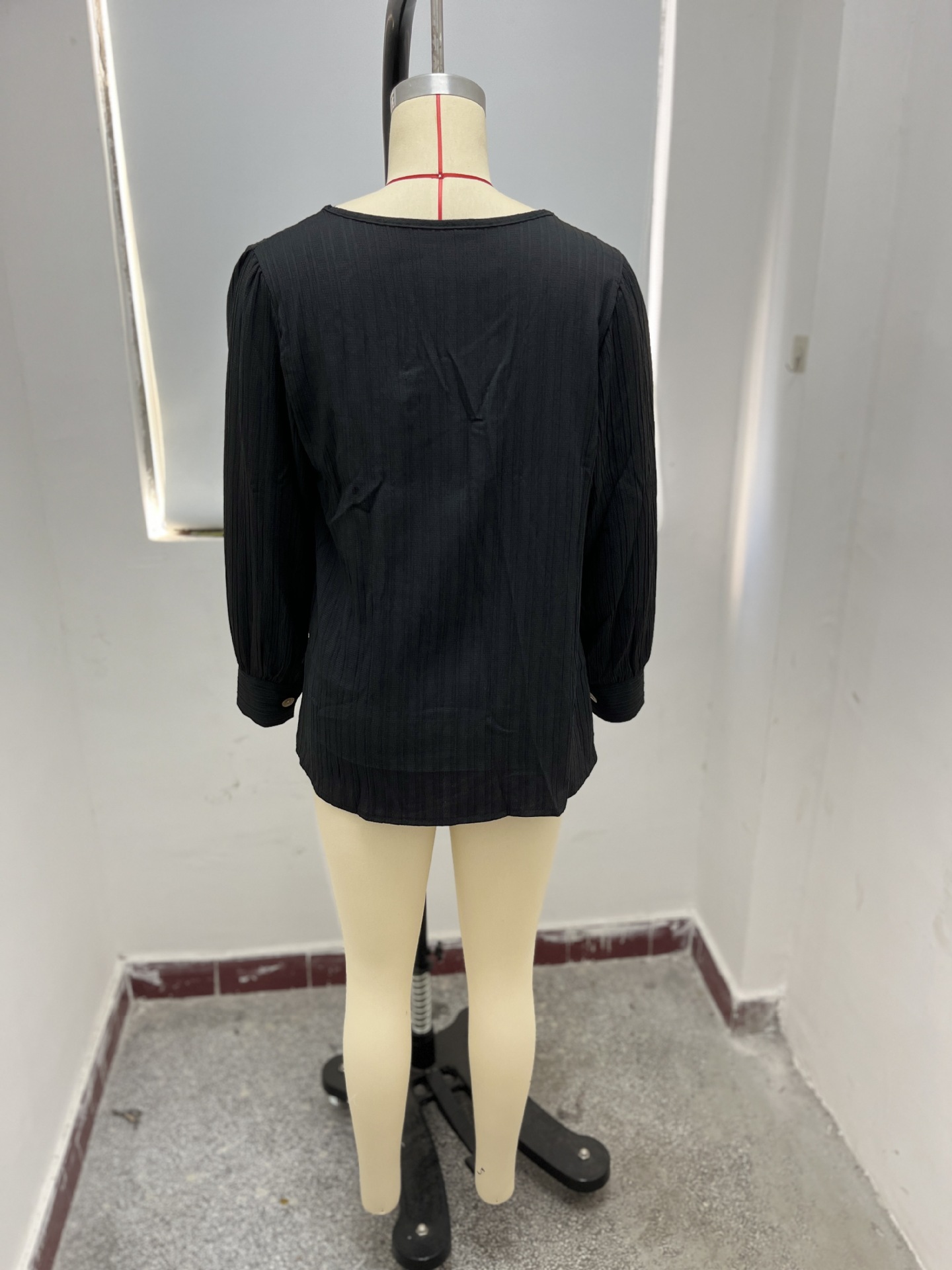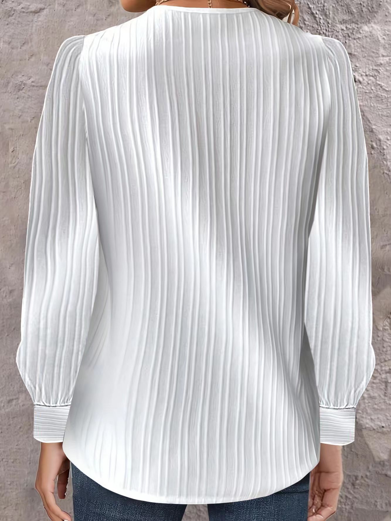 가을 2023 새로운 소원 아마존 유럽과 미국 심플한 V-넥 버튼 단색 여성용 모든 경기 긴 소매 플리츠 셔츠