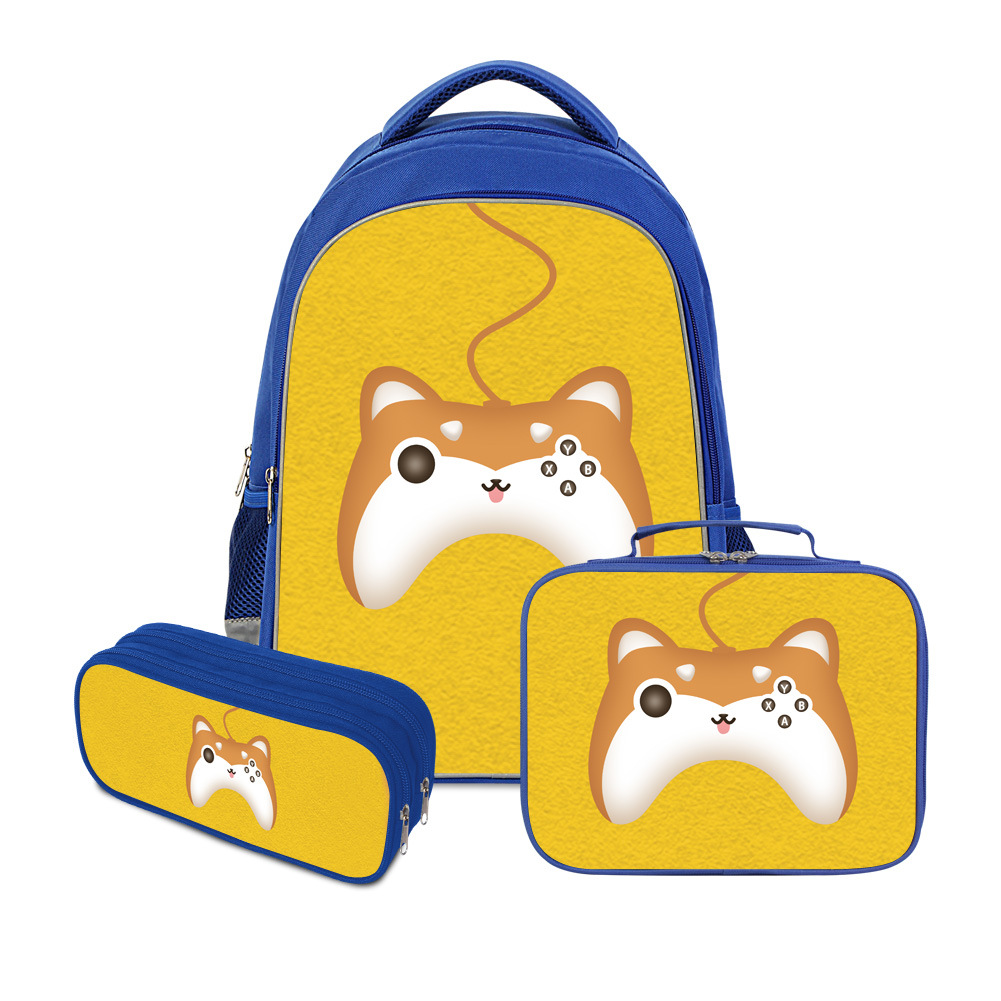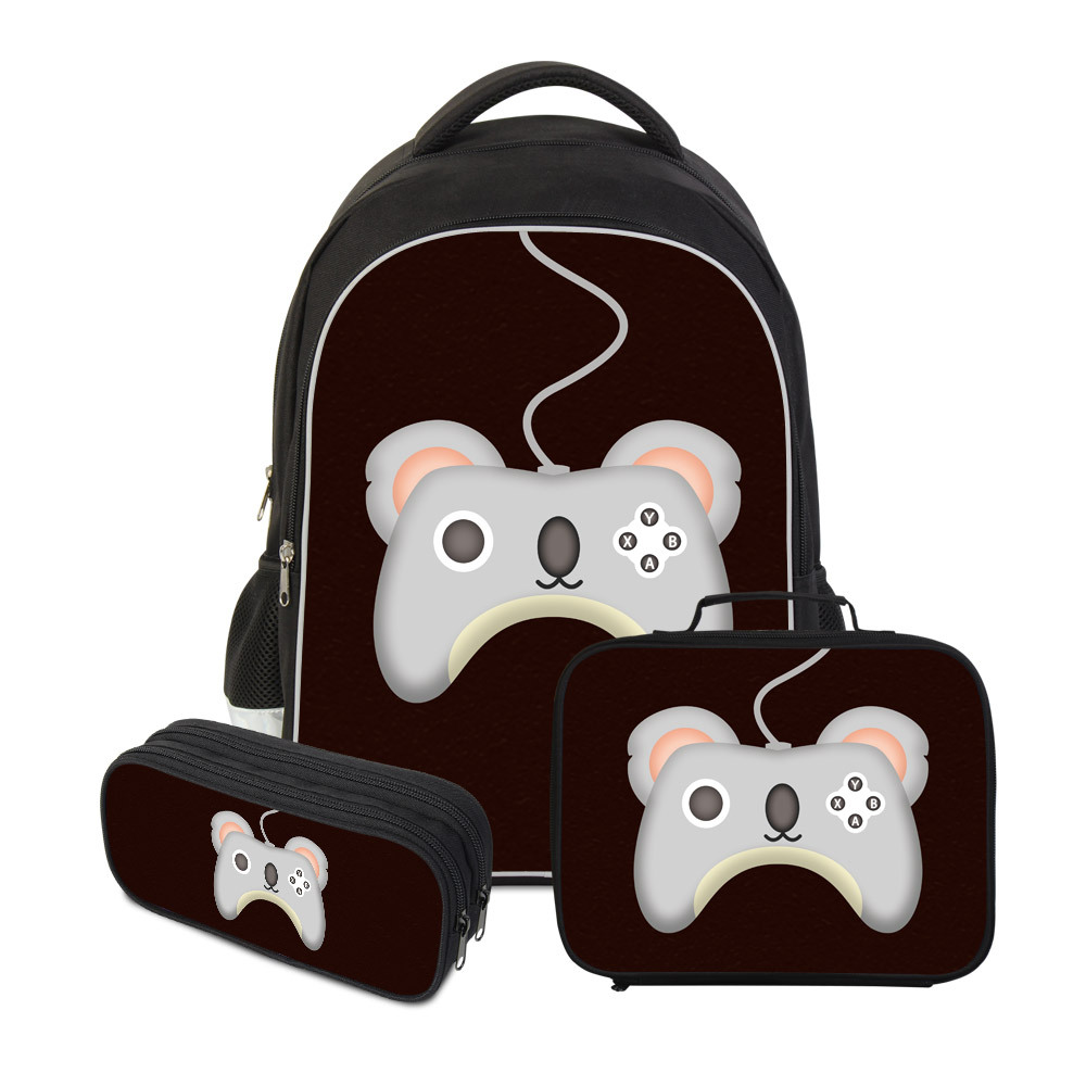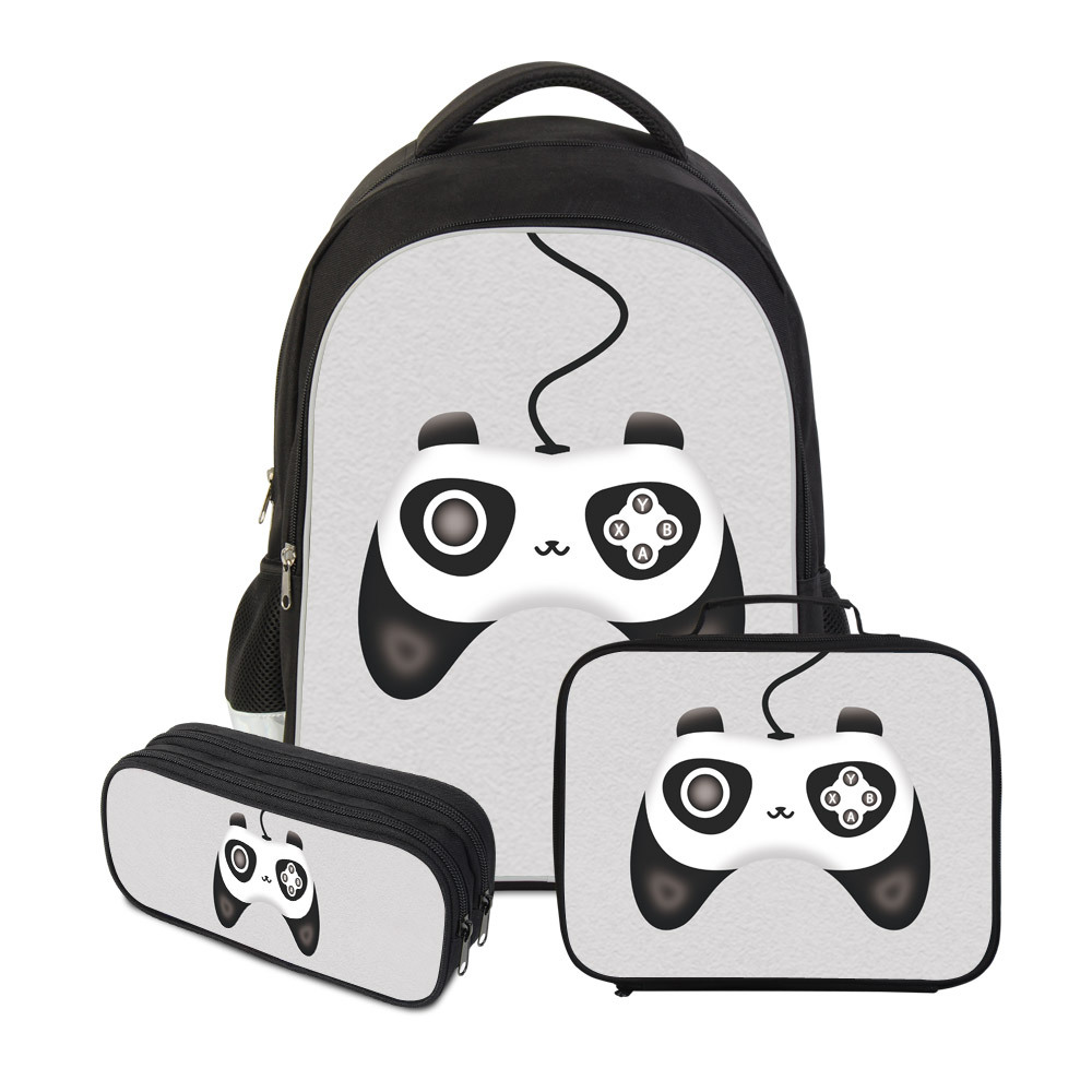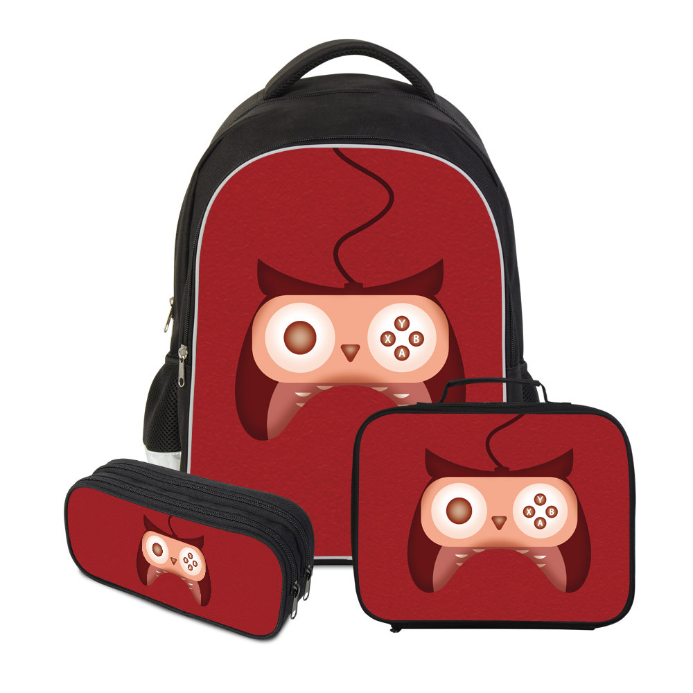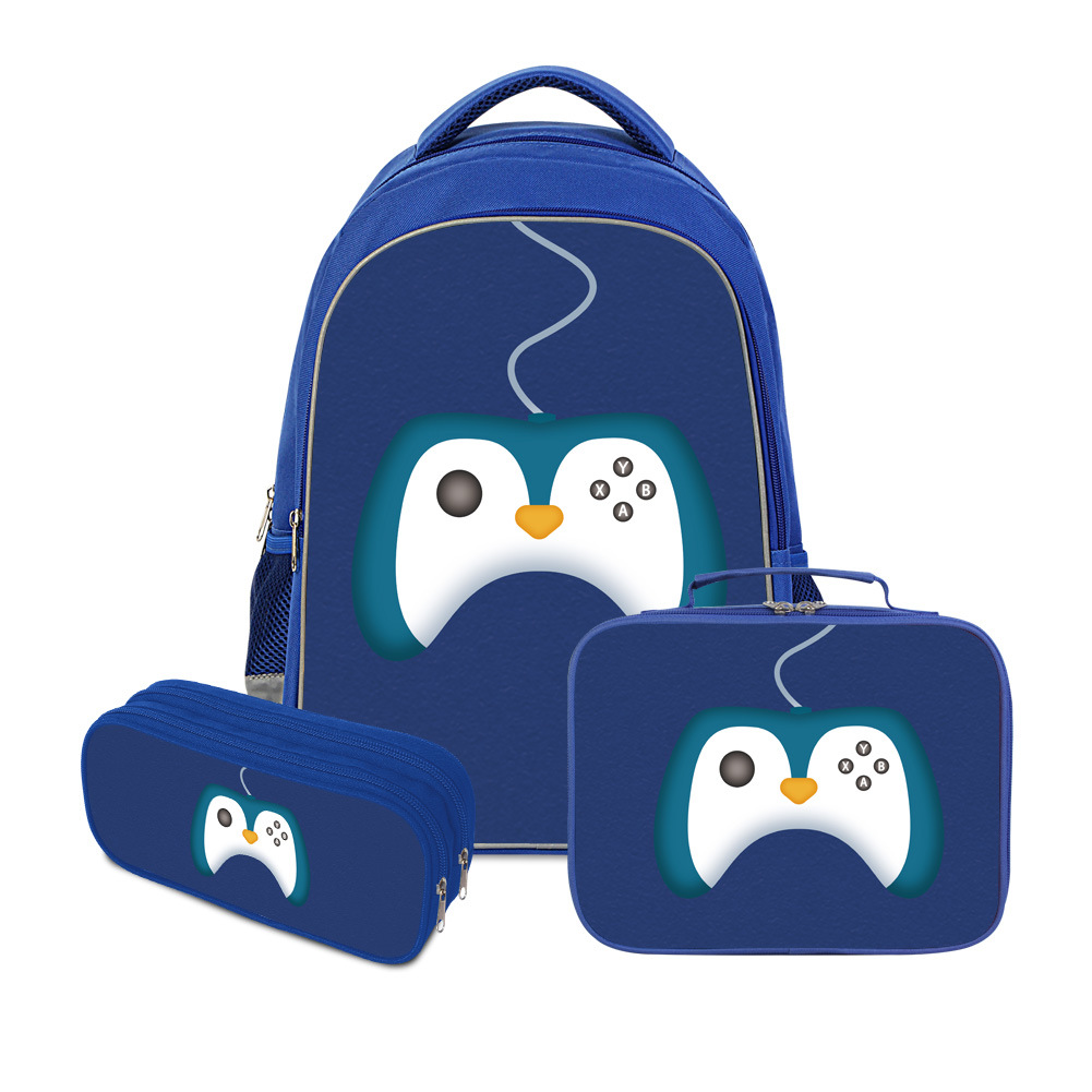 游戏手柄企鹅书包 来图定置卡通17寸双层学生书包午餐包笔袋套装