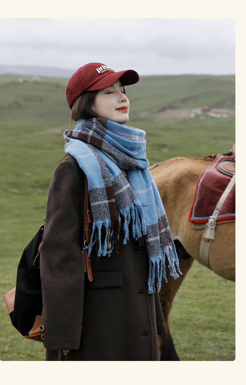 격자 무늬 간단한 모조 캐시미어 스카프 여성의 새로운 가을과 겨울 한국 스타일 모든 매치 스카프 유행 착용 두꺼운 따뜻한 숄스토어 가기