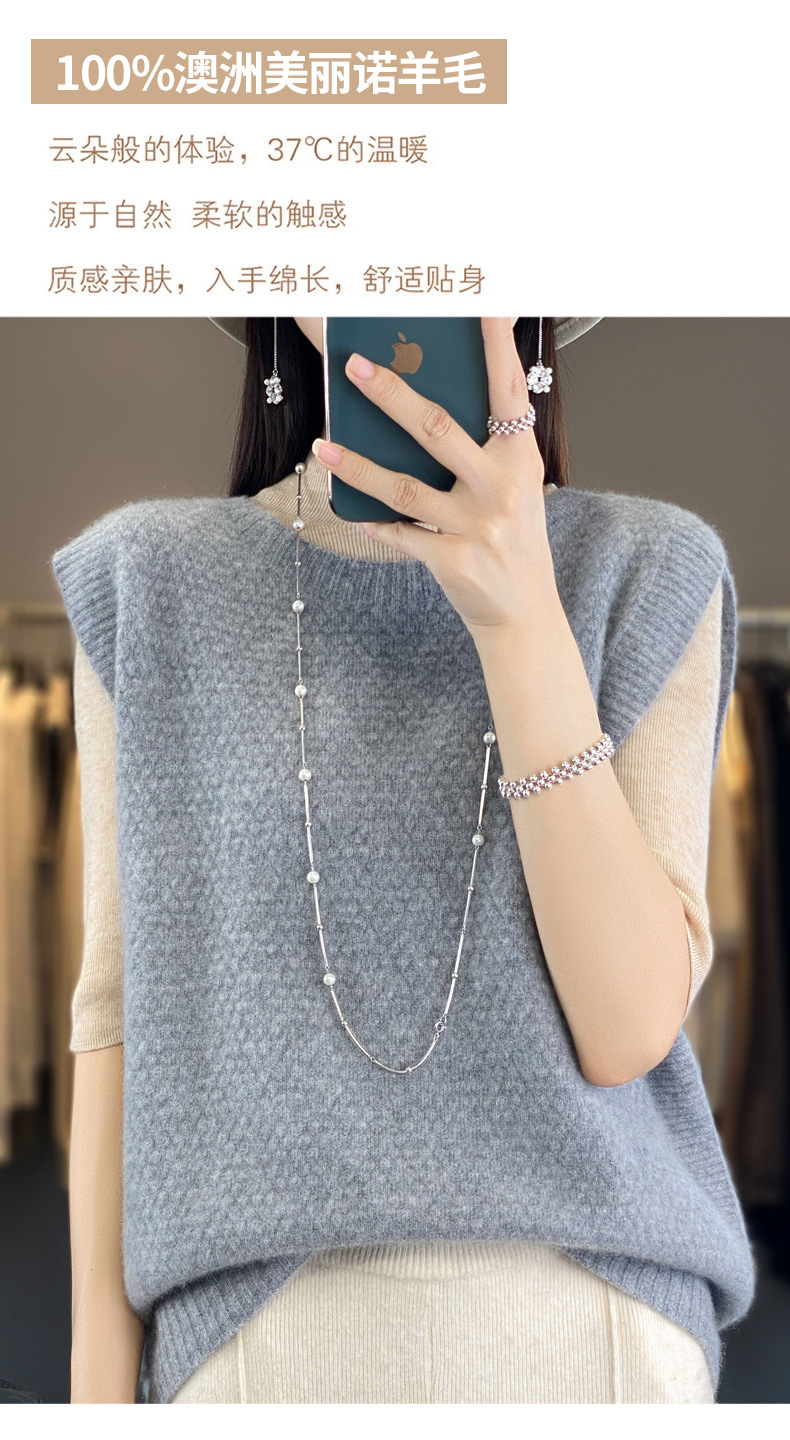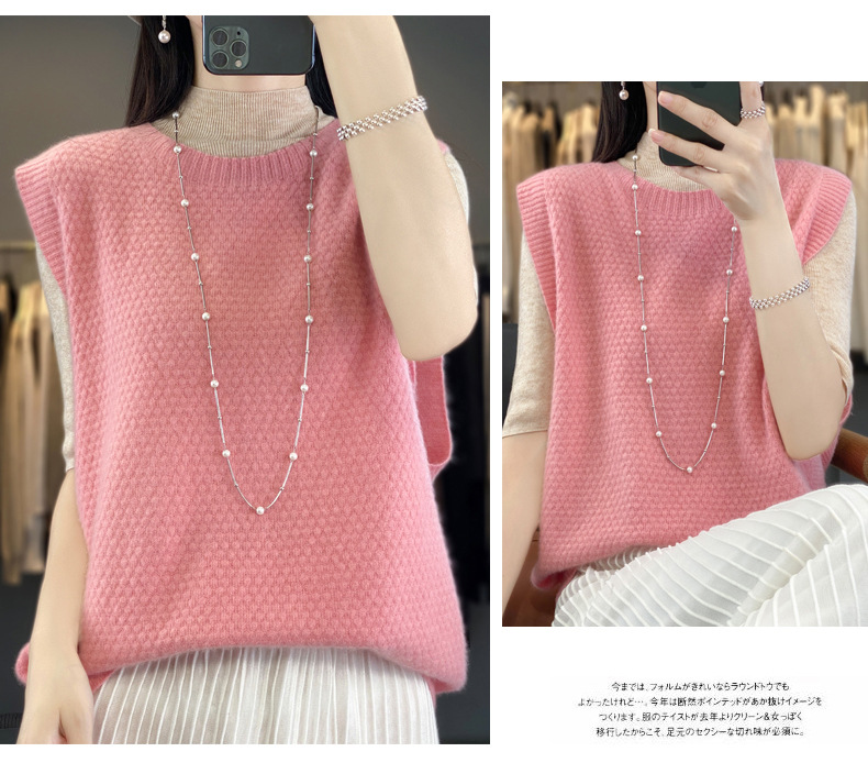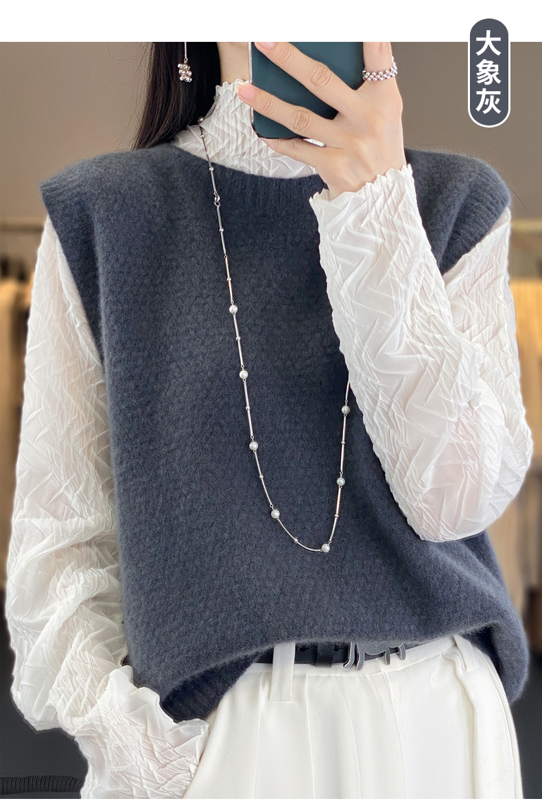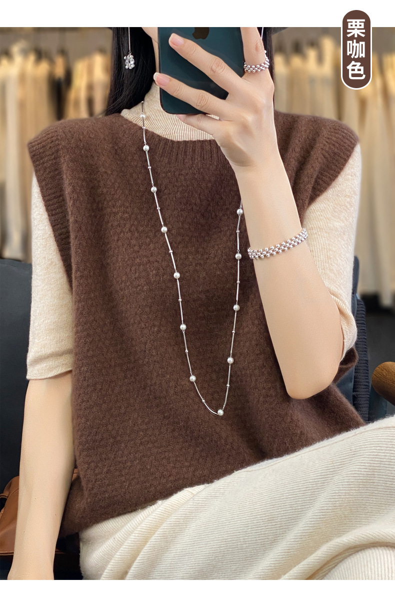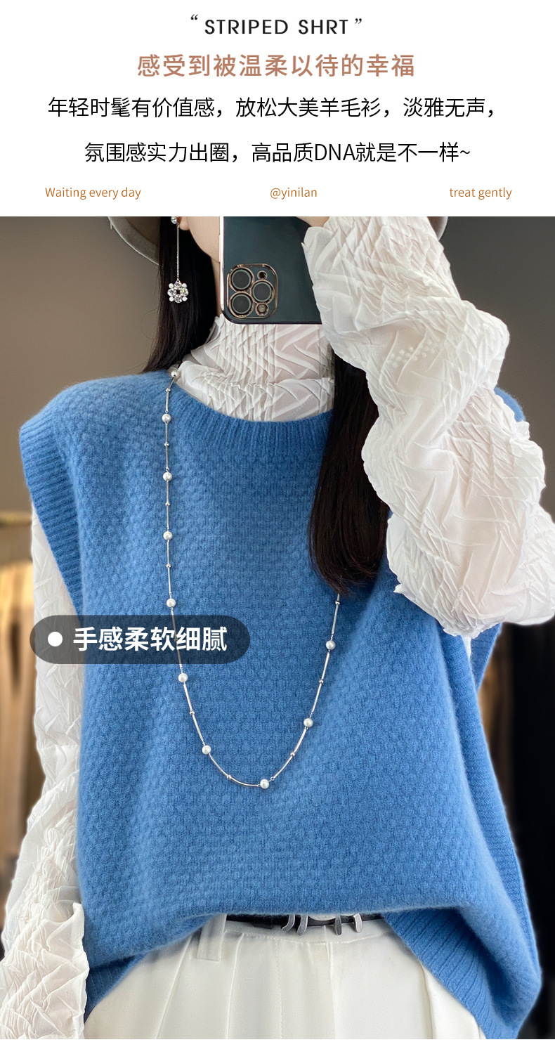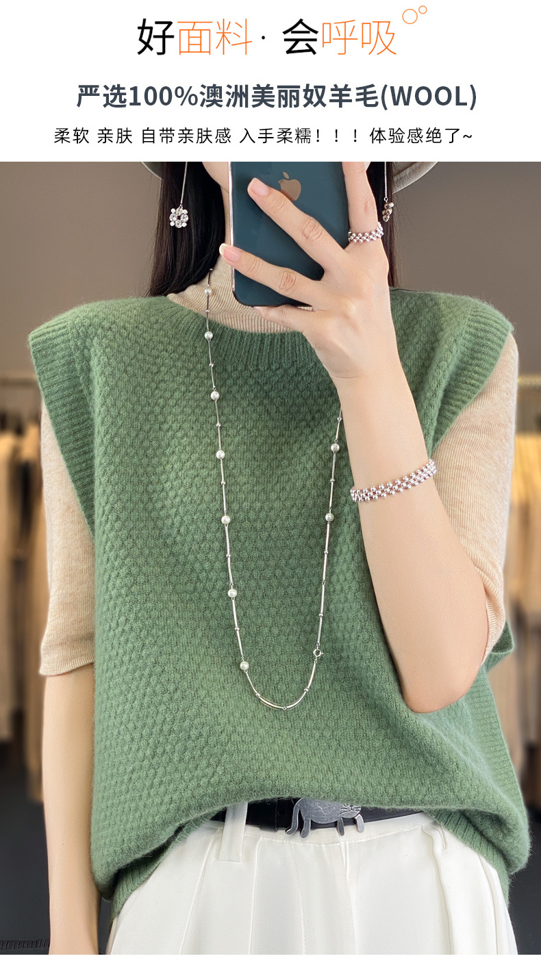 메리노 100 울 조끼 여성용 니트 스택 조끼 캐주얼 라운드 넥 웨이슬 민소매 유행 외부 스웨터스토어 가기