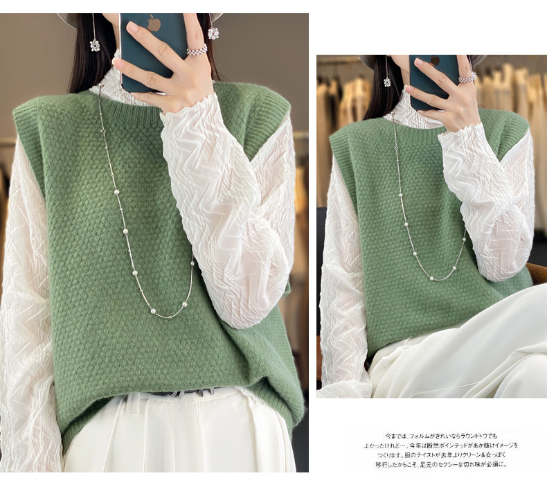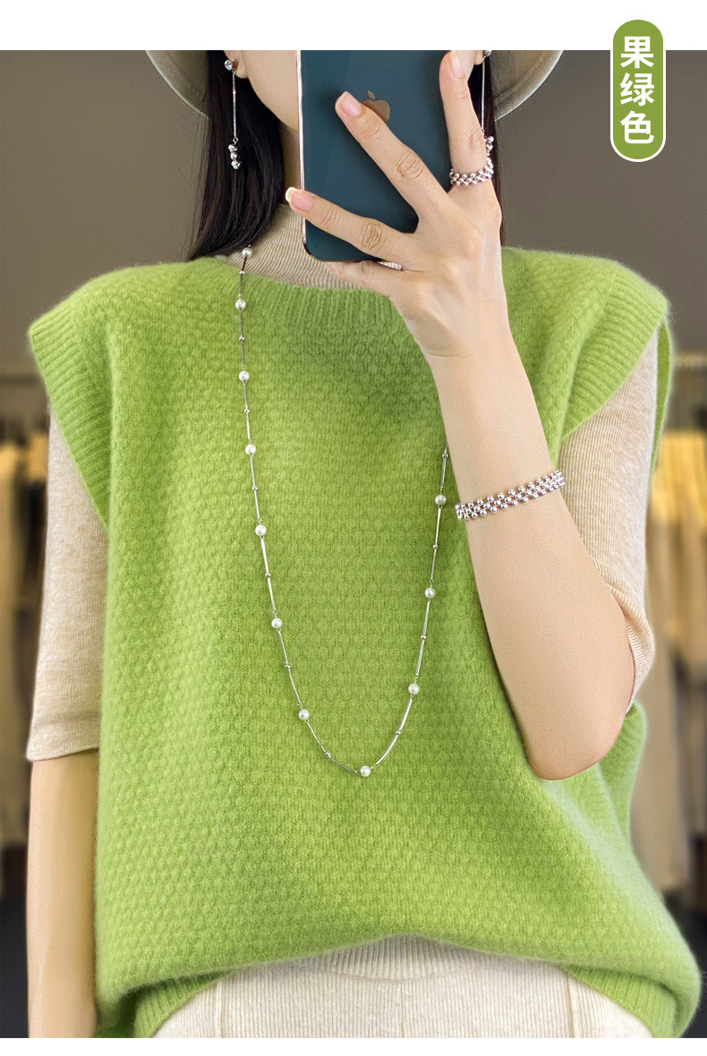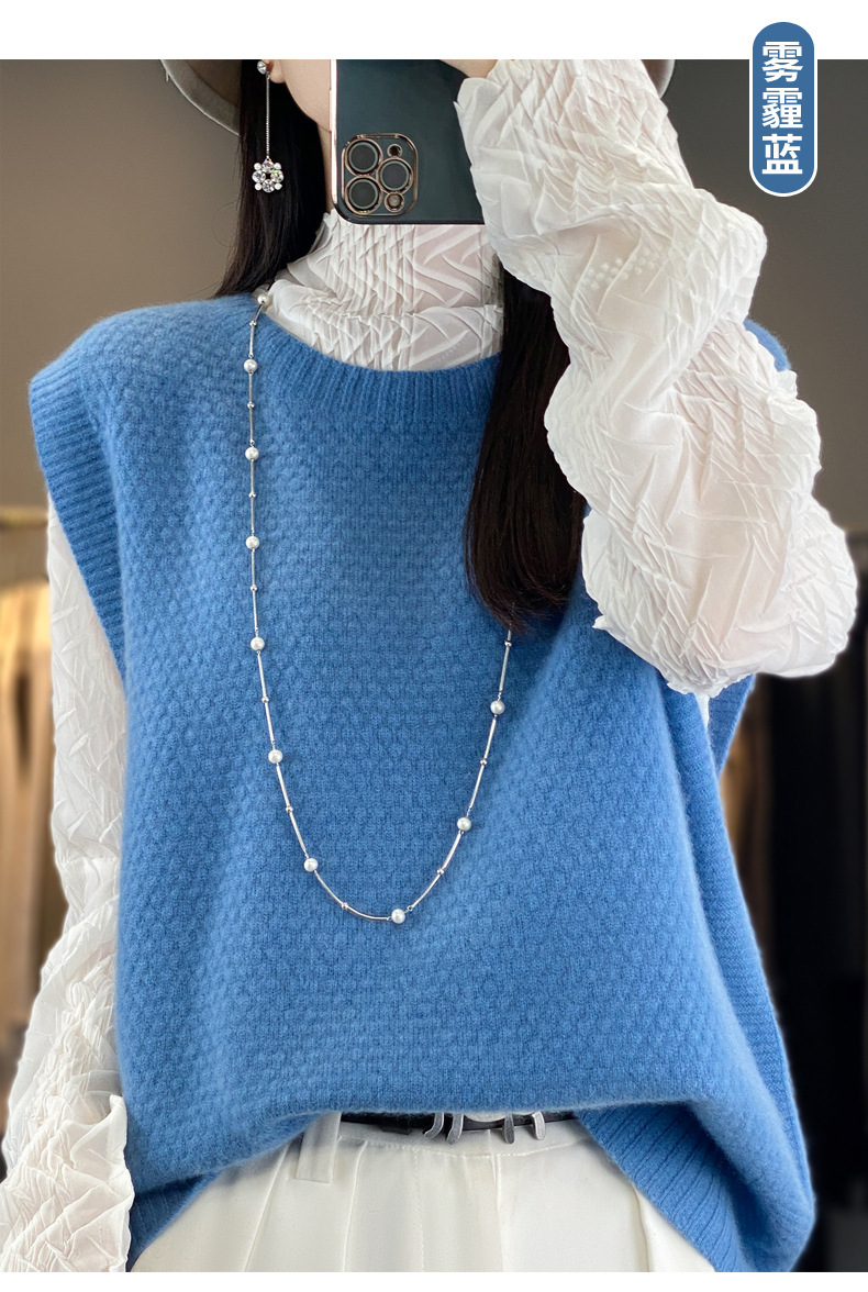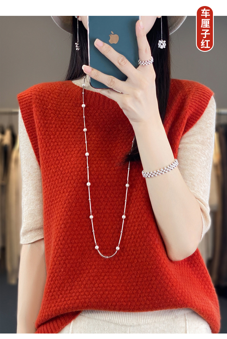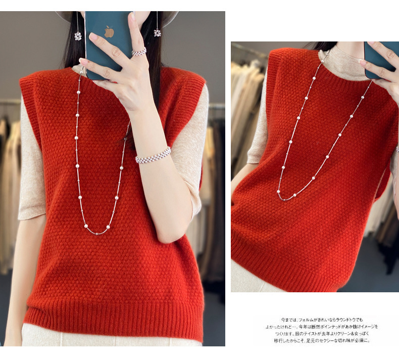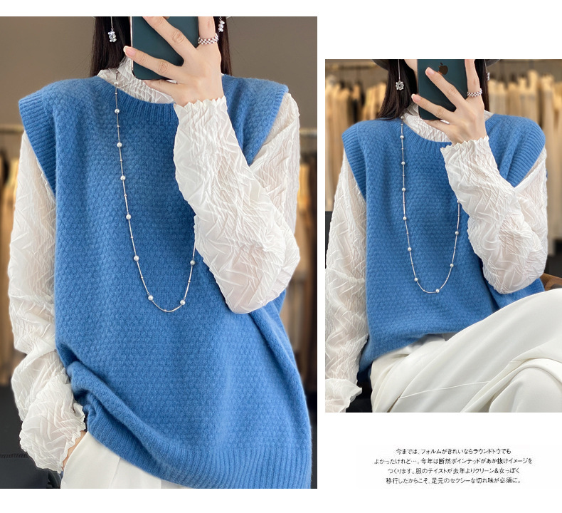 메리노 100 울 조끼 여성용 니트 스택 조끼 캐주얼 라운드 넥 웨이슬 민소매 유행 외부 스웨터스토어 가기