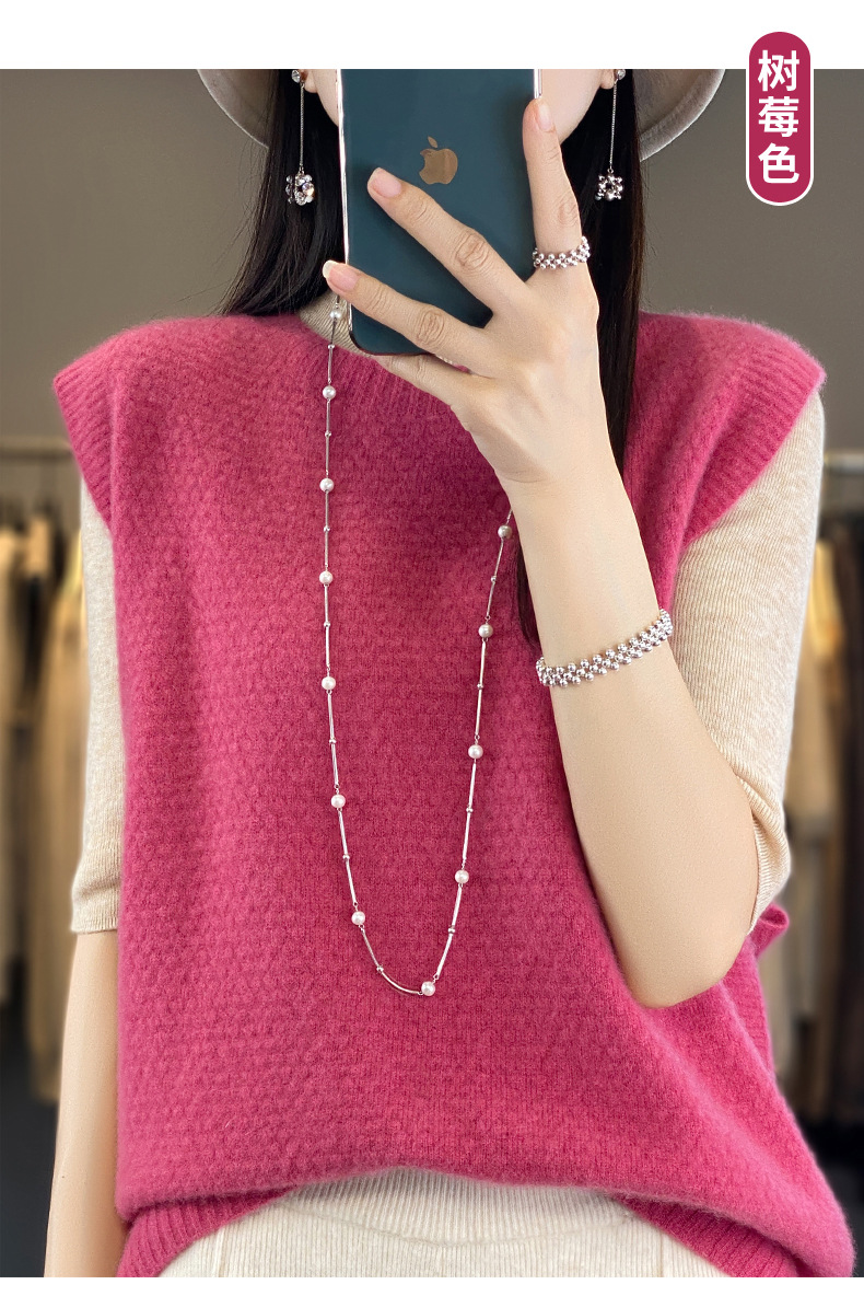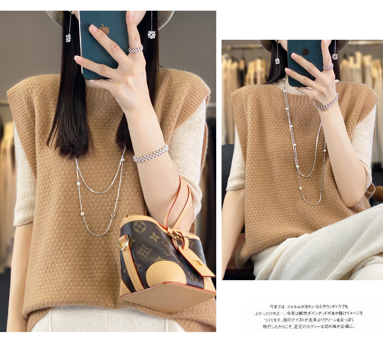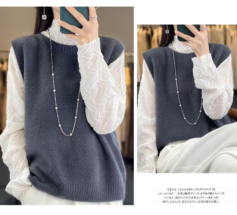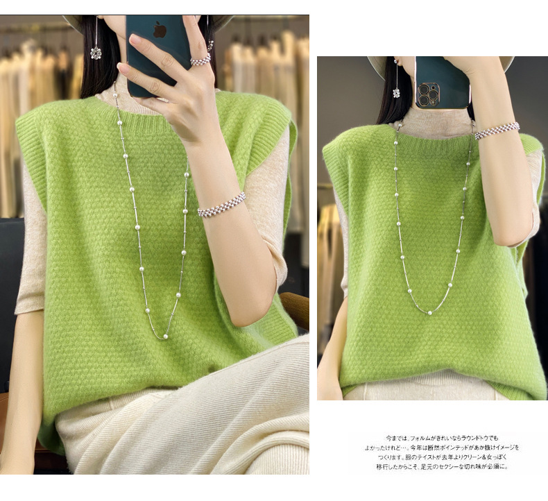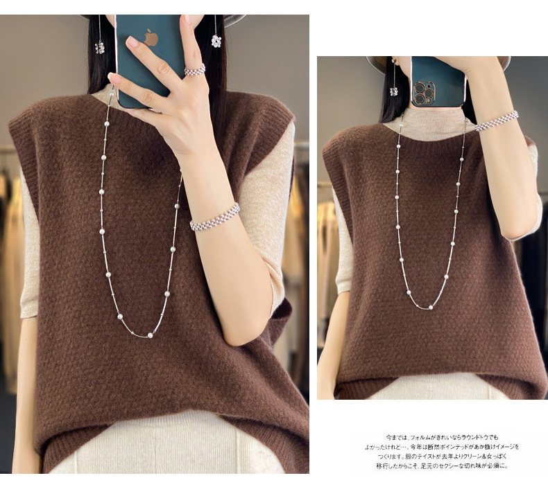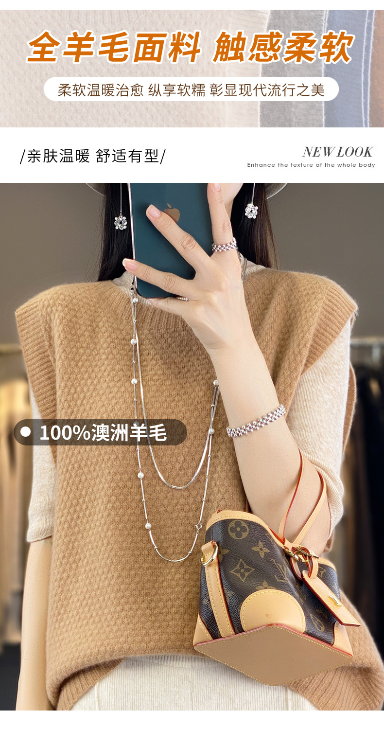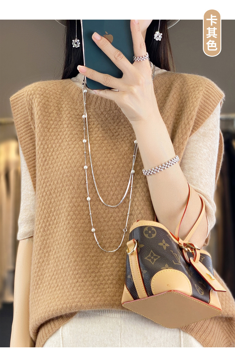 메리노 100 울 조끼 여성용 니트 스택 조끼 캐주얼 라운드 넥 웨이슬 민소매 유행 외부 스웨터스토어 가기