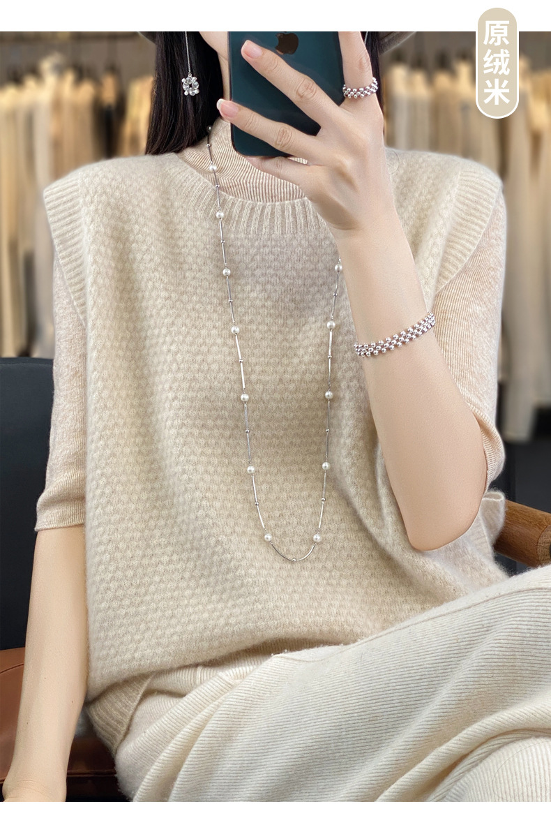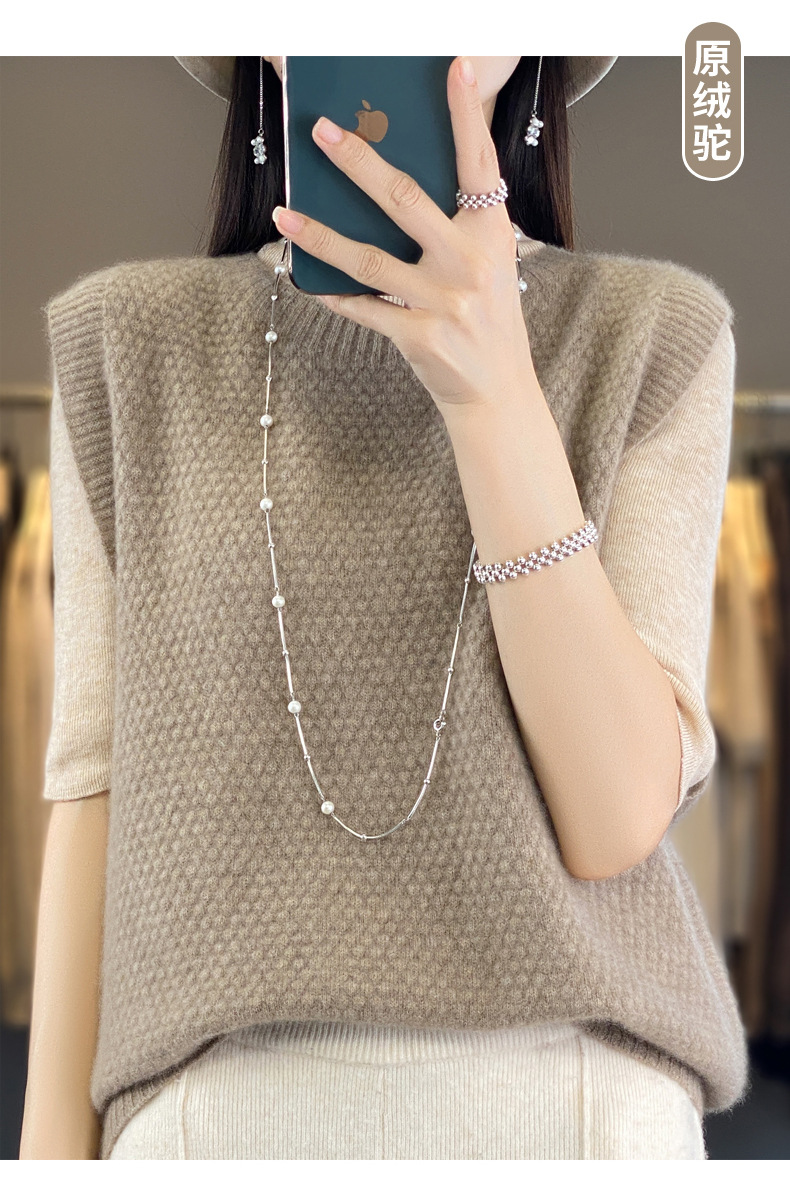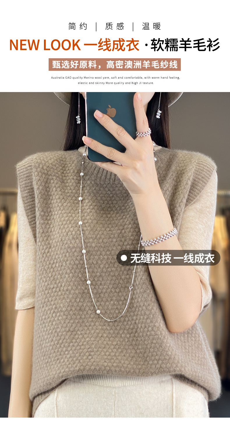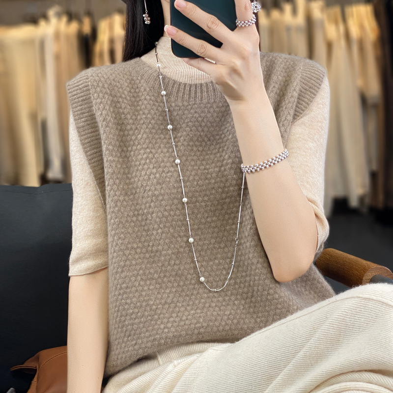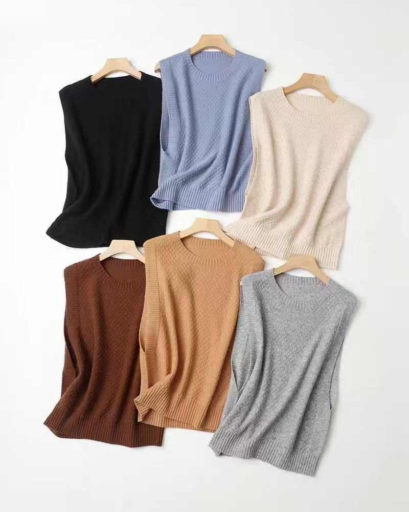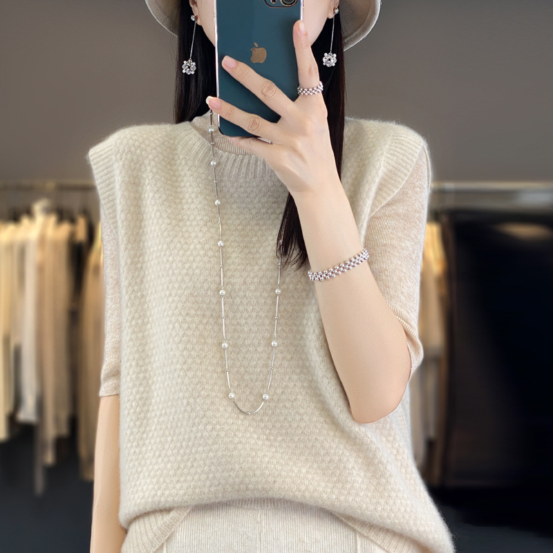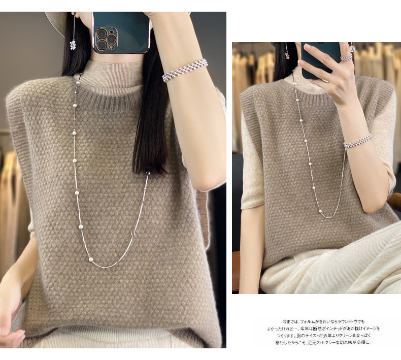 메리노 100 울 조끼 여성용 니트 스택 조끼 캐주얼 라운드 넥 웨이슬 민소매 유행 외부 스웨터스토어 가기