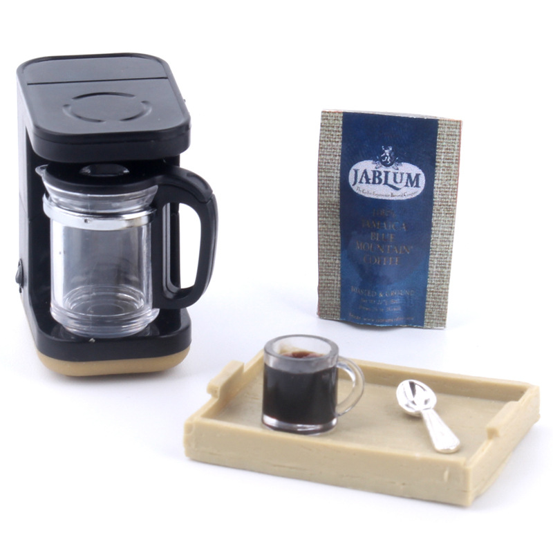 크로스 국경 인형 집 미니어처 음식 놀이 장식품 시뮬레이션 블루 마운틴 커피 세트 커피 머신 장면 모델 사진 소품