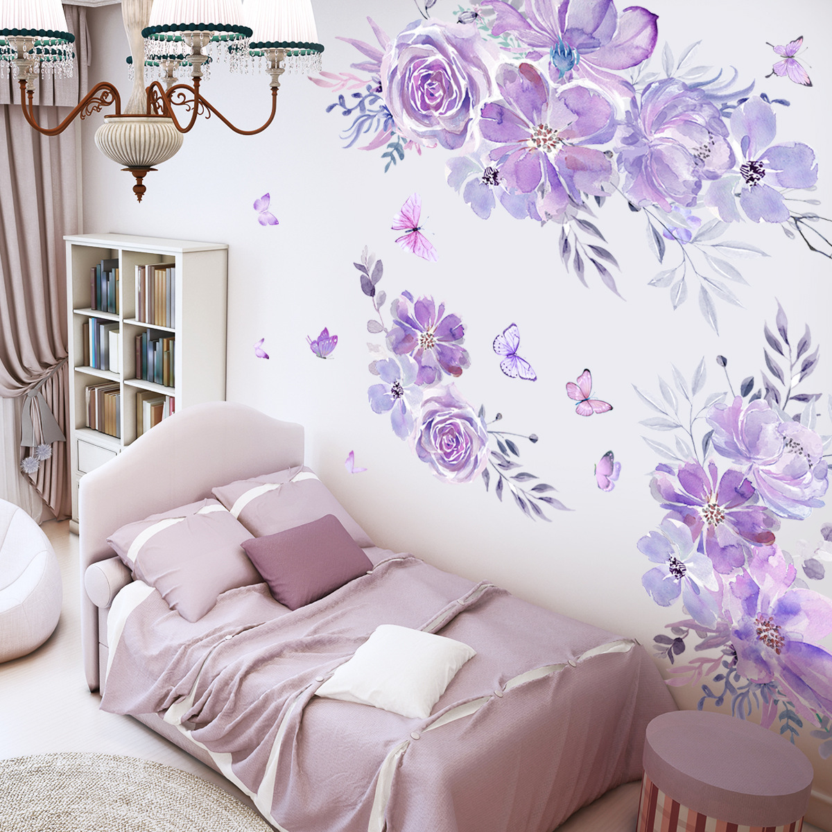 MS6295-ZY 8 개의 초대형 보라색 꽃 배경 벽 스티커 배경 거실 침실 가정 장식