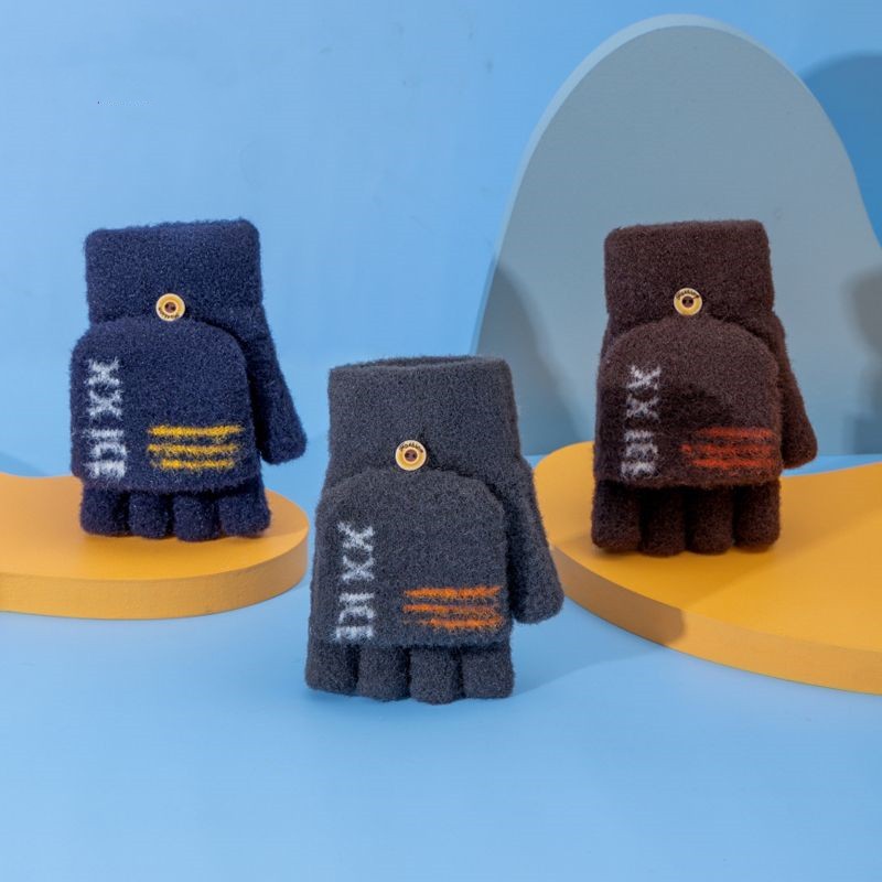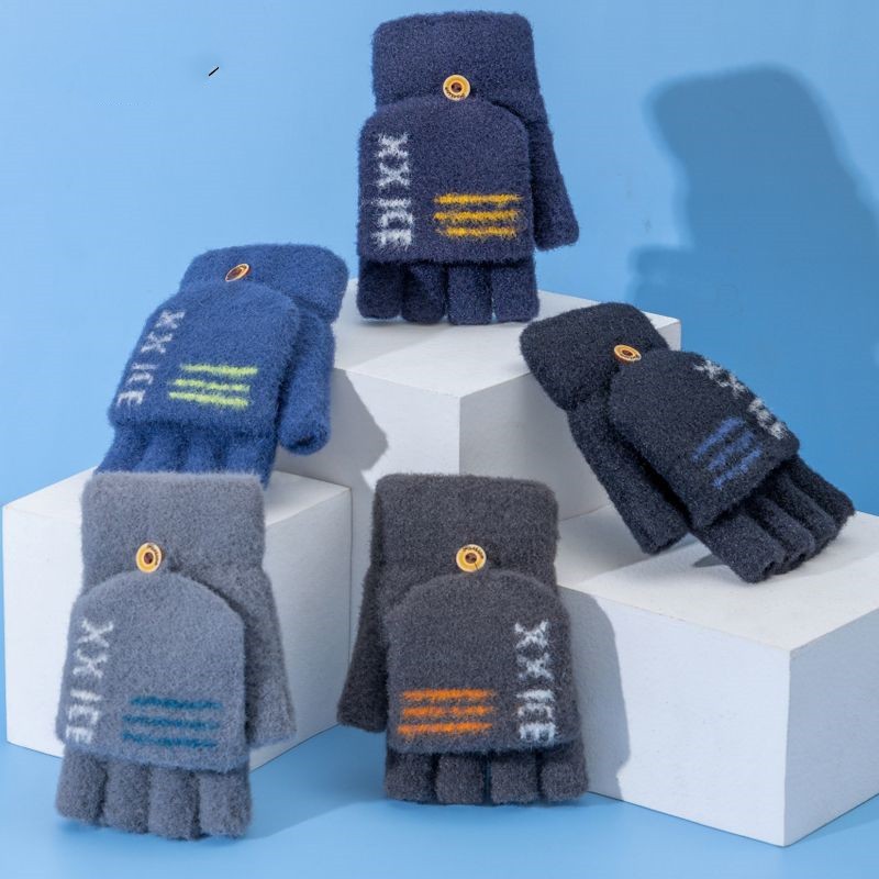 어린이 장갑 겨울 따뜻한 소년과 어린이 쓰기 다섯 손가락 플립 초등학교 학생 반 손가락 큰 어린이 숙제 도매