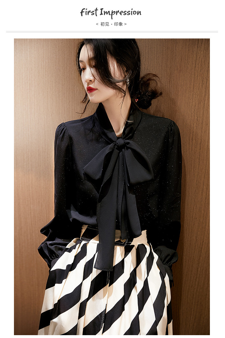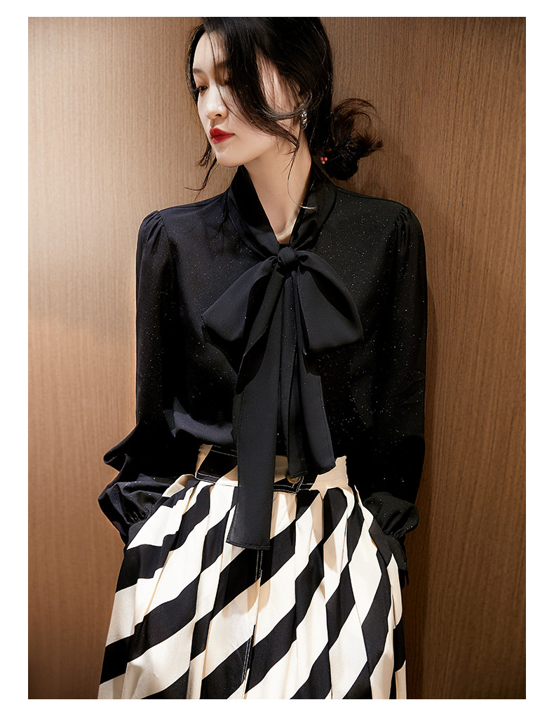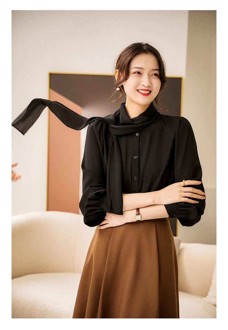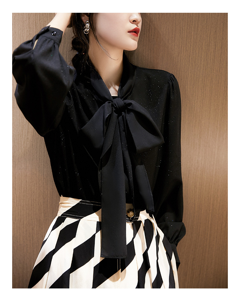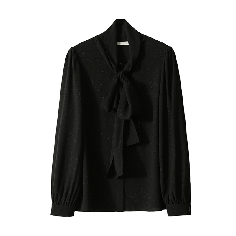프렌치 스타일 리본 장식 쉬폰 긴팔 셔츠 여성용 2025 초봄 이너웨어 오피스룩 OL 다용도 셔츠스토어 가기