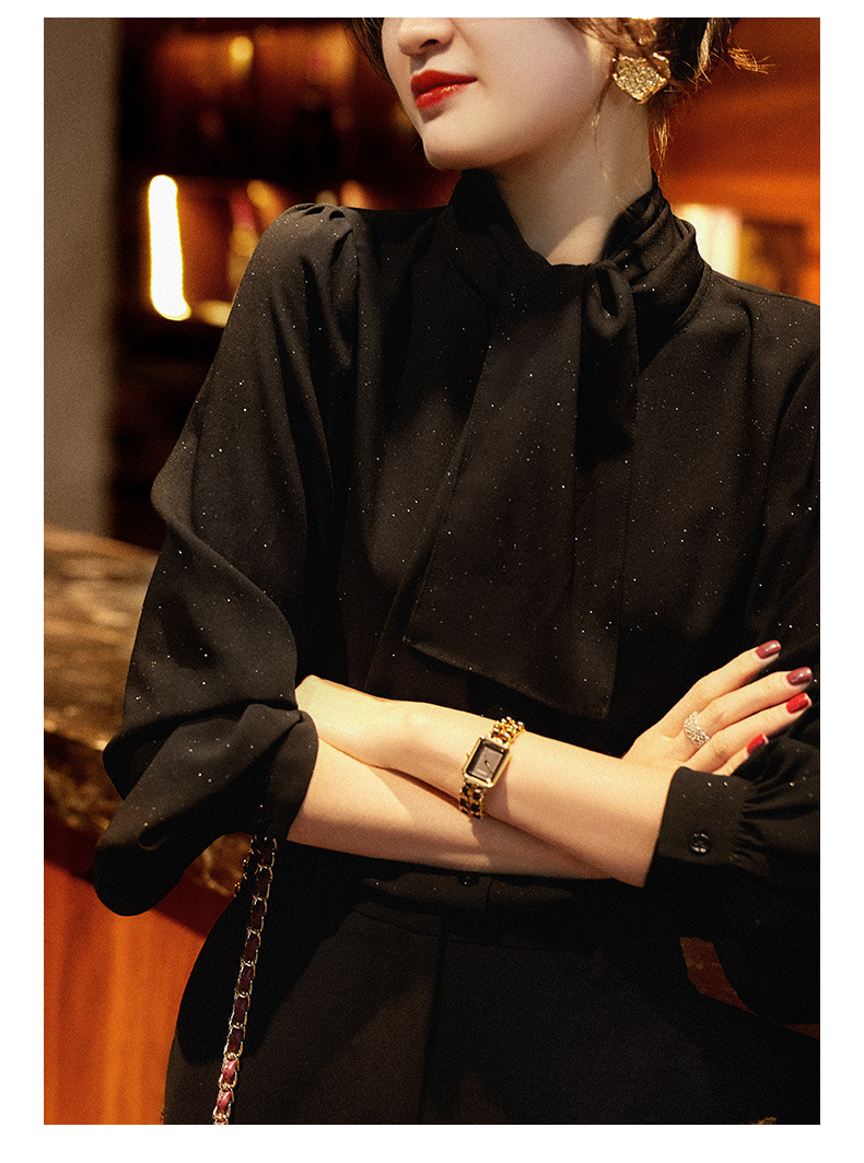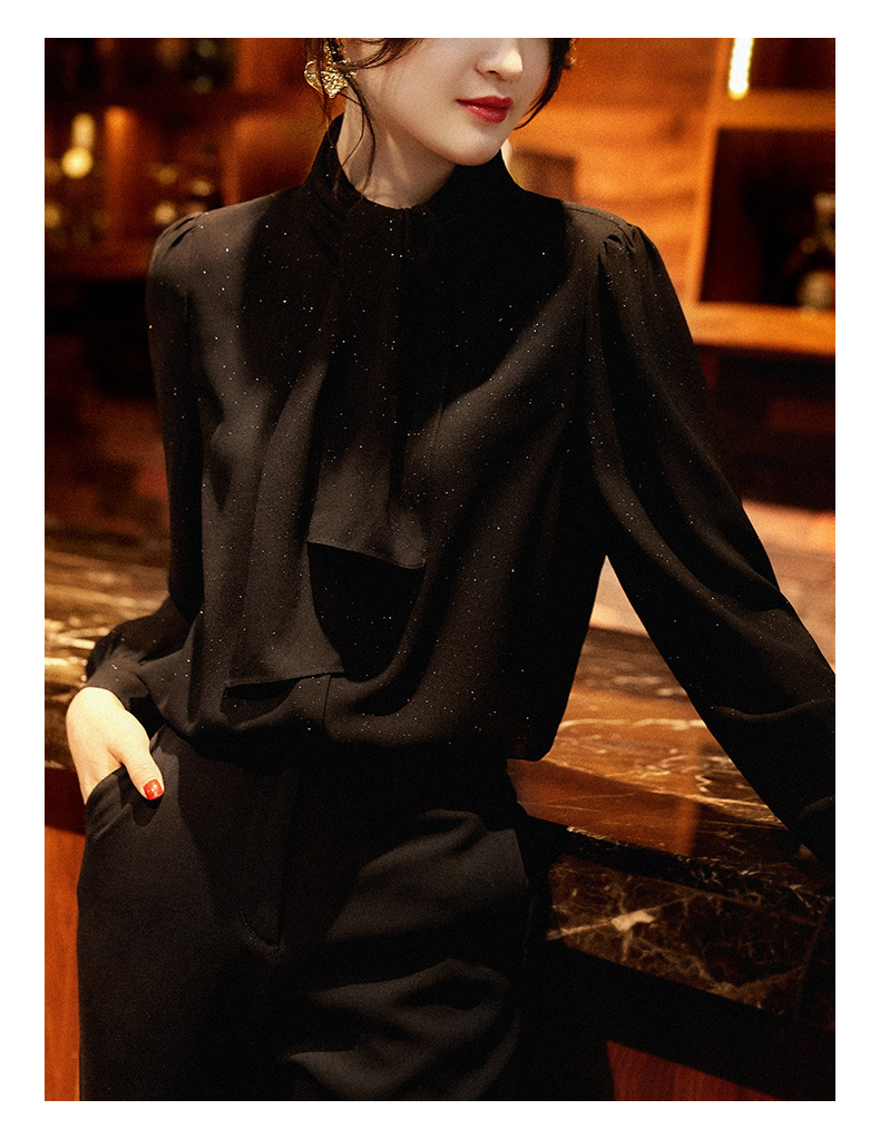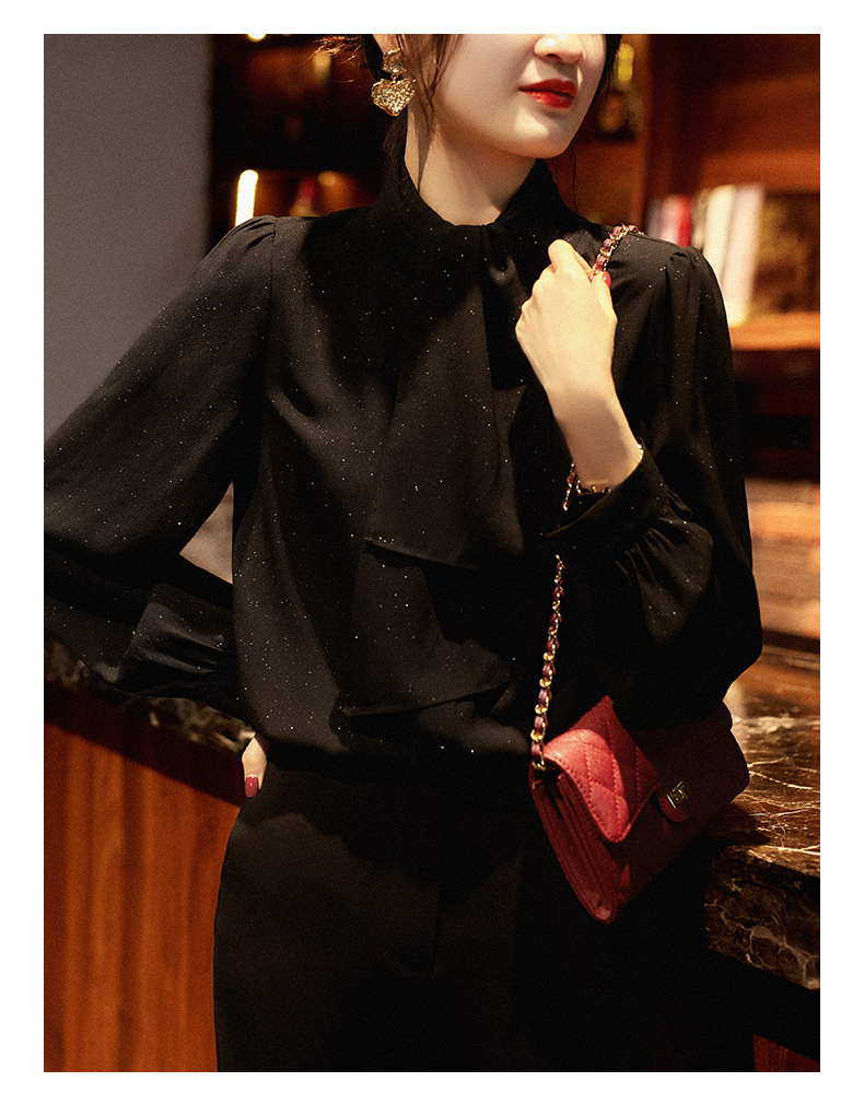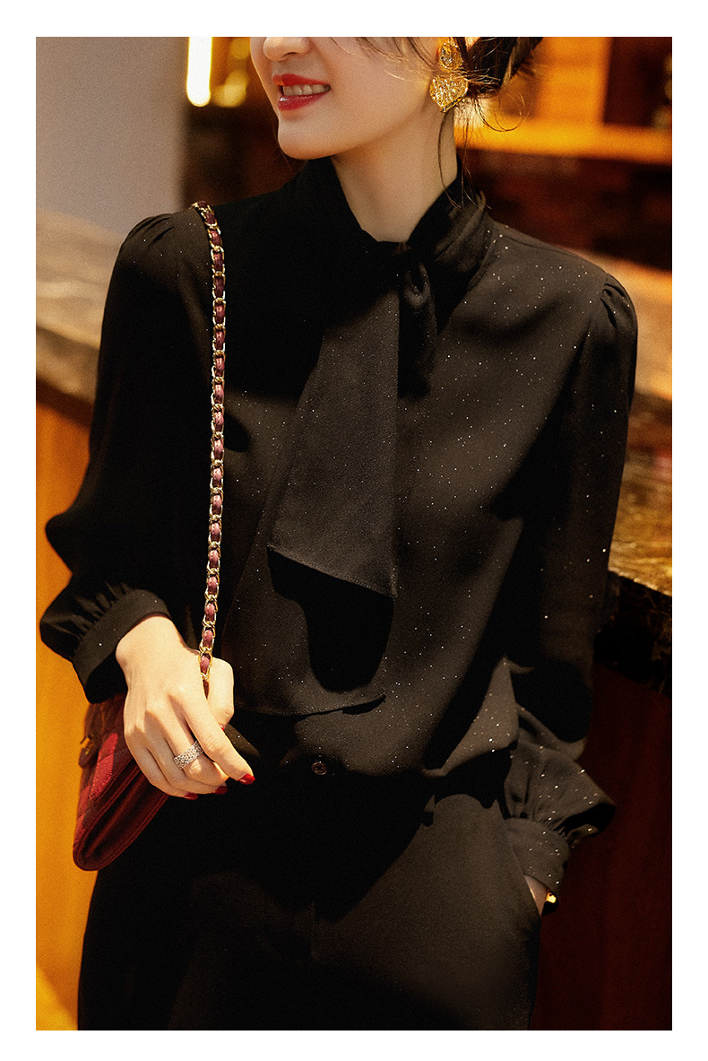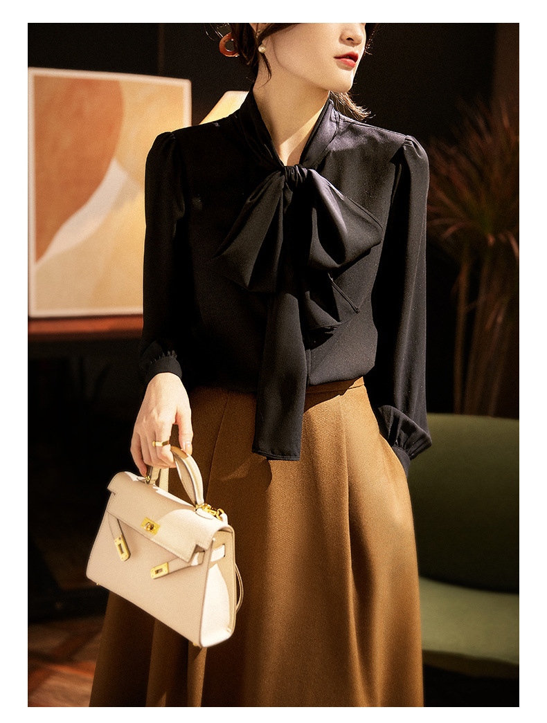 프렌치 스타일 리본 장식 쉬폰 긴팔 셔츠 여성용 2025 초봄 이너웨어 오피스룩 OL 다용도 셔츠