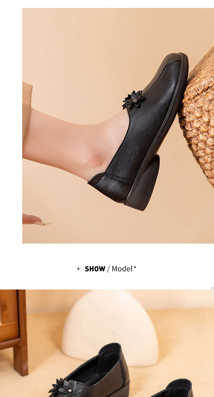 노인 신발 편안한 부드러운 단일 레이어 신발 여성용 정품 가죽 레트로 에스닉 스타일 가죽 신발 중년 및 노인 어머니 신발 부드러운 단독 미끄럼 방지
