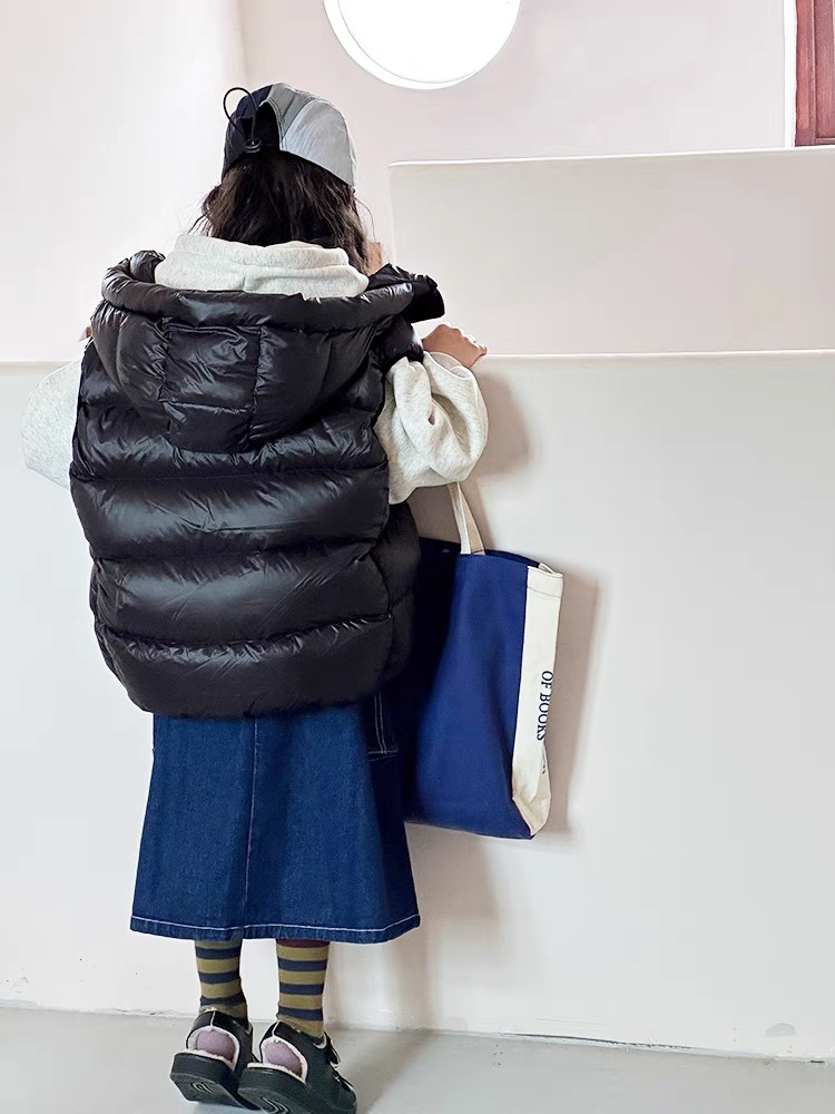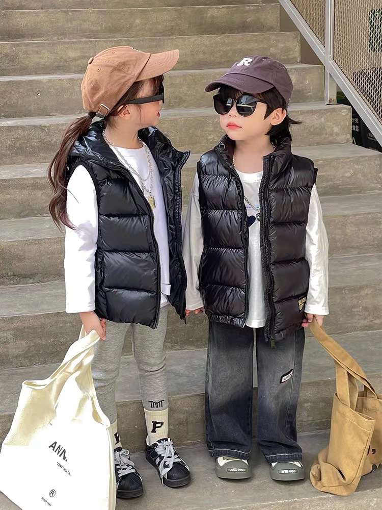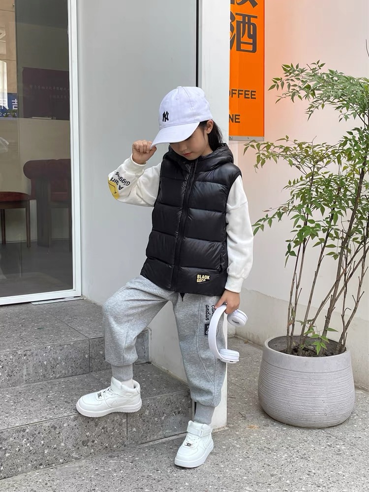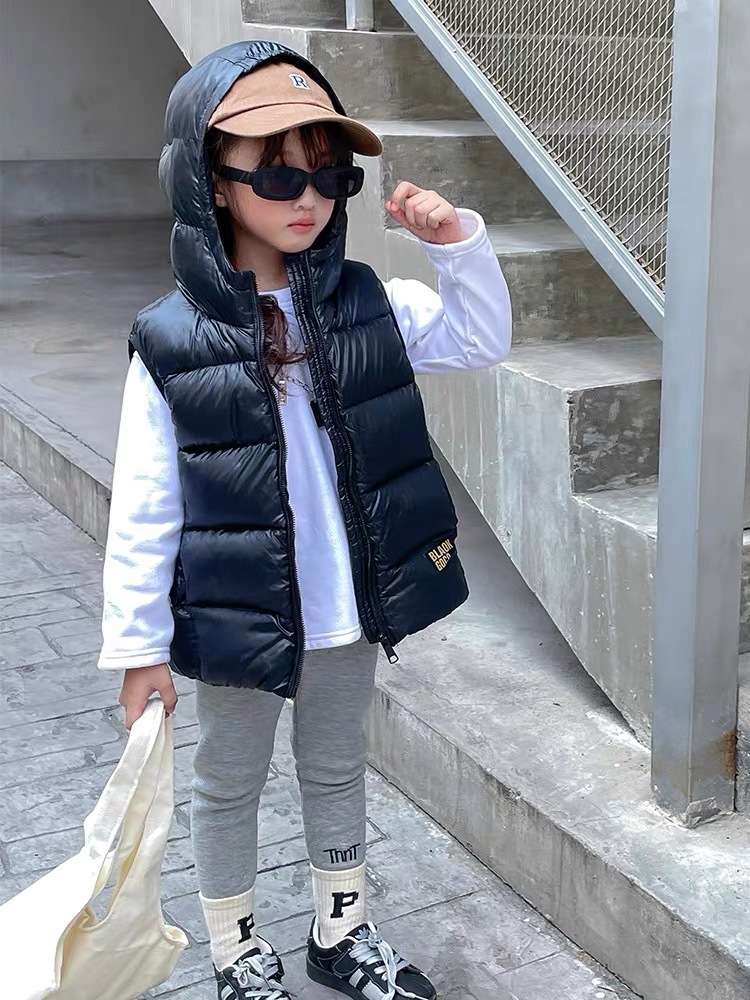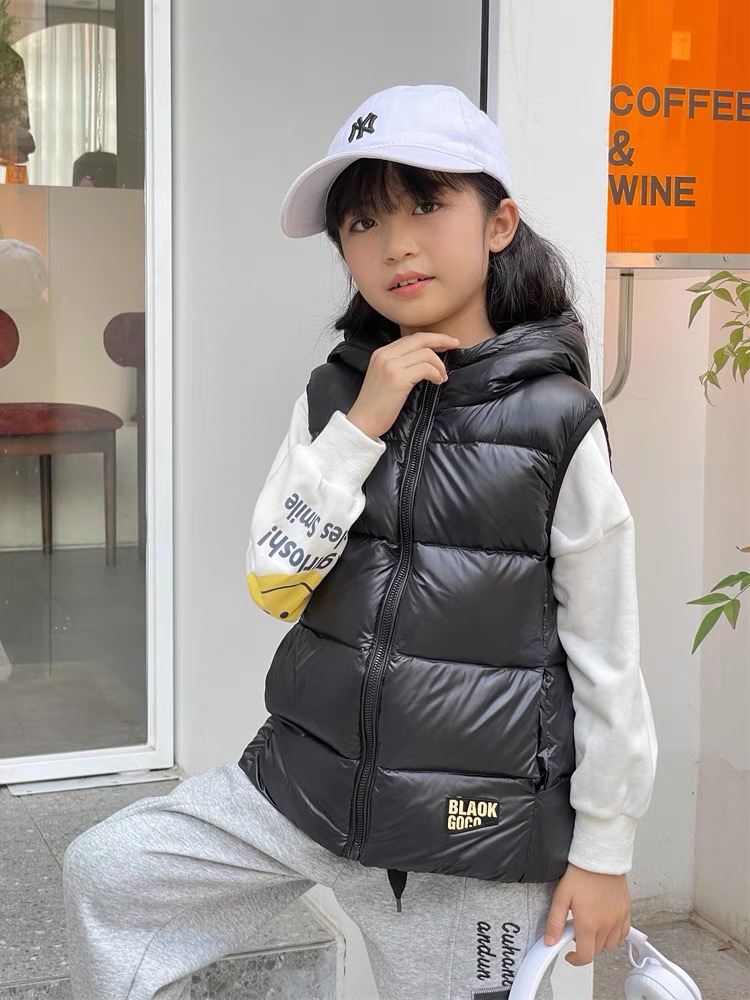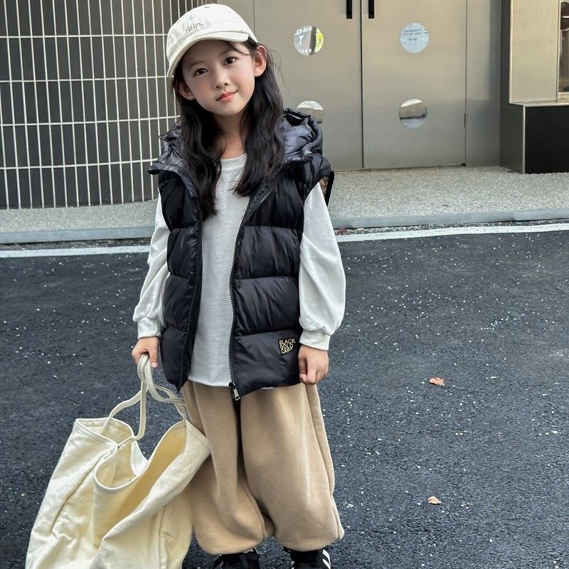블랙 골드 어린이 다운 면 조끼 가을과 겨울 새로운 소년 소녀 후드 조끼 부모-어린이 착용 두꺼운 따뜻한 조끼