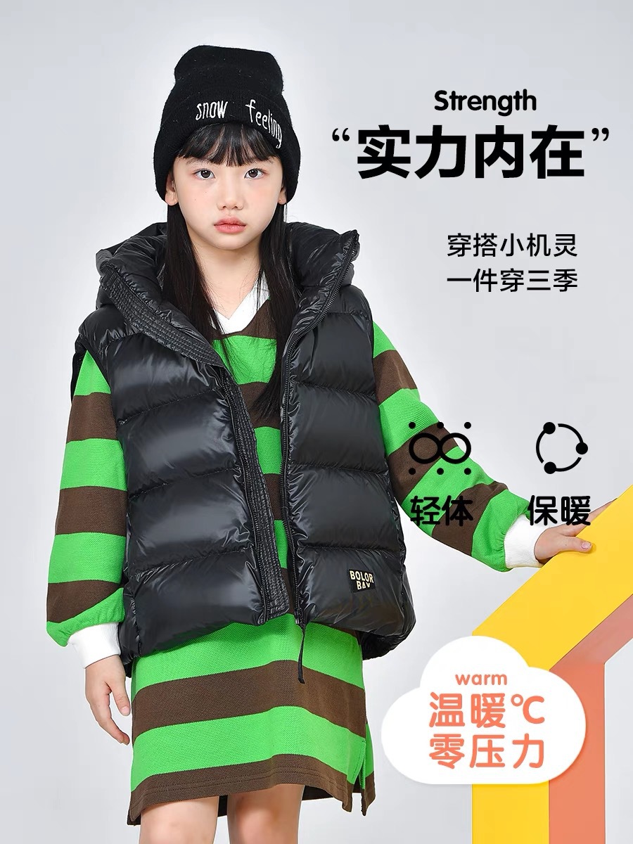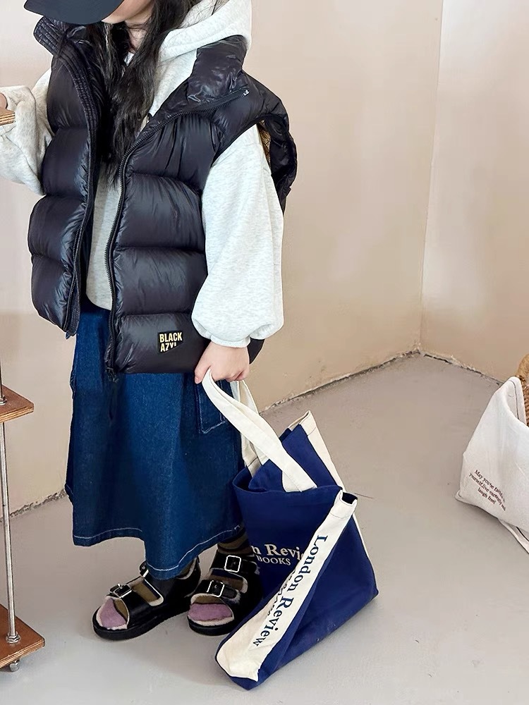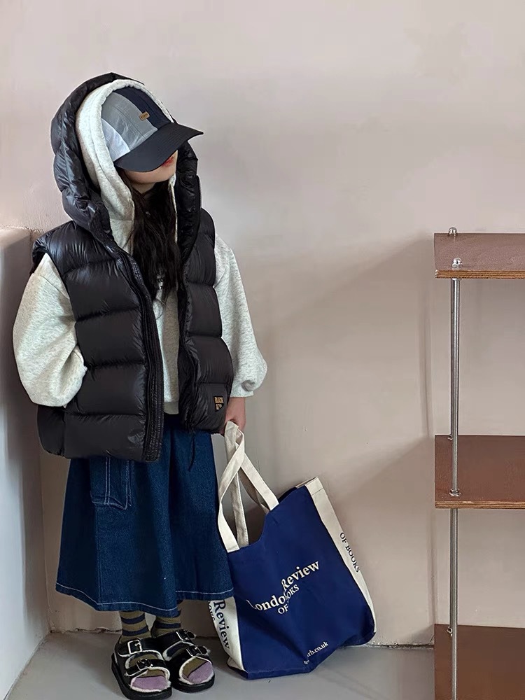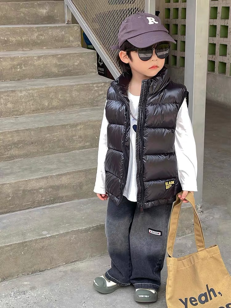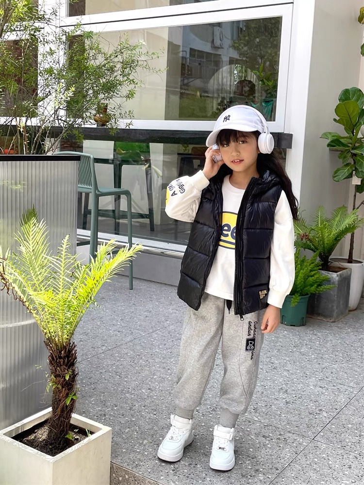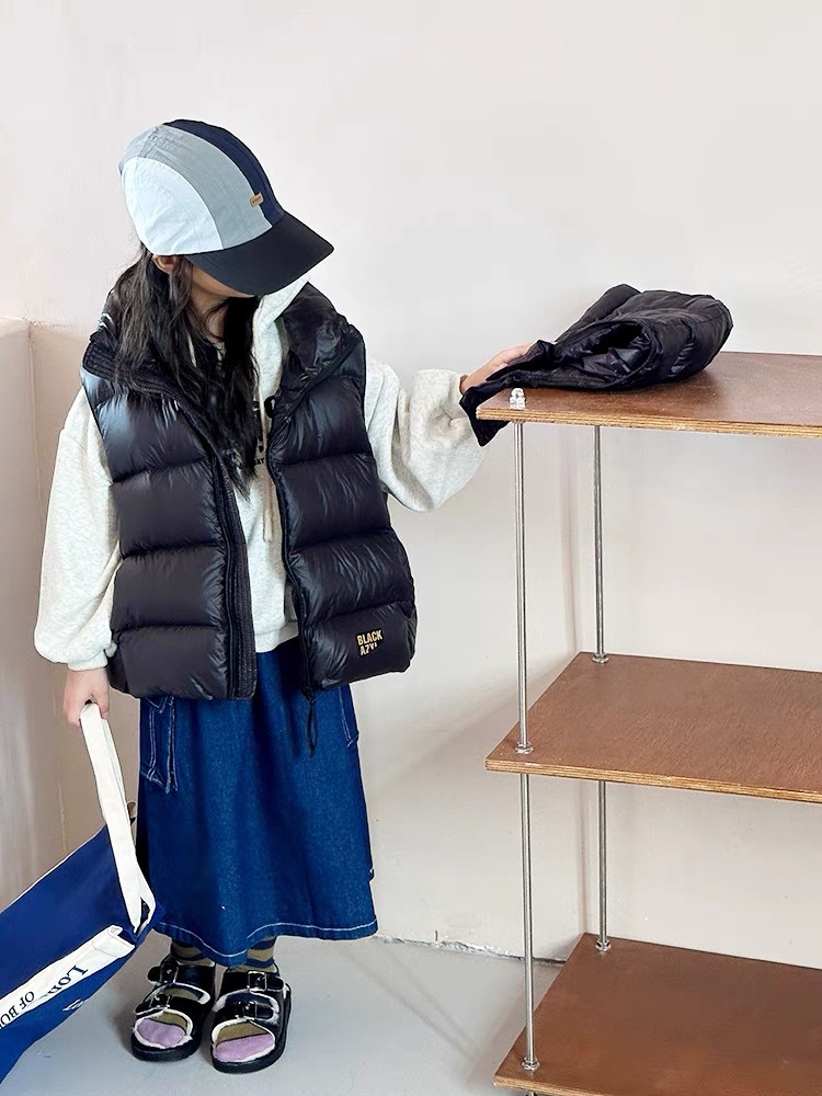 블랙 골드 어린이 다운 면 조끼 가을과 겨울 새로운 소년 소녀 후드 조끼 부모-어린이 착용 두꺼운 따뜻한 조끼