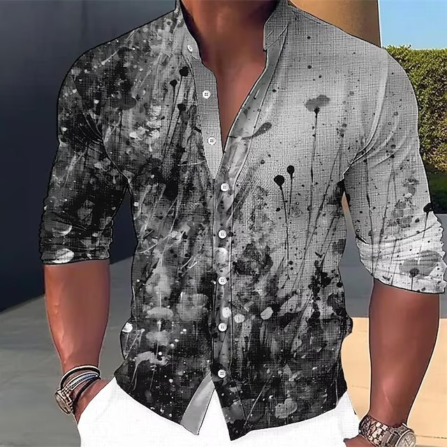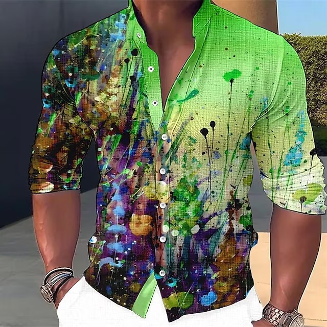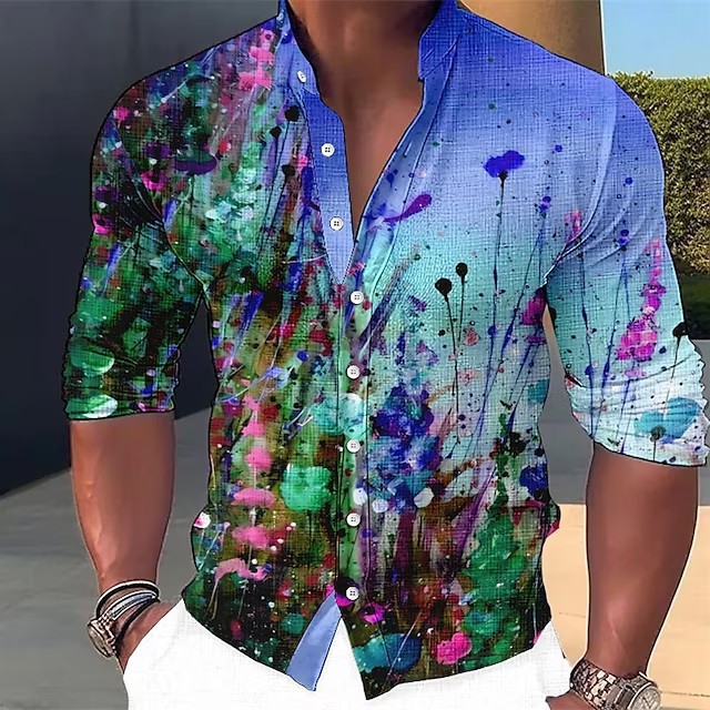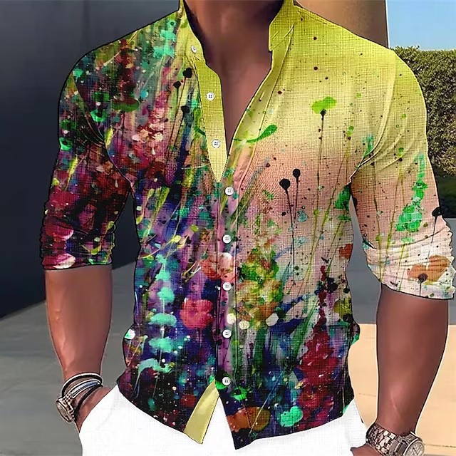 뜨거운 유럽과 미국 가을 남자의 새로운 셔츠 다채로운 3D 디지털 인쇄 유행 긴 소매 칼라 셔츠