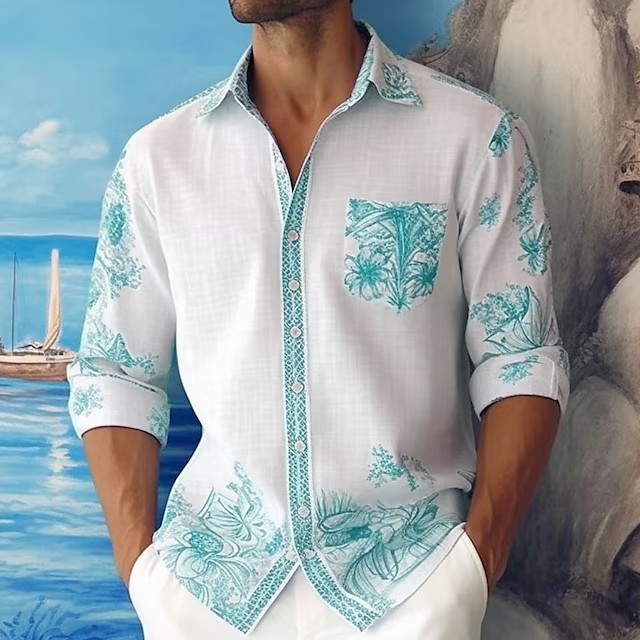 뜨거운 유럽과 미국 가을 남자의 새로운 셔츠 다채로운 3D 디지털 인쇄 유행 긴 소매 칼라 셔츠스토어 가기
