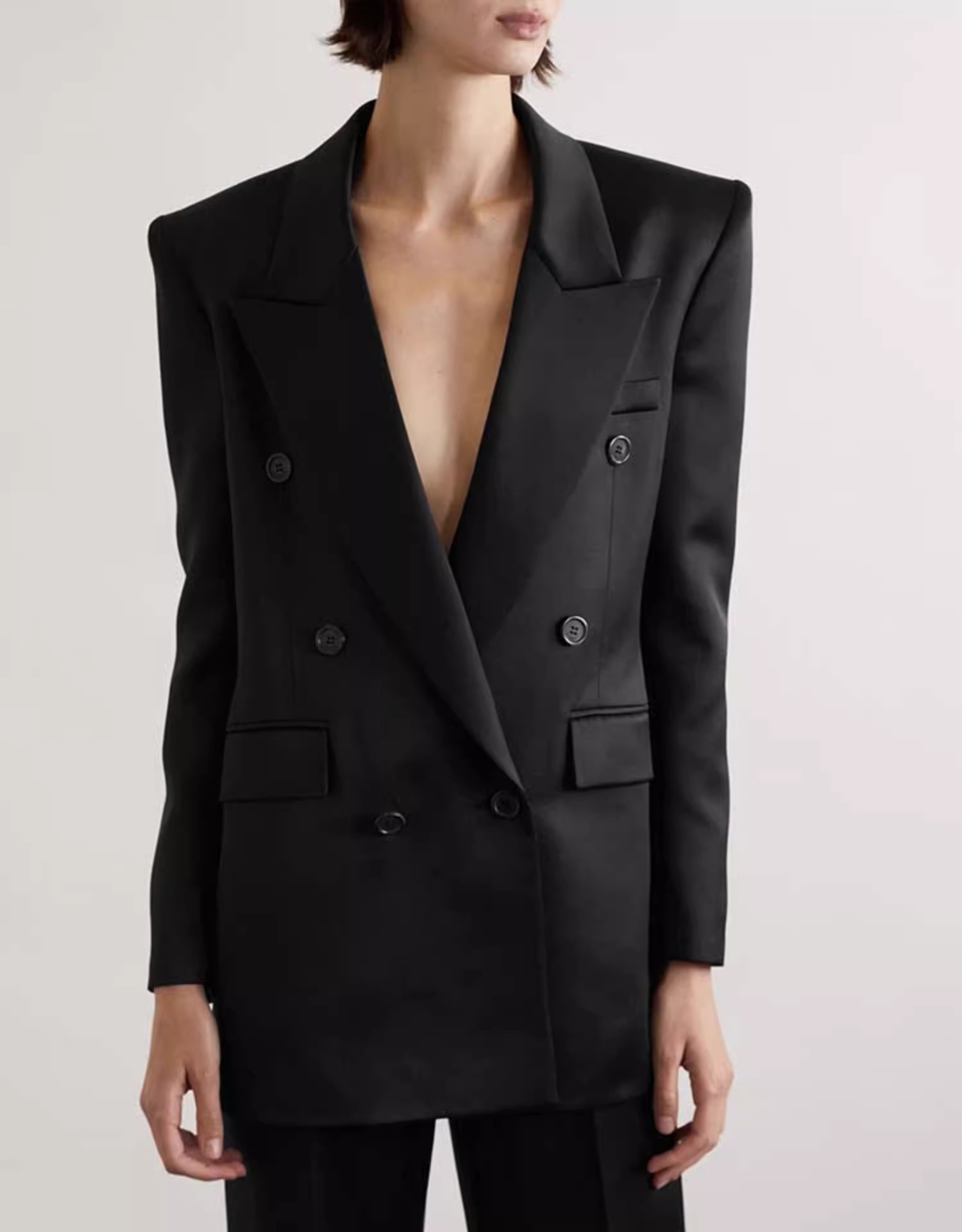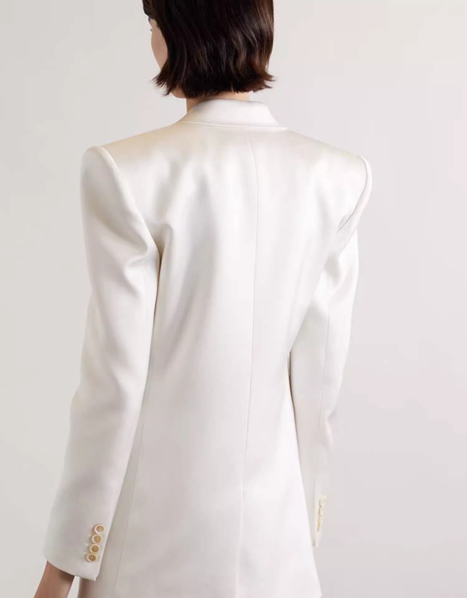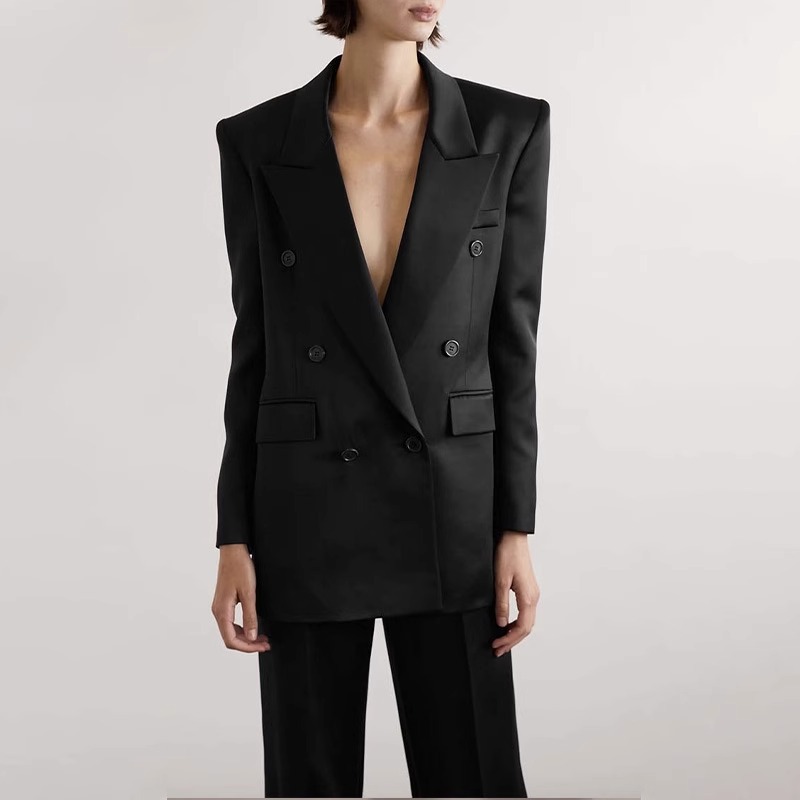 th~row 미니멀리스트 더블 브레스트 디자인 실크 새틴 어깨 패드 긴팔 정장 여성 2025 봄, 가을 새 코트 여성 의류
