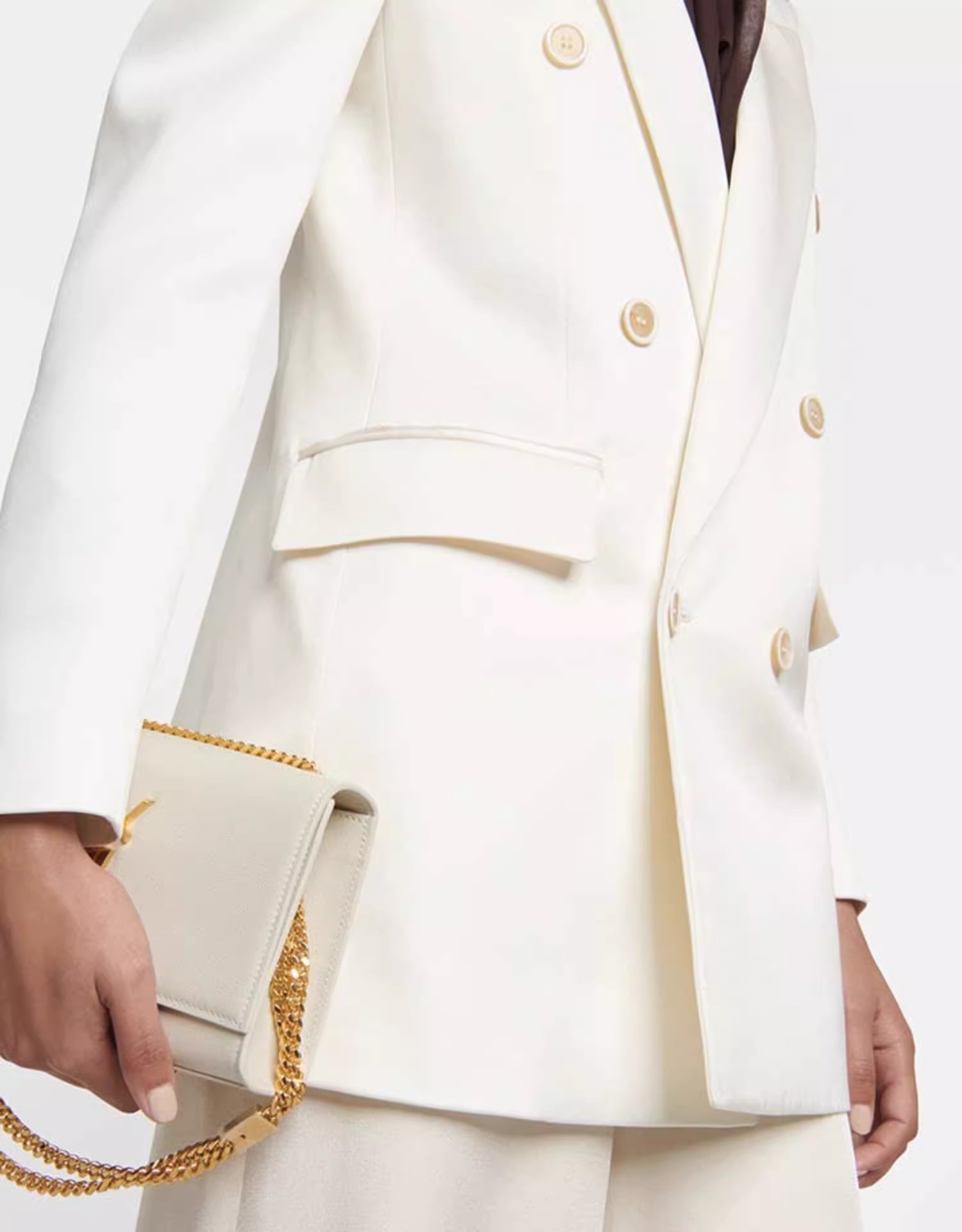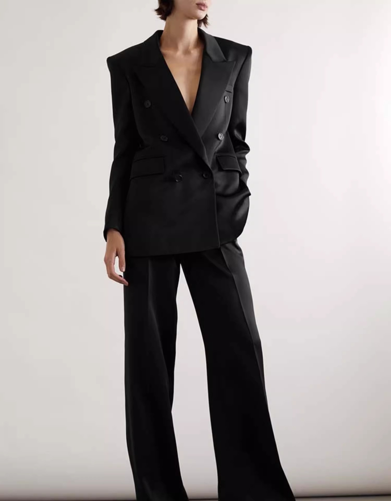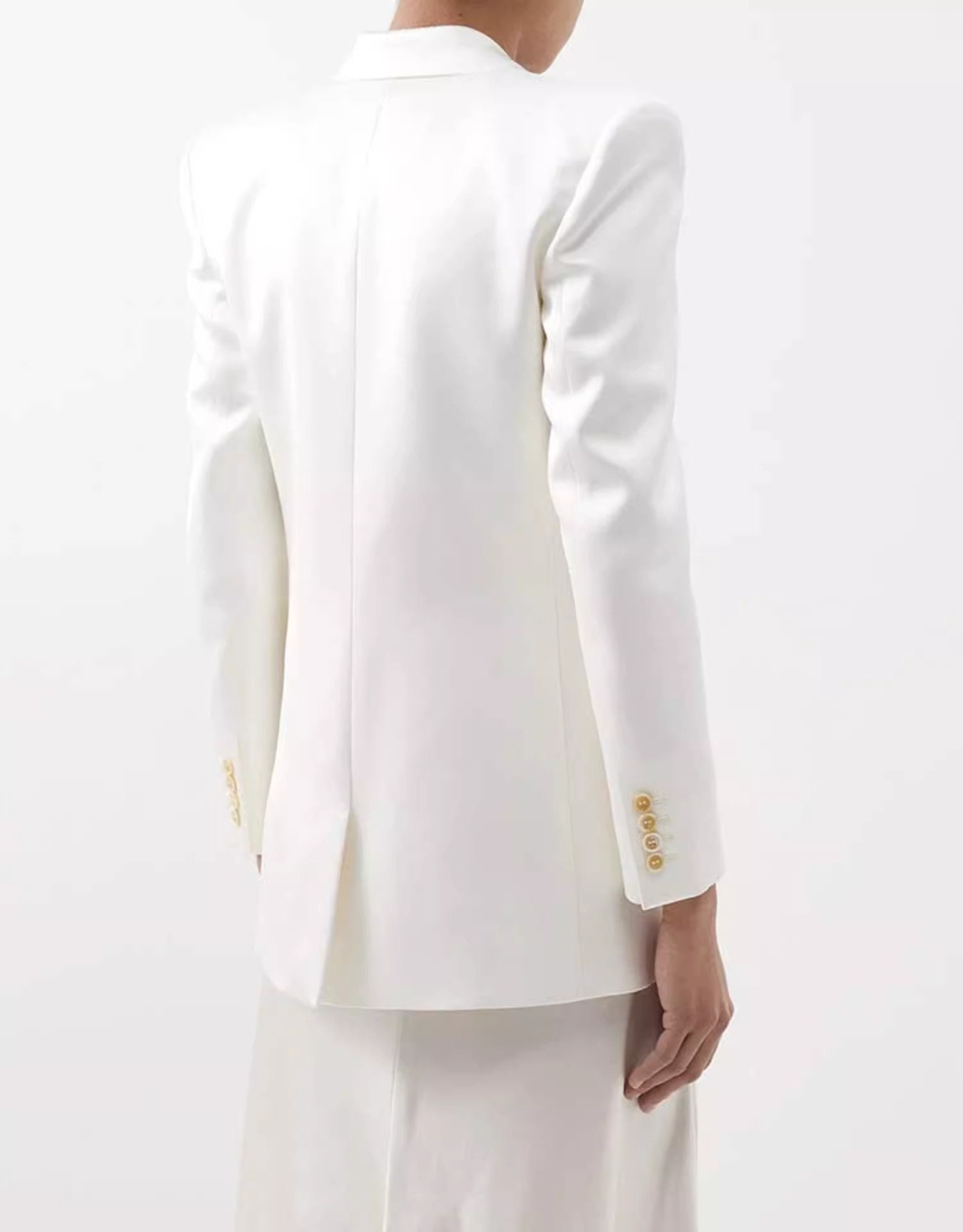 th~row 미니멀리스트 더블 브레스트 디자인 실크 새틴 어깨 패드 긴팔 정장 여성 2025 봄, 가을 새 코트 여성 의류