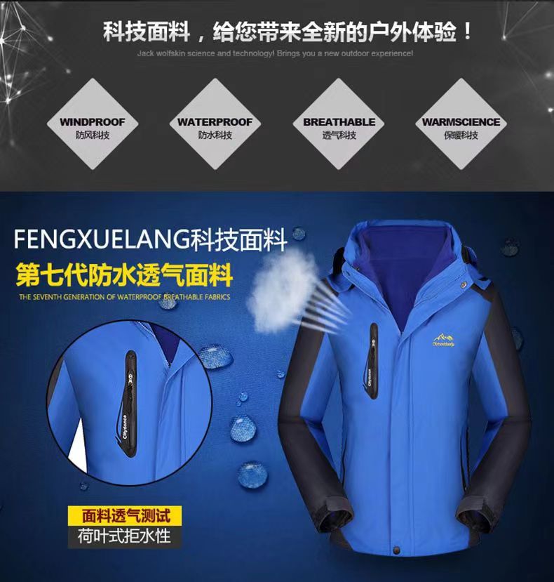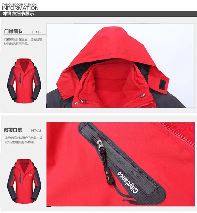 3-in-one 돌격 재킷 탈부착 겨울 하이킹 세트 따뜻한 방수 작업복 기모 두꺼운 플러스 사이즈 투피스 세트