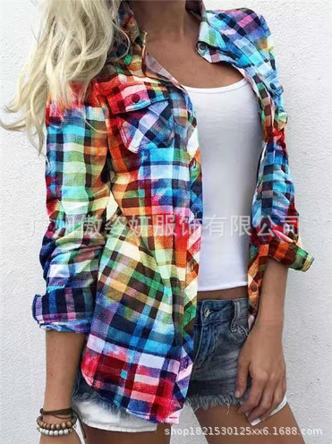 2023 크로스 보더 뉴 스프링 기질 콜라주 카디건 긴팔 칼라 스트레이트 튜브 여성 셔츠 직접 공급스토어 가기