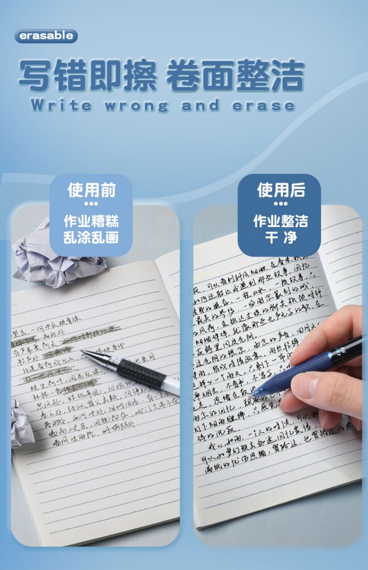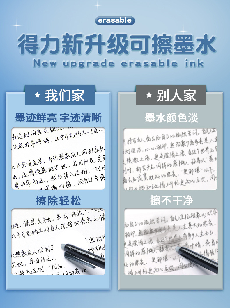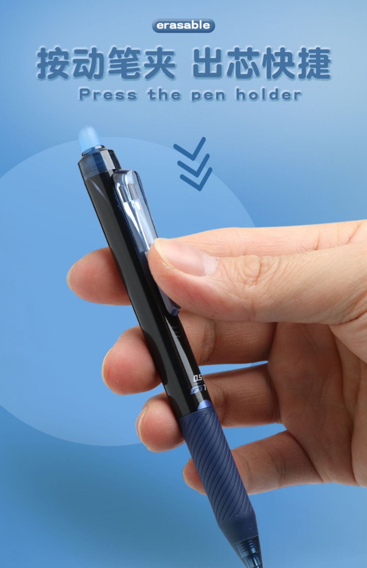 델리 GT7 프레스식 지울 수 있는 펜 열 젤 펜 워터 펜 초등학생 매직 지우기 총알 블랙 크리스탈 블루스토어 가기