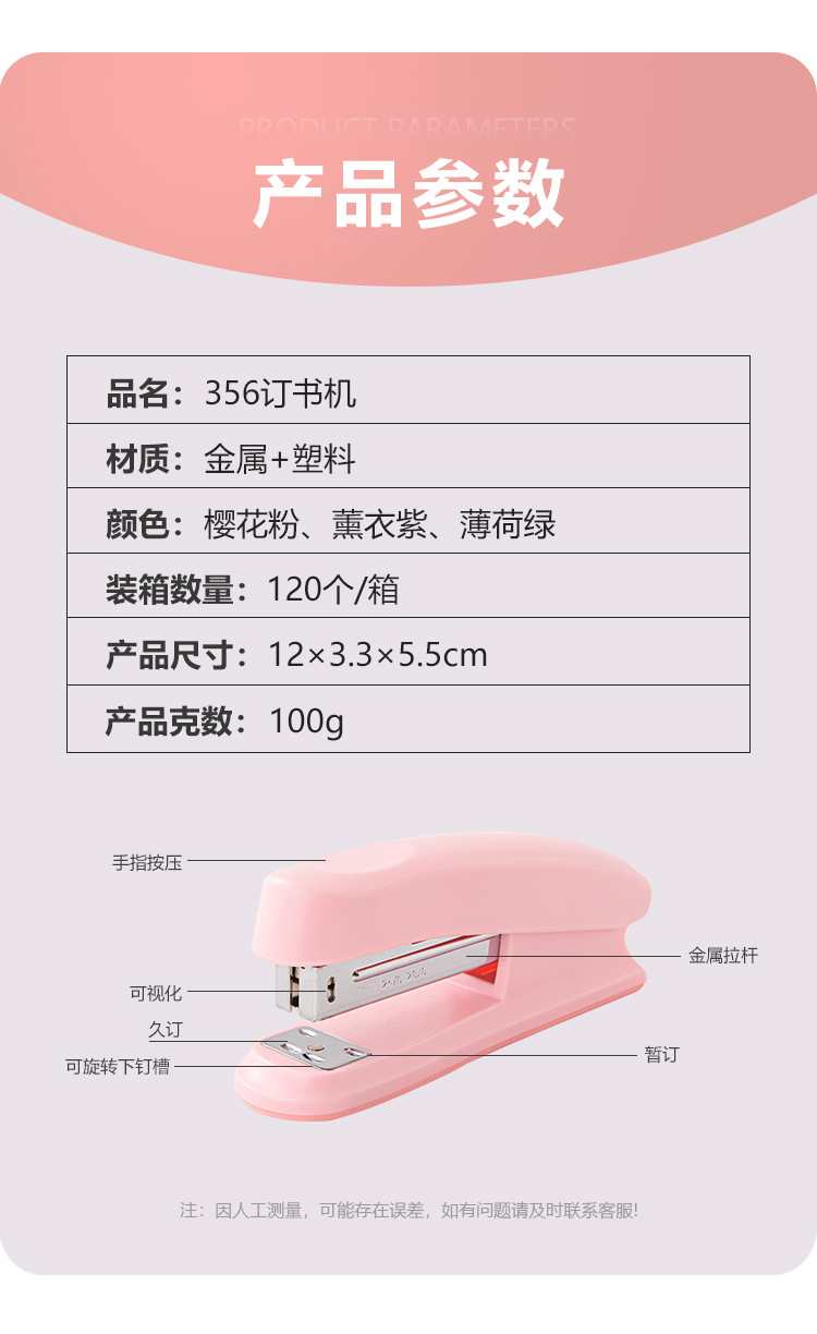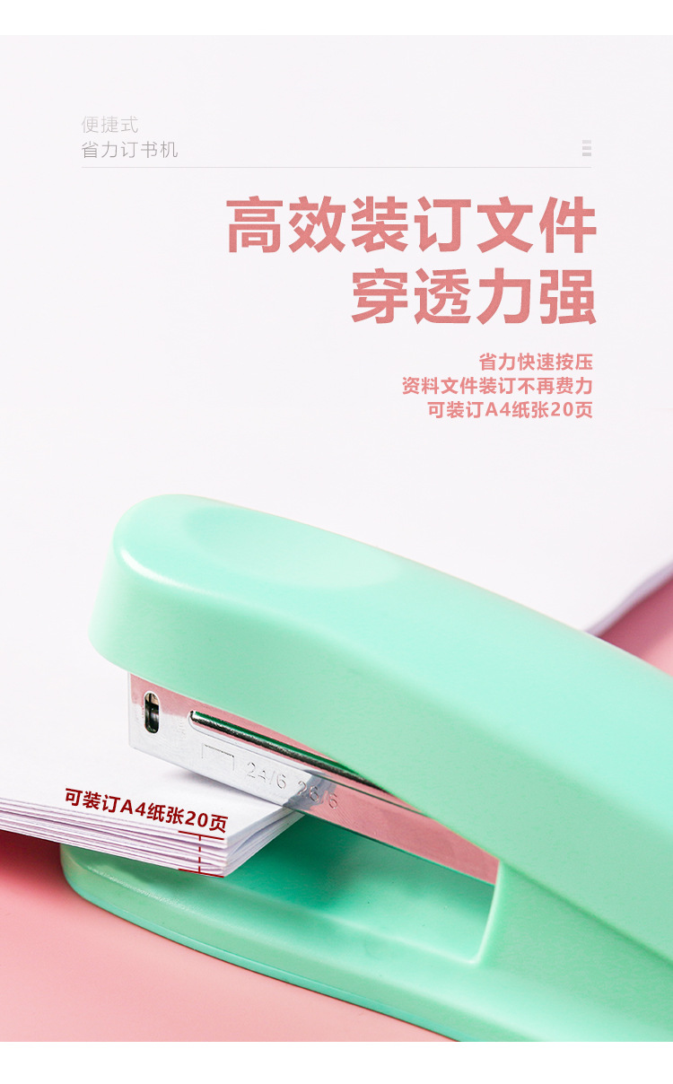 No.12 노동절약 스테이플러 고가 휴대용 제본기 사무실 학생 문구 마카롱 컬러 중형 스테이플러