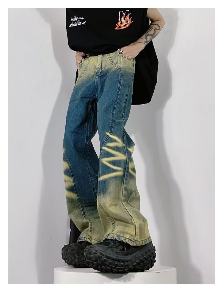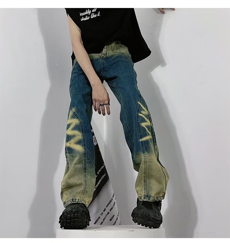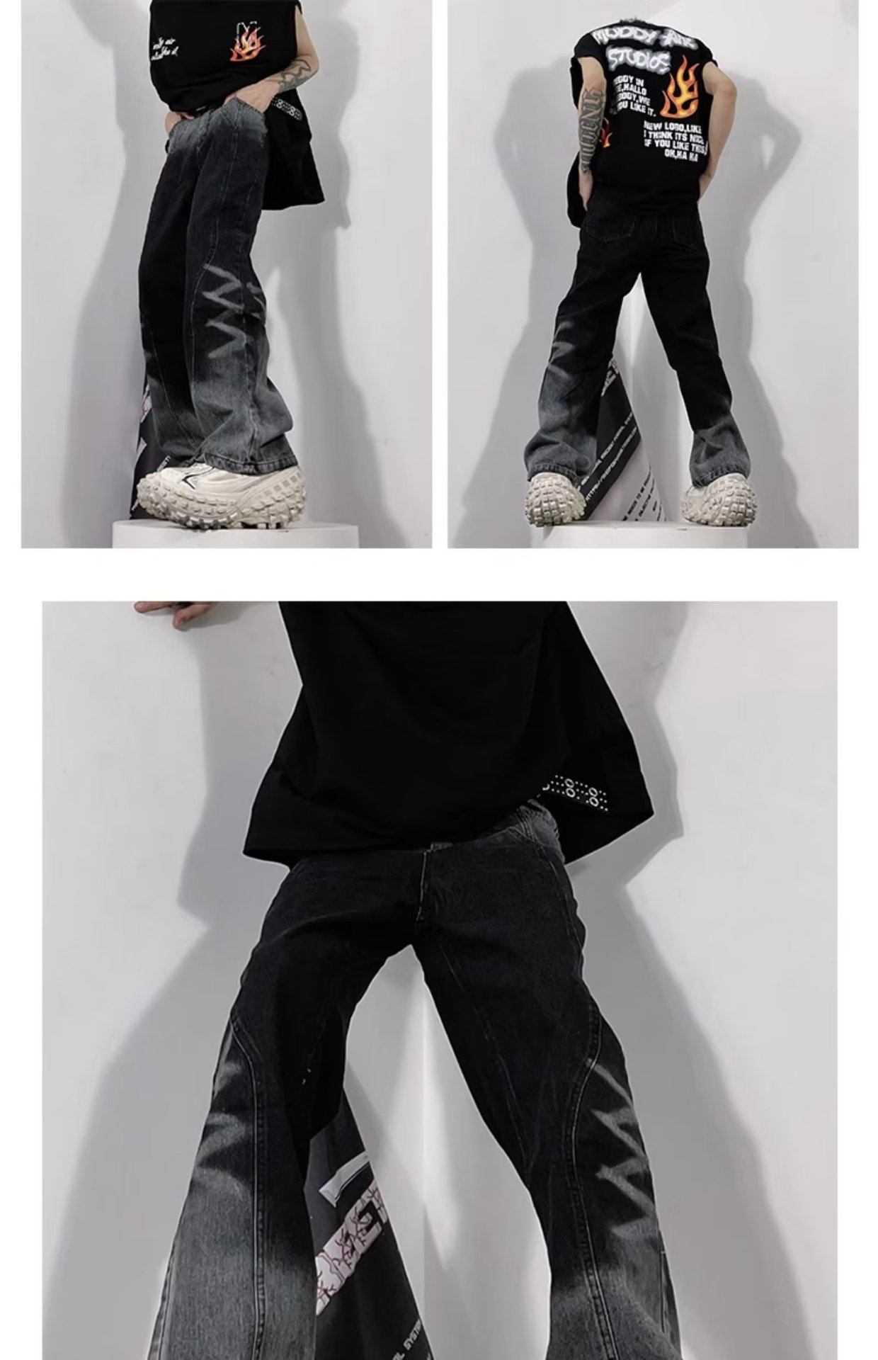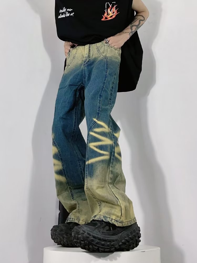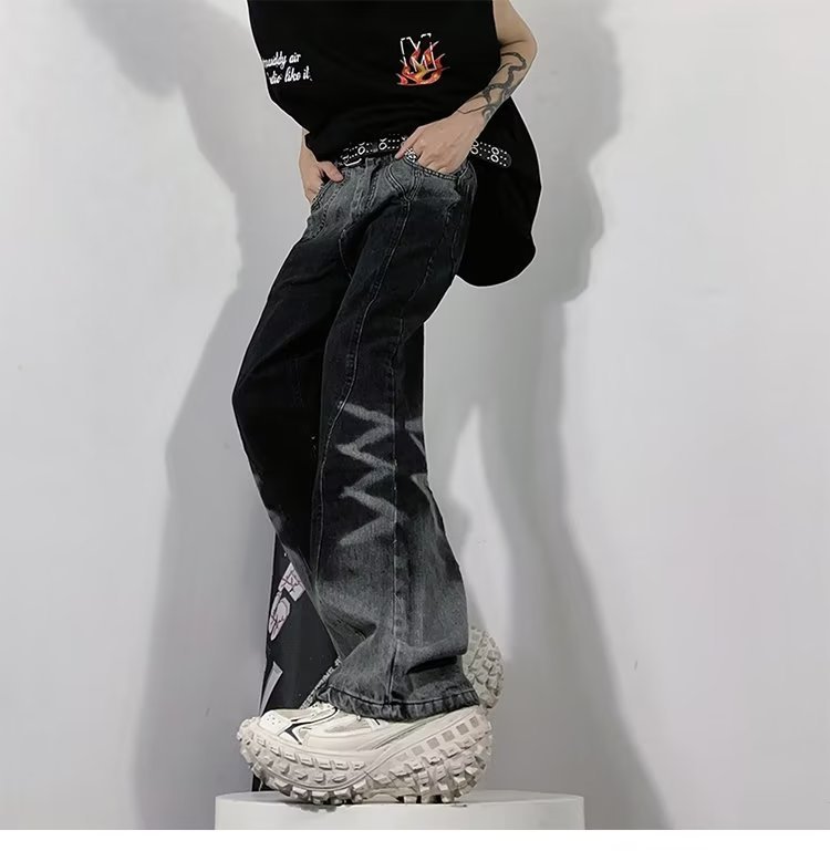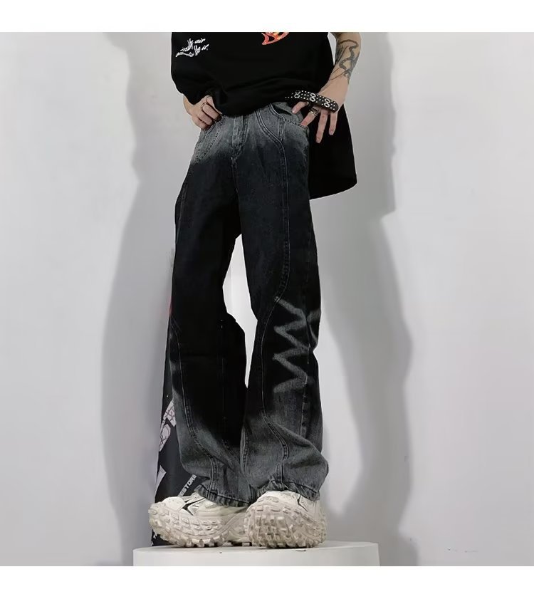 아메리칸 스타일 하이 스트리트 점진적 워시 올드 골판지 청바지 남여 공용 느슨한 스트레이트 바지 패션 브랜드 하이 엔드 센스 팬츠스토어 가기