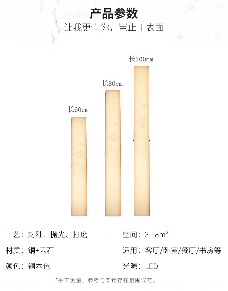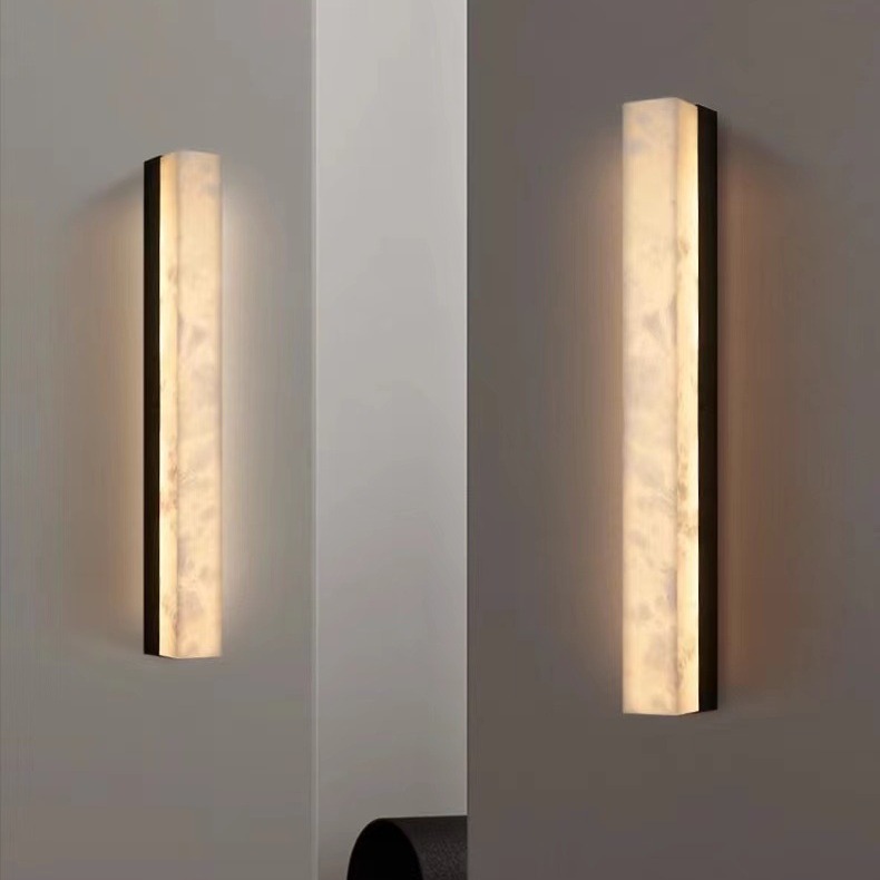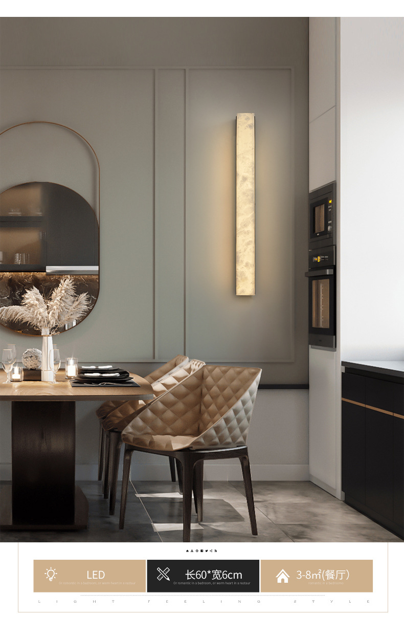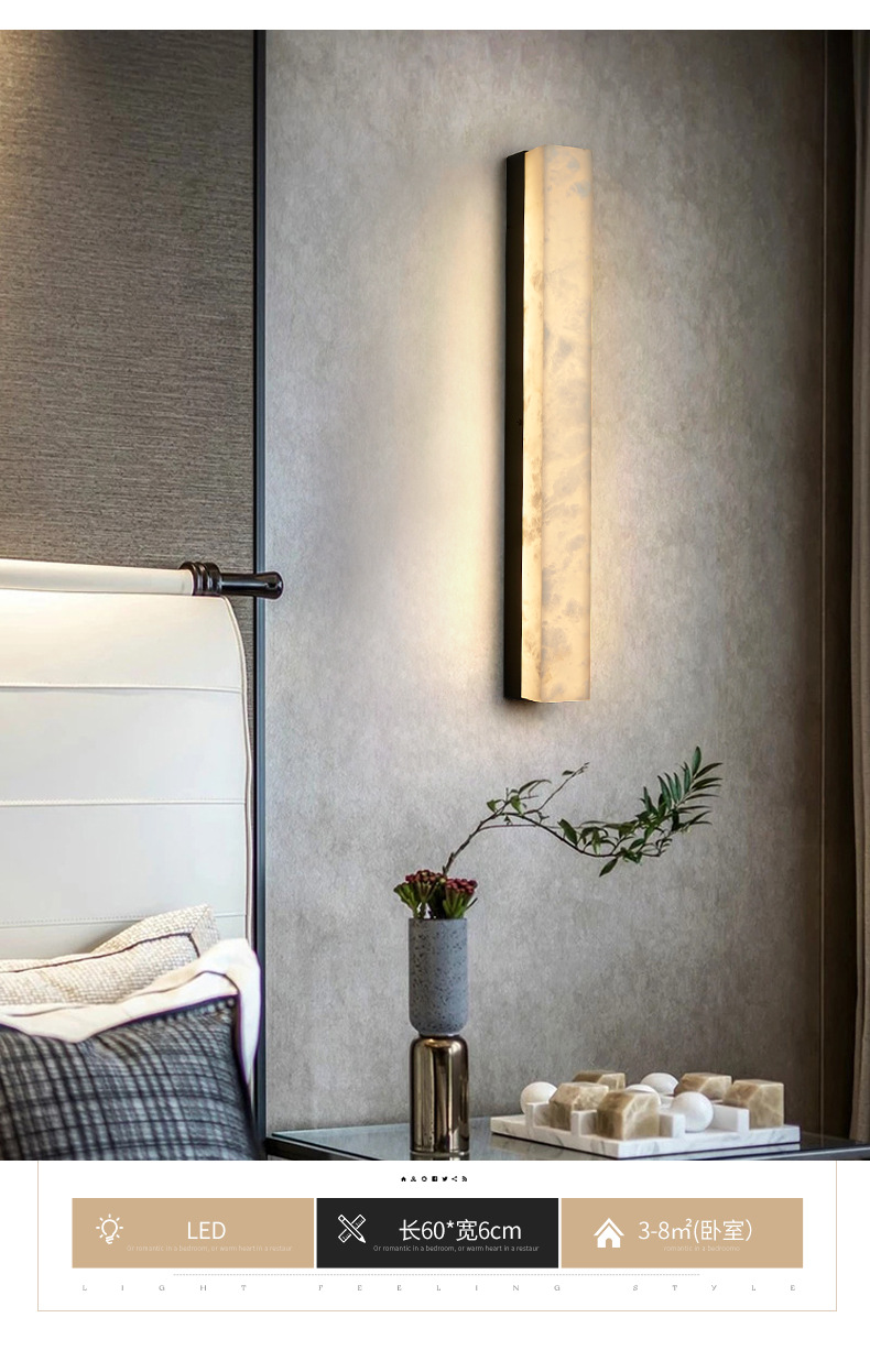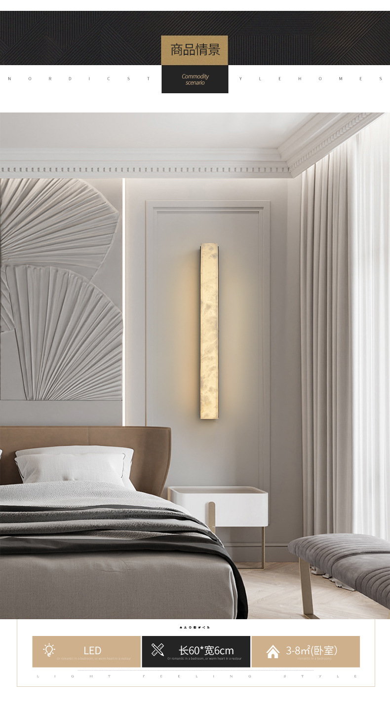 중국산 조명, 실외 조명, 진짜 대리석 벽등, 전체 구리 긴 스트립형 거실 TV 벽등, 침대 옆등