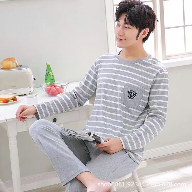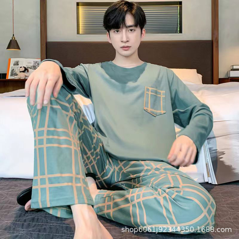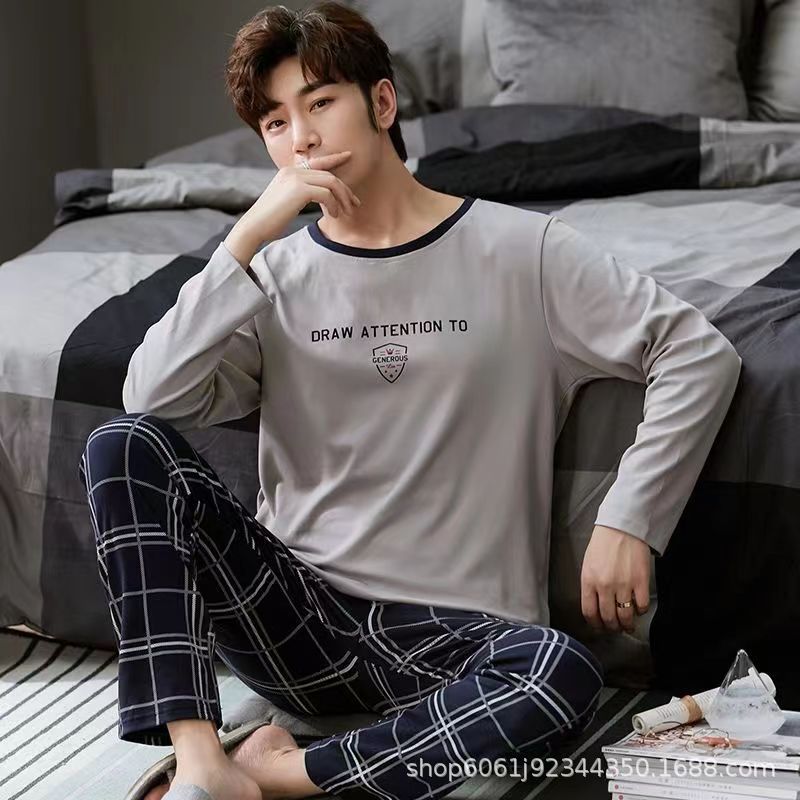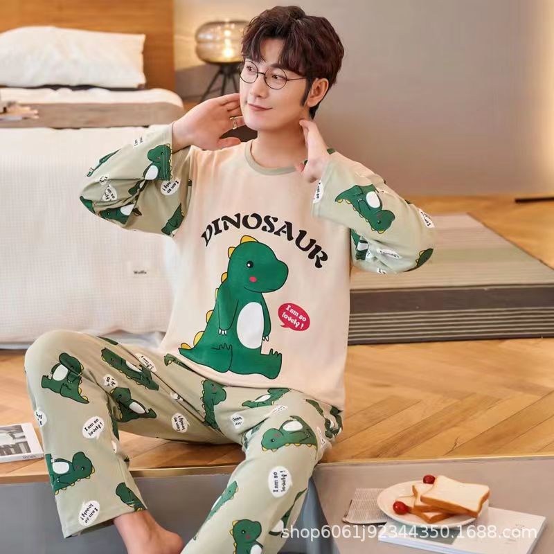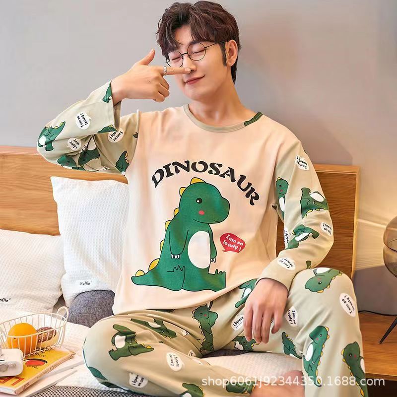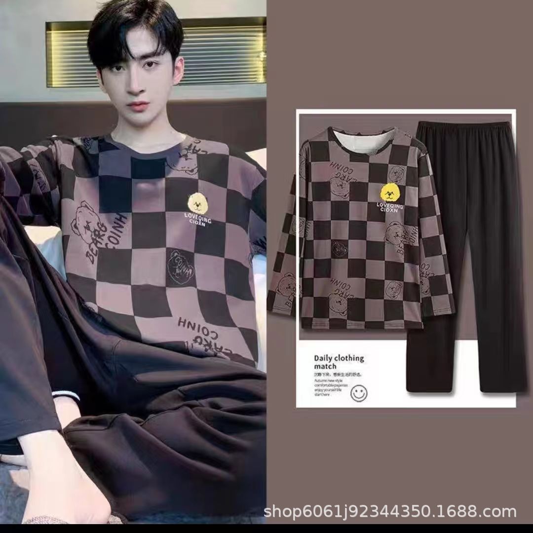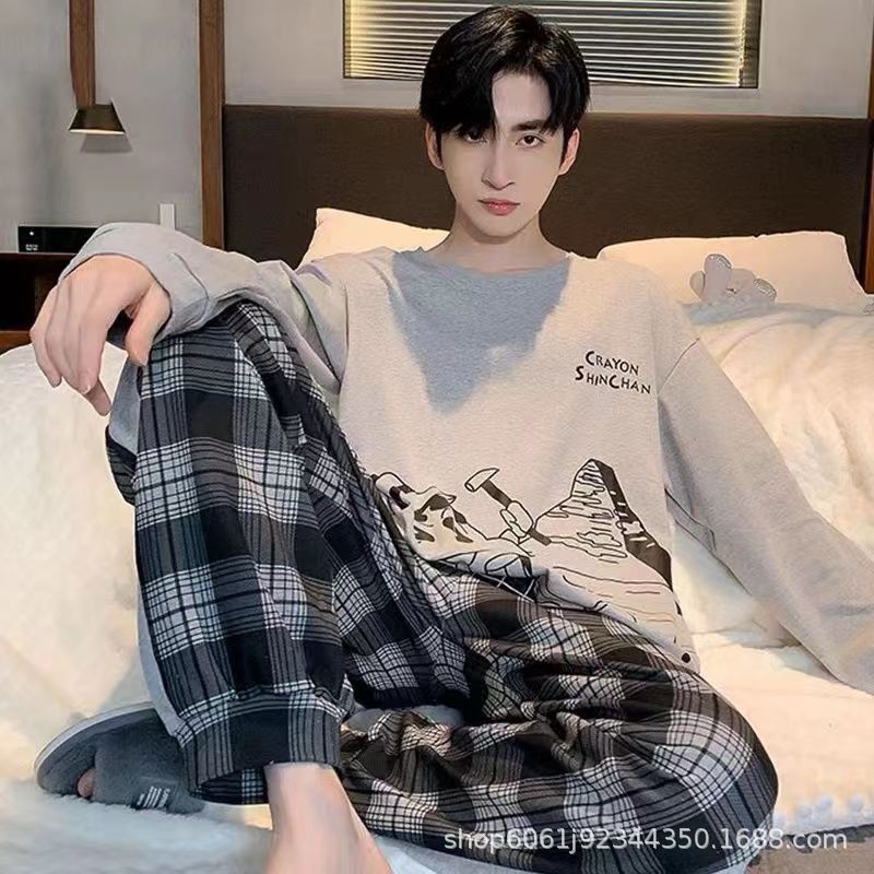 잠옷 남자의 모조 면 봄과 가을 긴 소매 만화 청소년 2023 새로운 편안한 플러스 사이즈 가정 의류 세트스토어 가기