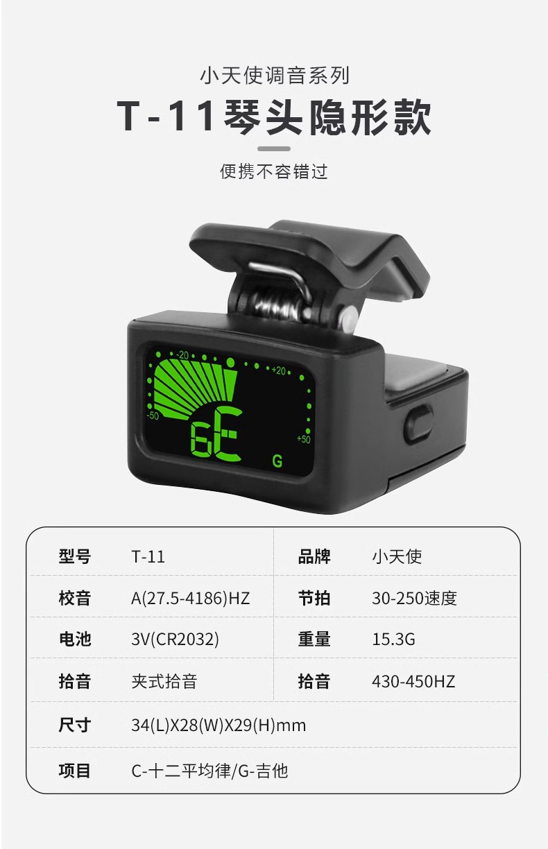작은 천사 기타 튜너 특수 우쿨렐레 바이올린 유니버설 배터리 자동 초보자 전자 튜너스토어 가기