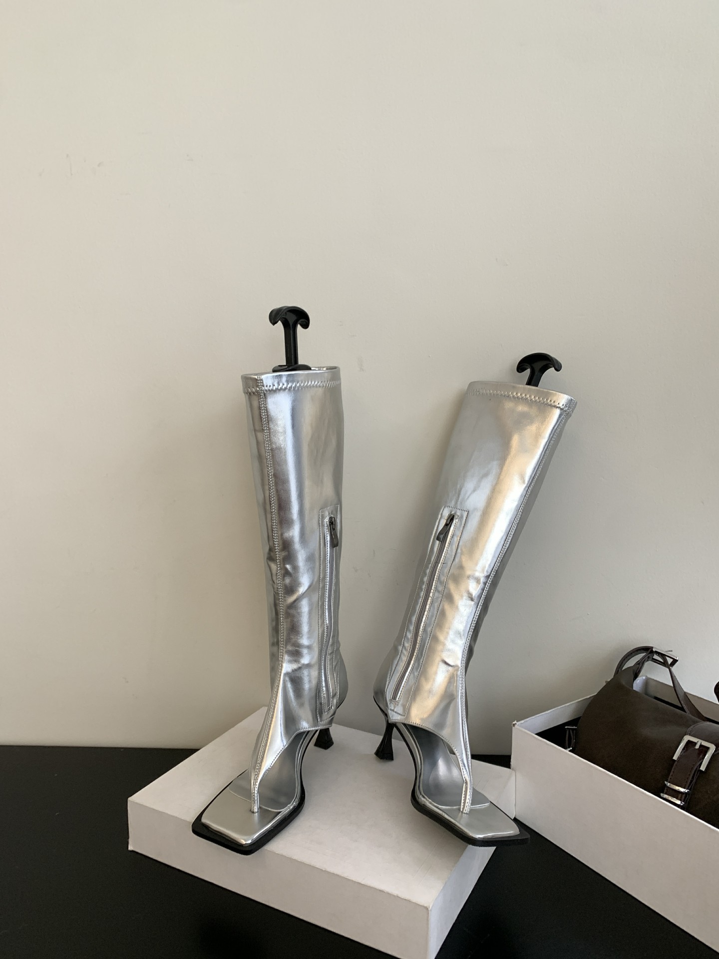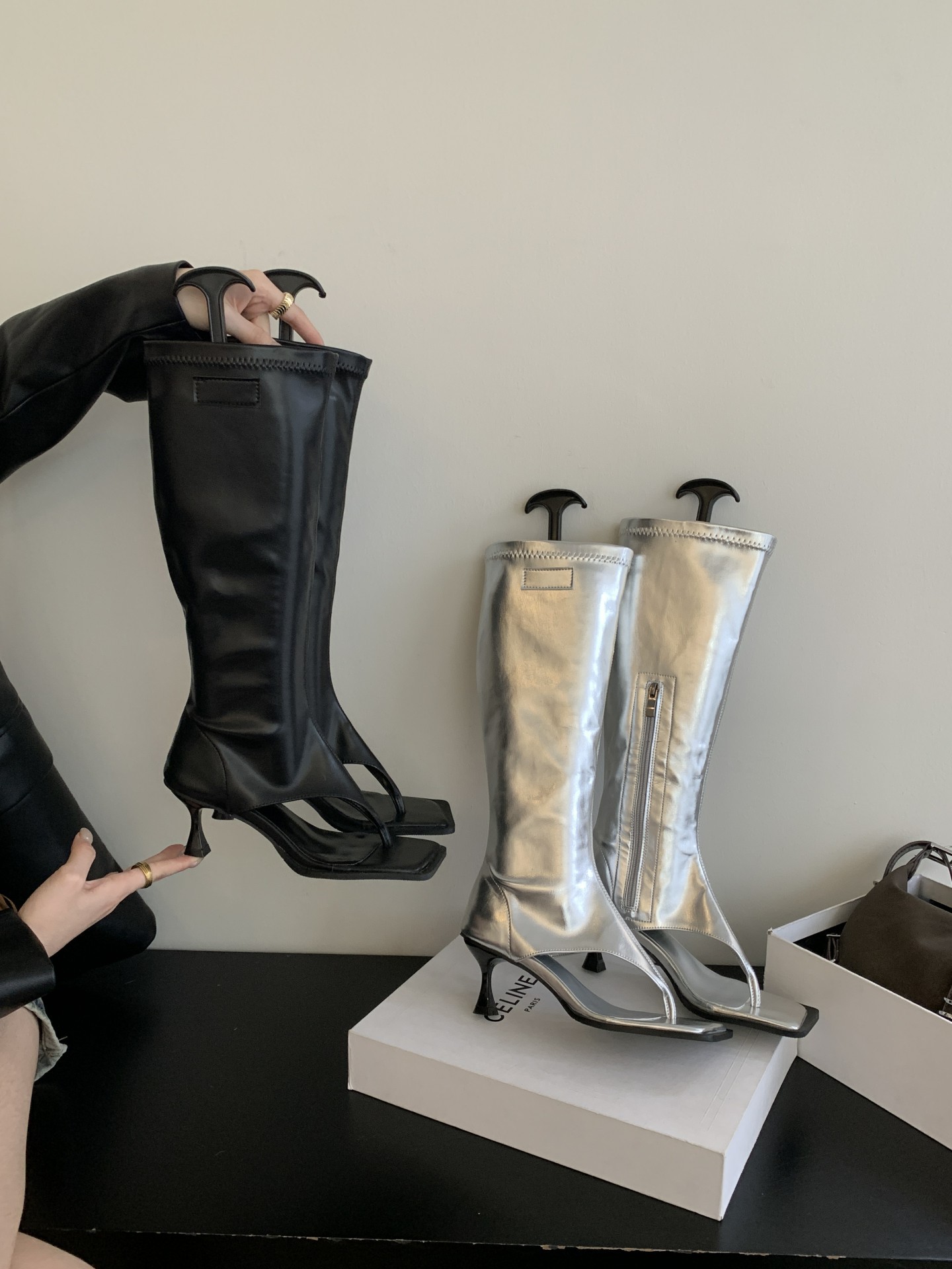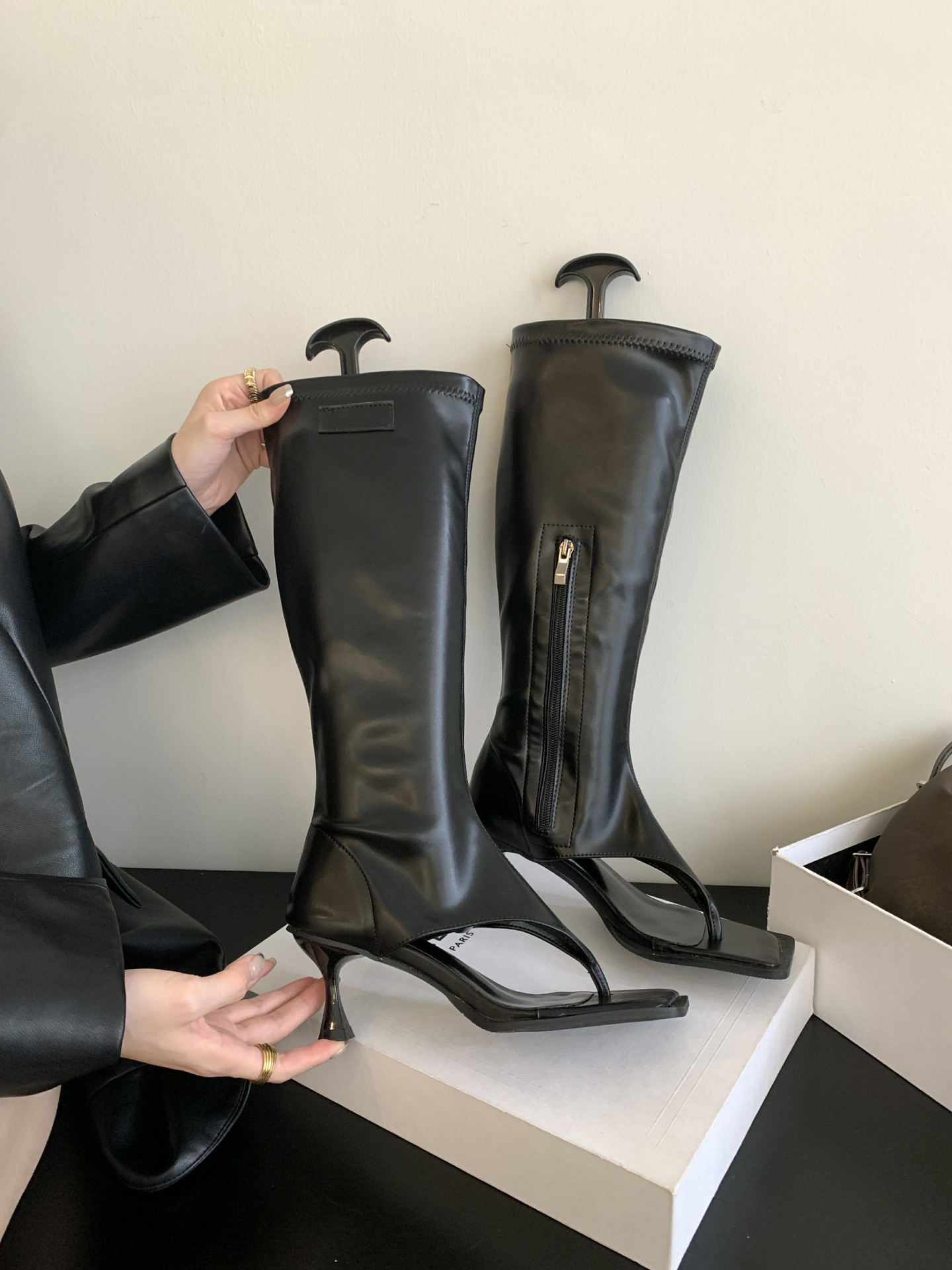 2025년 가을 신상 한국 스타일 라이트 럭셔리 하이힐 샌들 여성 패션 슬립온 가죽 부츠 다용도 외출용 핫걸 레그 워머스토어 가기