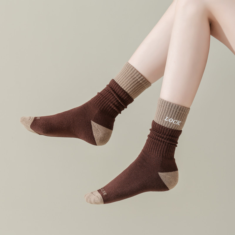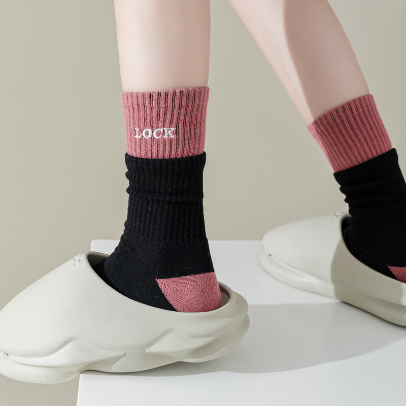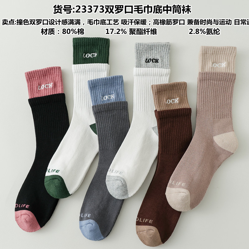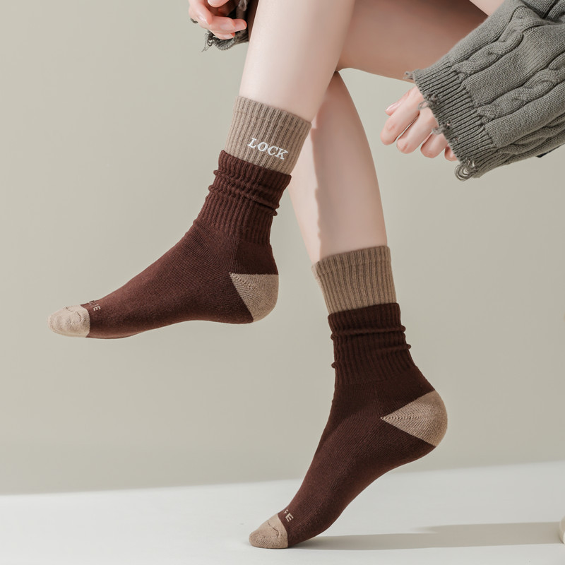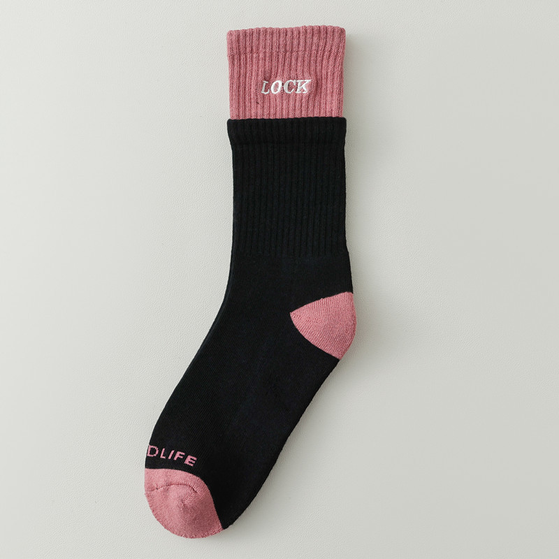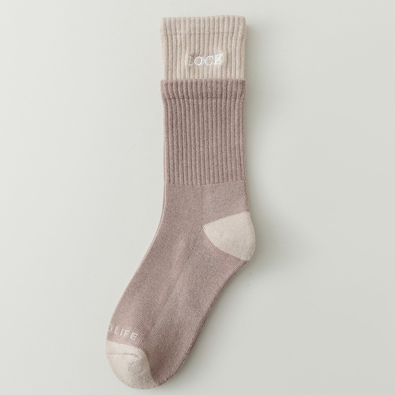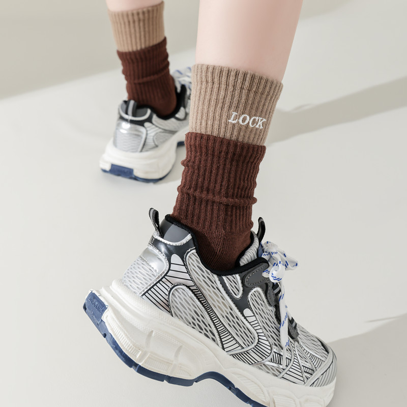 가을과 겨울 두꺼운 발 양말 더블 레이어 스티칭 스타킹 여성용 한국 스타일 인 트렌디 브랜드 더블 Rakou 편지 면 양말