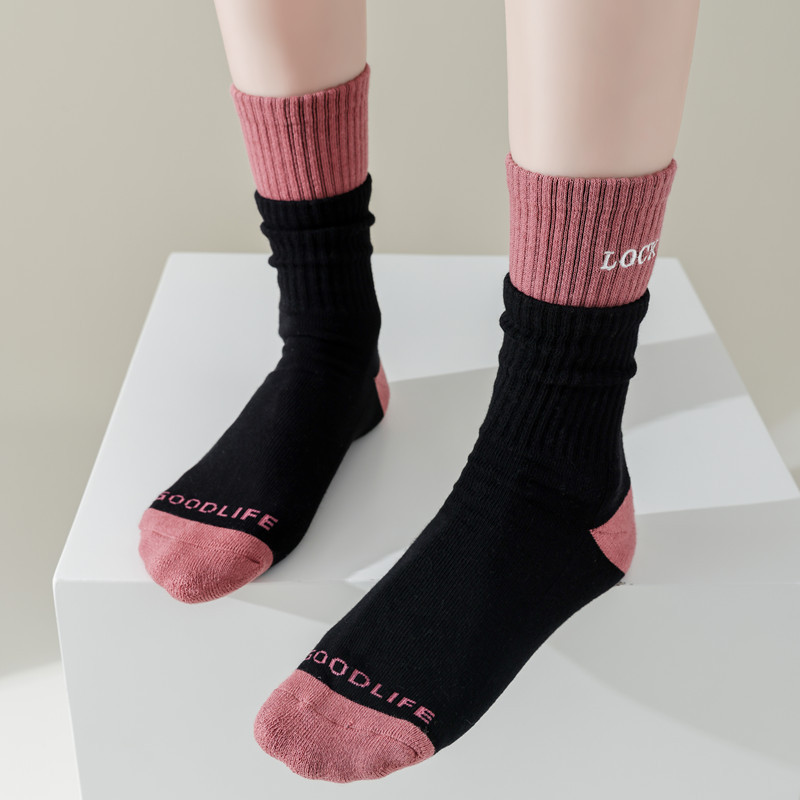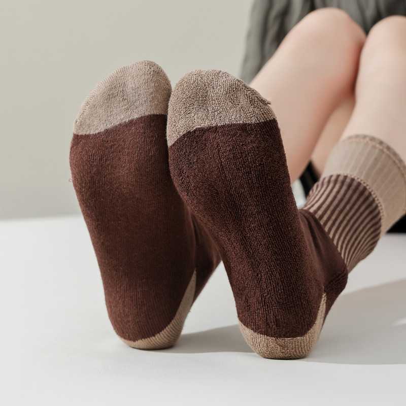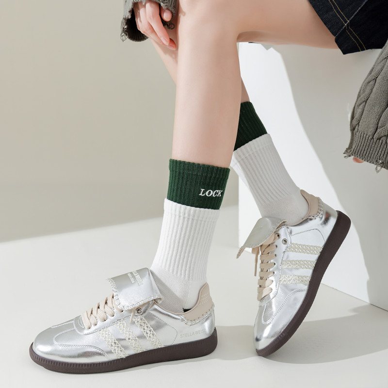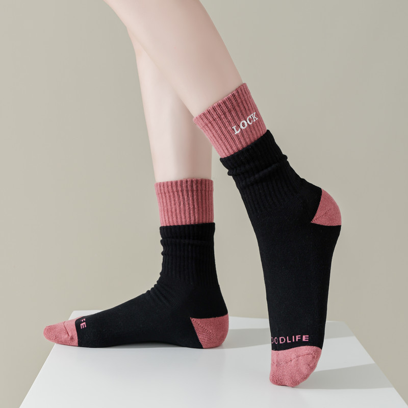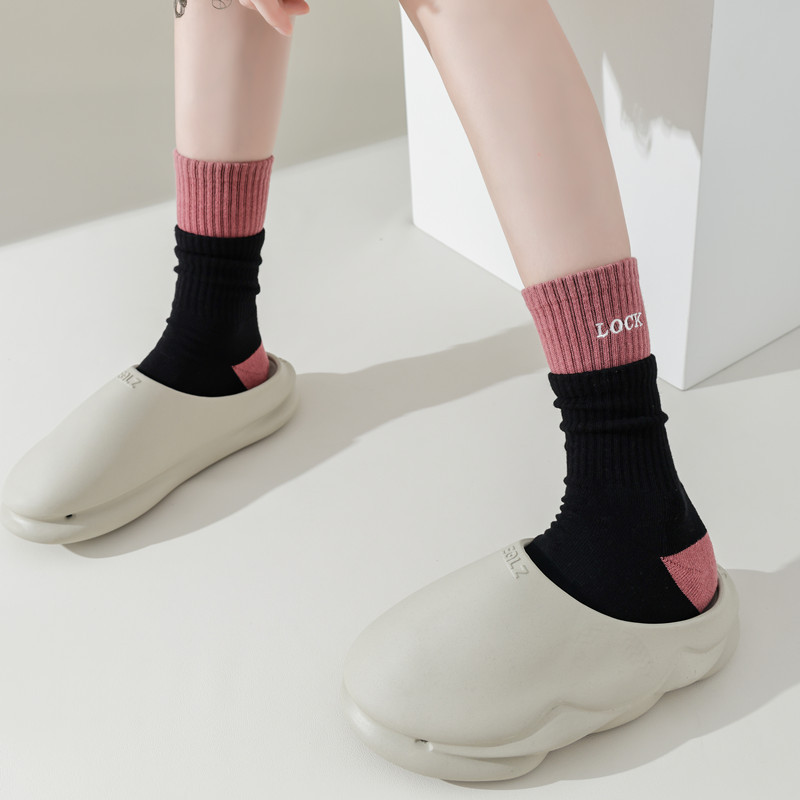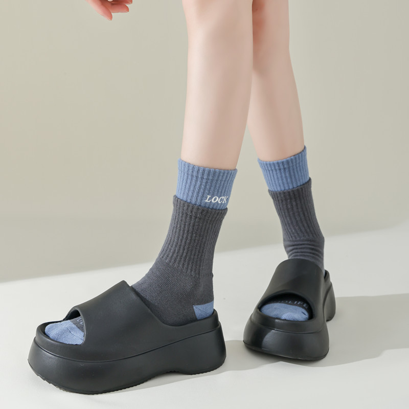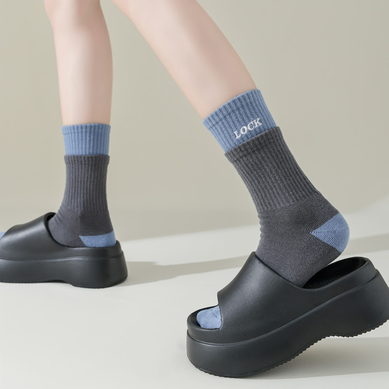 가을과 겨울 두꺼운 발 양말 더블 레이어 스티칭 스타킹 여성용 한국 스타일 인 트렌디 브랜드 더블 Rakou 편지 면 양말