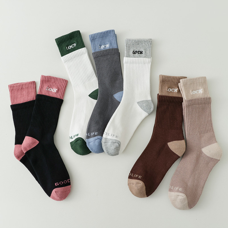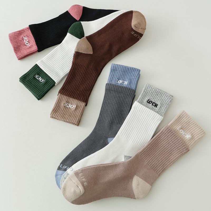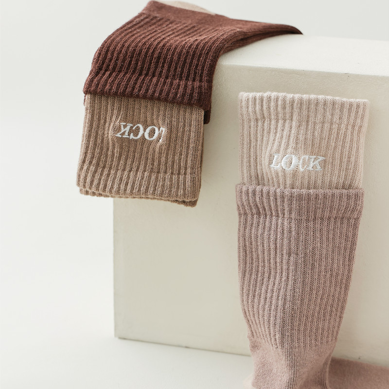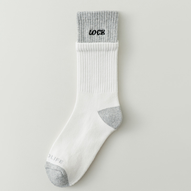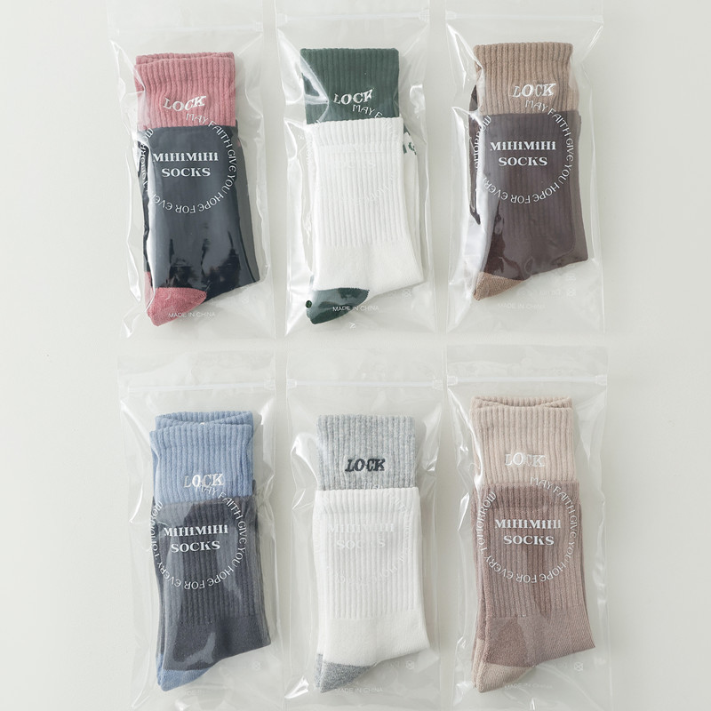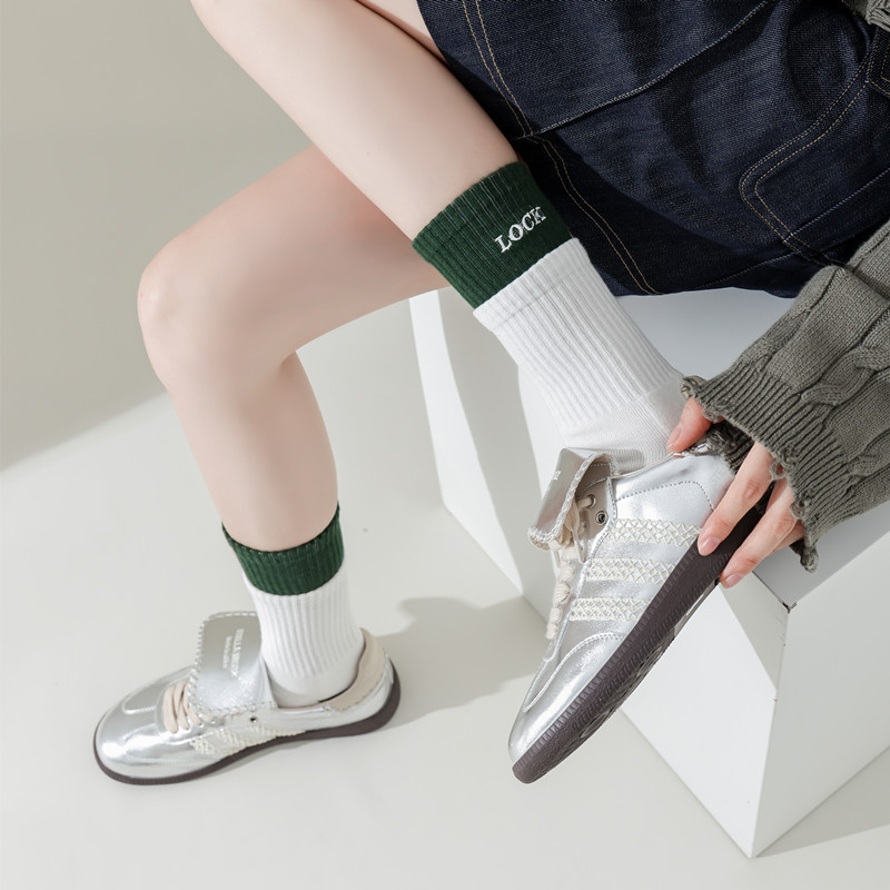 가을과 겨울 두꺼운 발 양말 더블 레이어 스티칭 스타킹 여성용 한국 스타일 인 트렌디 브랜드 더블 Rakou 편지 면 양말스토어 가기