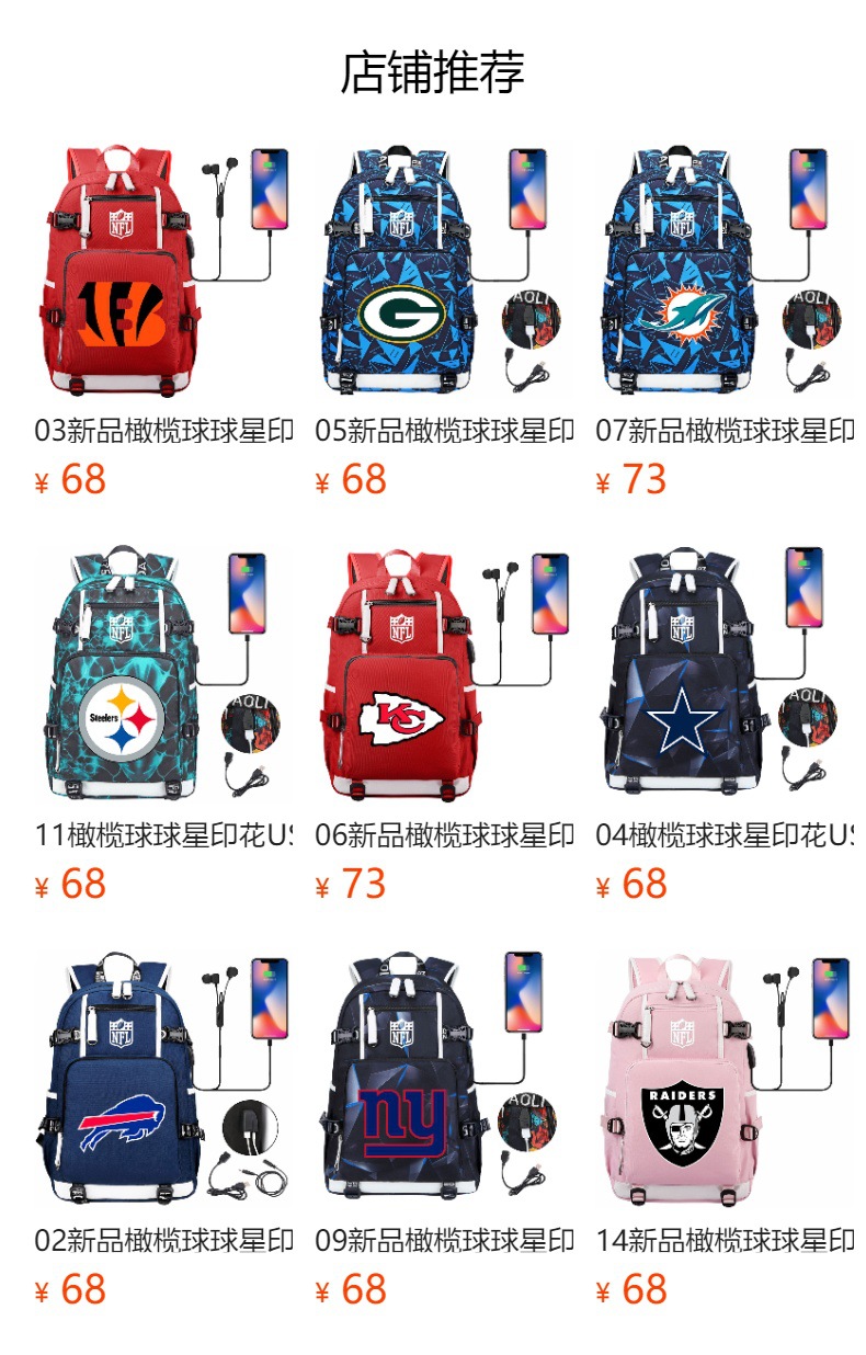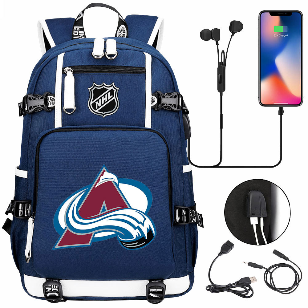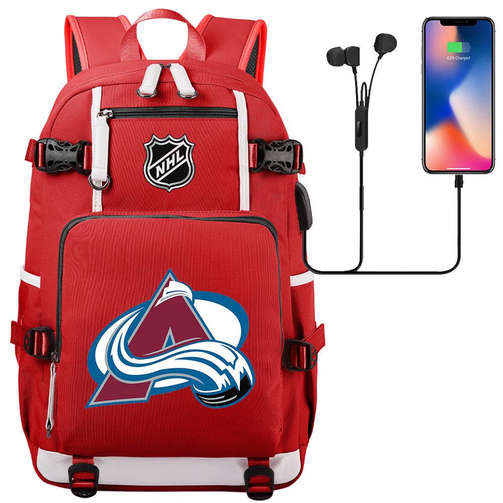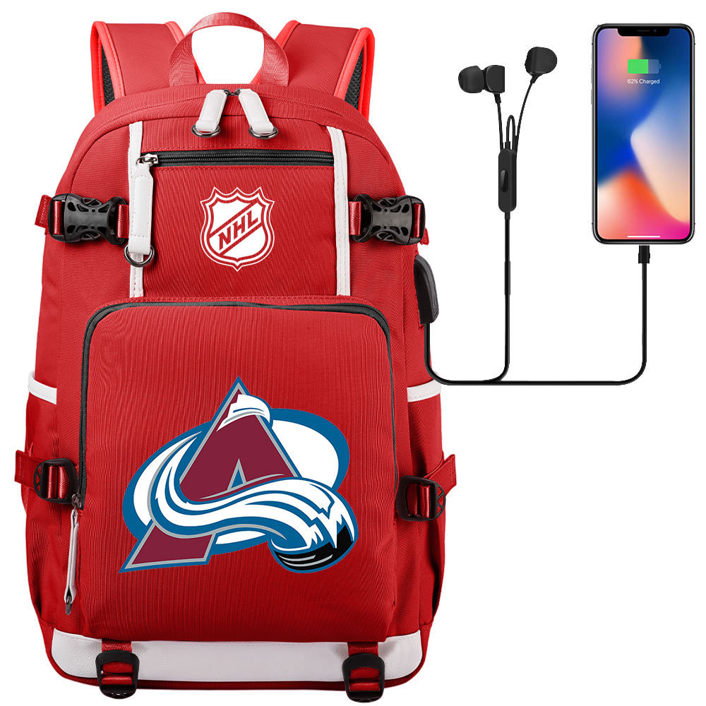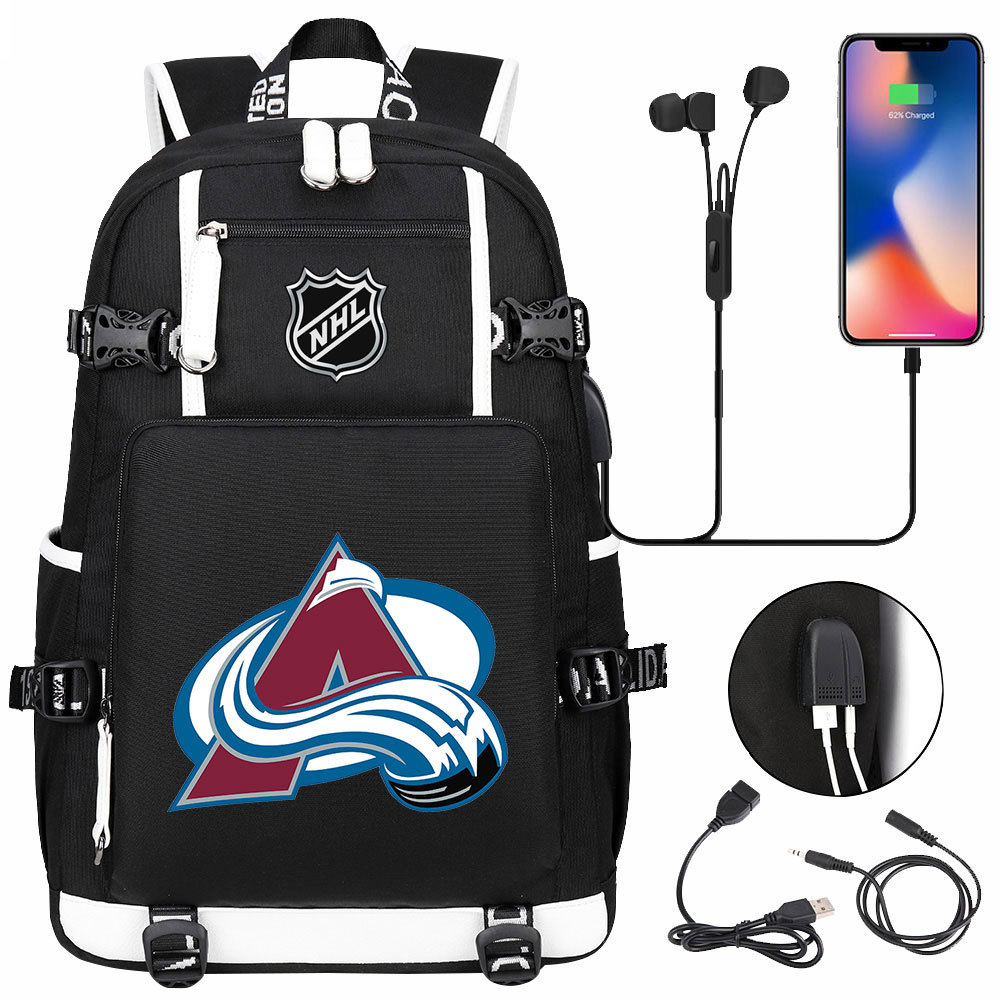 스포츠 팀 아이스 하키 프린트 USB 헤드셋 십대 학생 책가방 남여 공용 캐주얼 여행 배낭스토어 가기