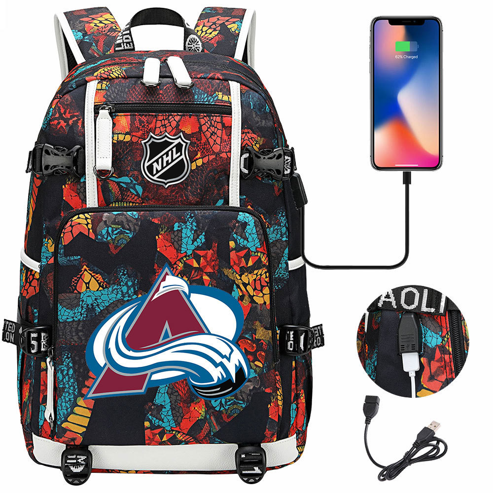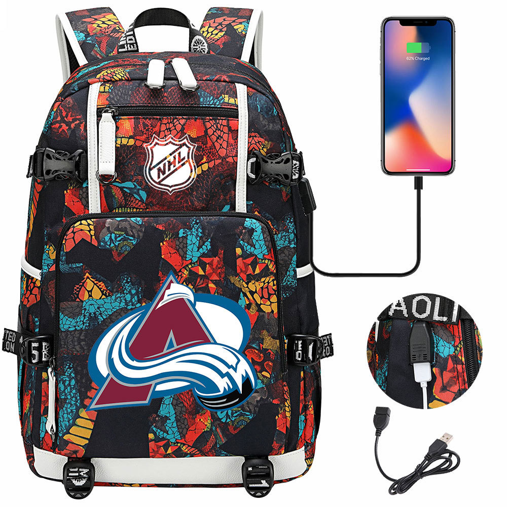 스포츠 팀 아이스 하키 프린트 USB 헤드셋 십대 학생 책가방 남여 공용 캐주얼 여행 배낭