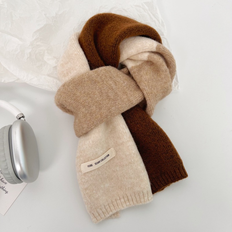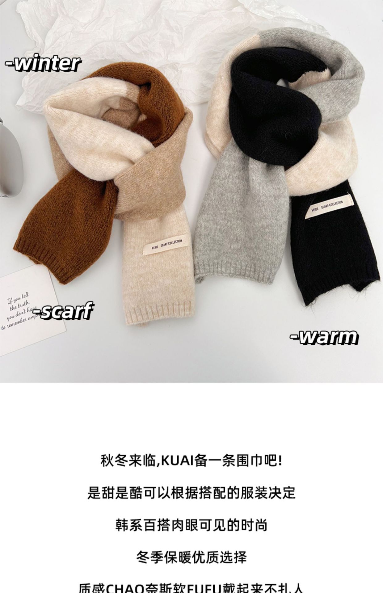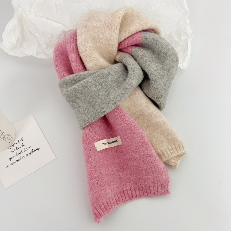 대비 컬러 스카프 여성의 가을과 겨울 목 보호 한국 스타일 귀여운 학생 따뜻한 니트 모든 일치 색상 일치 장식 스카프스토어 가기