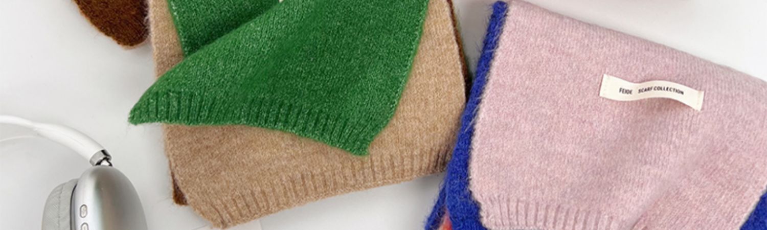 • 핑크 쌀 그레이 (3 색 스티치 스카프)