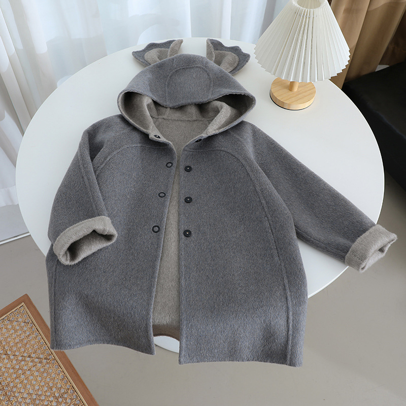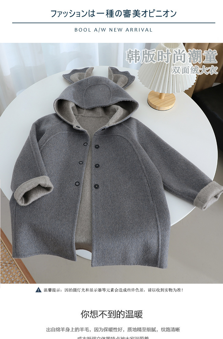 2023 새로운 코알라 이어 울 양면 캐시미어 코트 여아 아동 울 코트 겨울 미드 빅 키즈