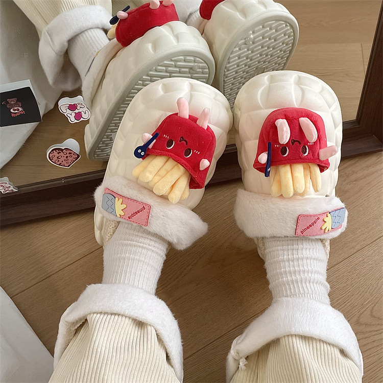 신발에 따뜻한 신발 여성 패션 아웃웨어 2023 겨울 빵 면화 신발 귀여운 우유 푸푸 면 슬리퍼