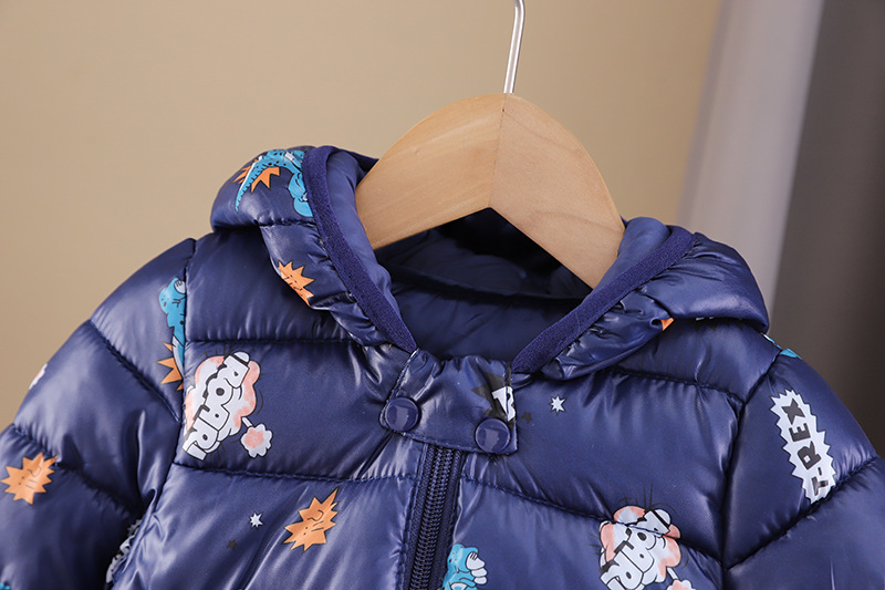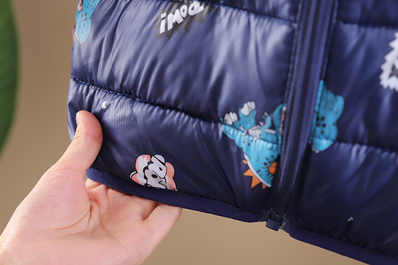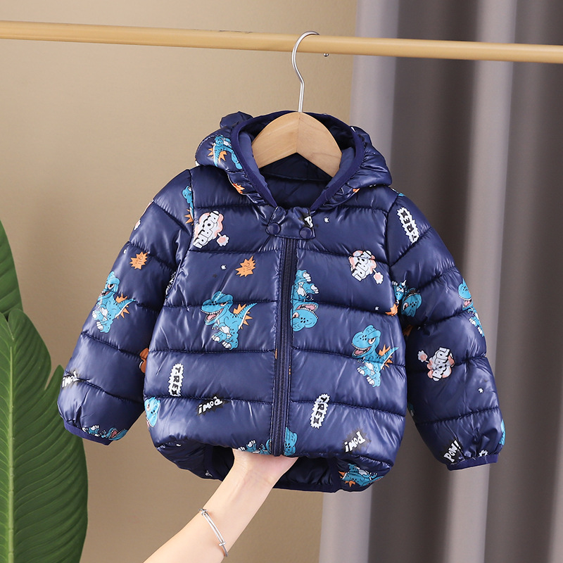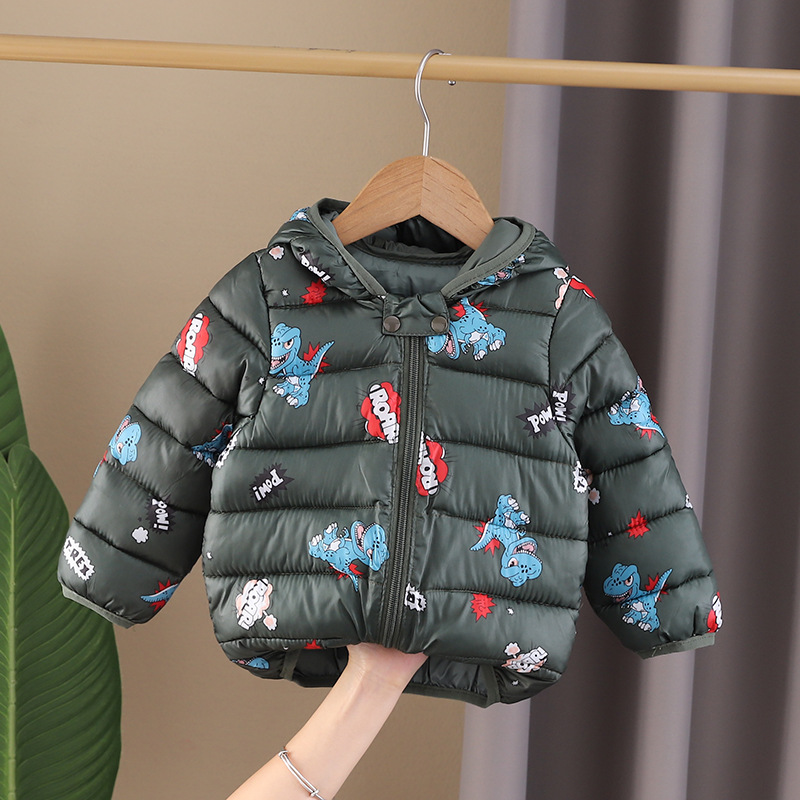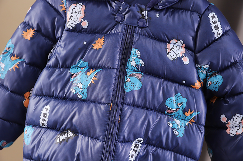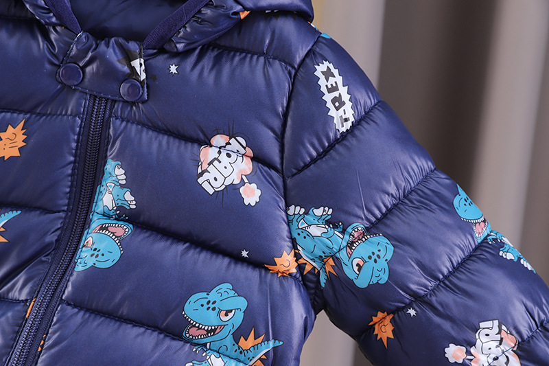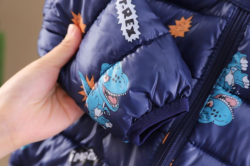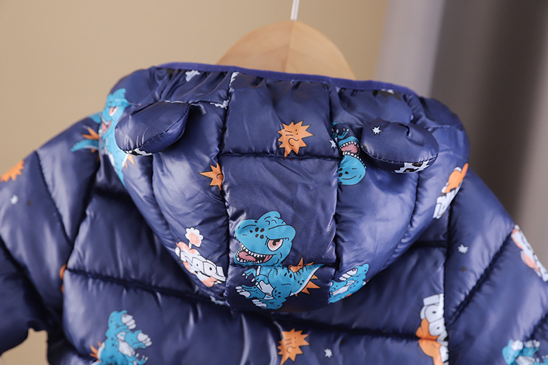 남아 가을 겨울 의류 플러스 벨벳 코트 2023 뉴 스타일 레저 코튼 패딩 공룡 후드 코튼 패딩 재킷 도매