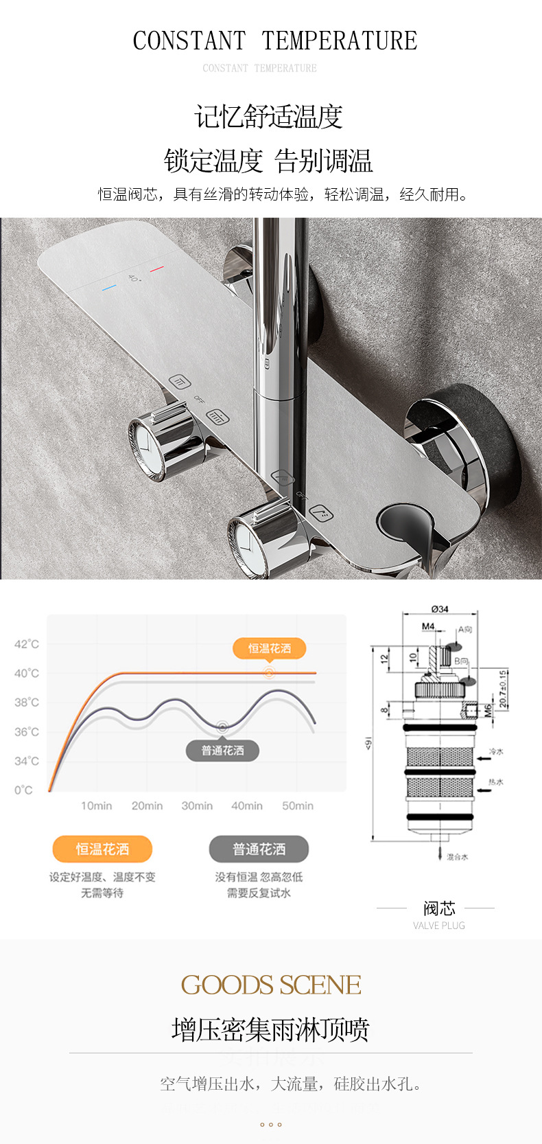 동 크롬 컬러 비즈니스 호텔 화장실 다기능 로터리 노브형 일정 온도 과급 샤워 냉온수 전 수도꼭지스토어 가기