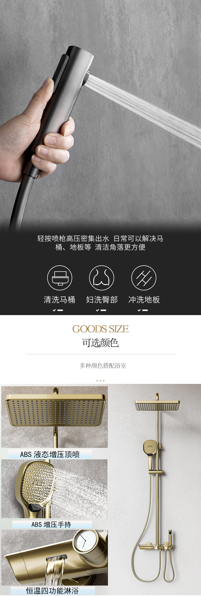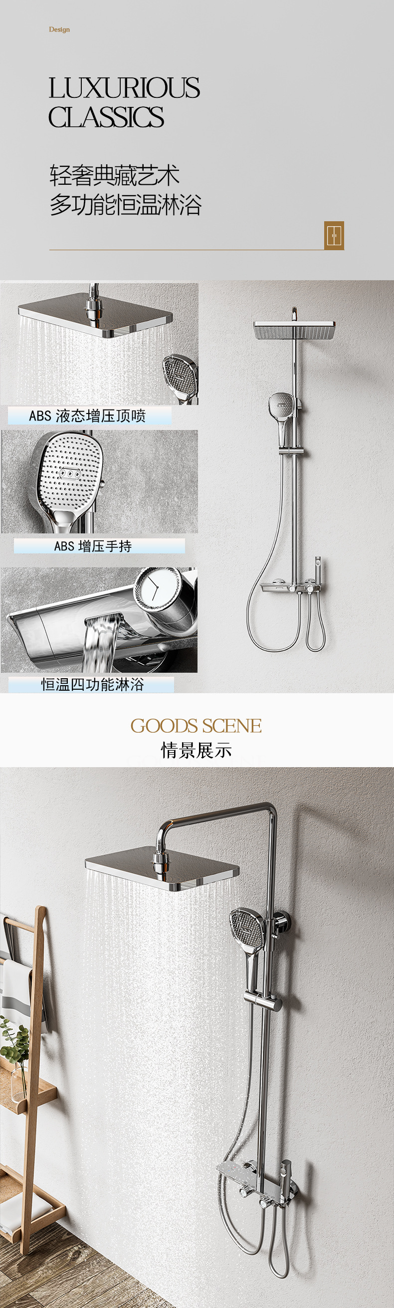 동 크롬 컬러 비즈니스 호텔 화장실 다기능 로터리 노브형 일정 온도 과급 샤워 냉온수 전 수도꼭지
