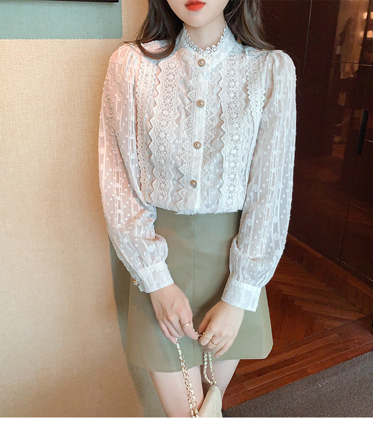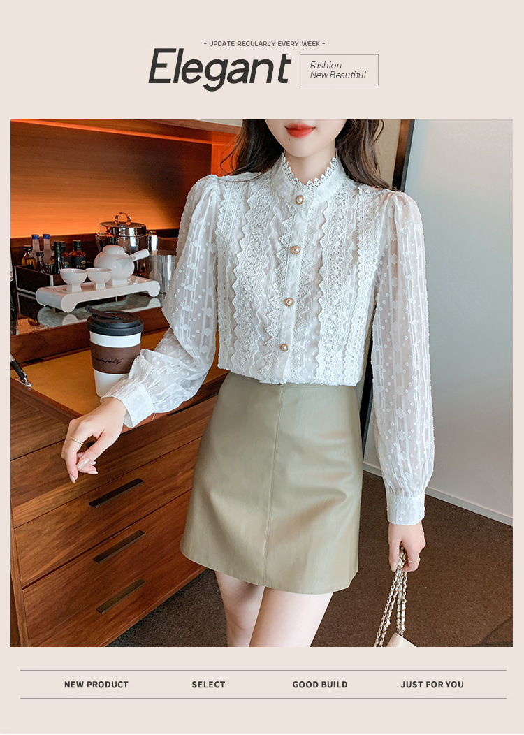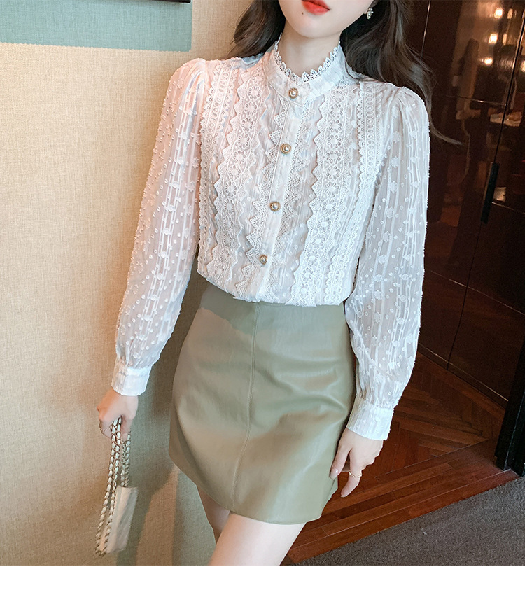 리얼 샷 해외 무역 2023 봄과 가을 새로운 패션 디자인 긴 소매 서양 스타일 달콤한 쉬폰 여성 셔츠스토어 가기
