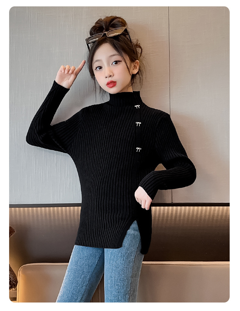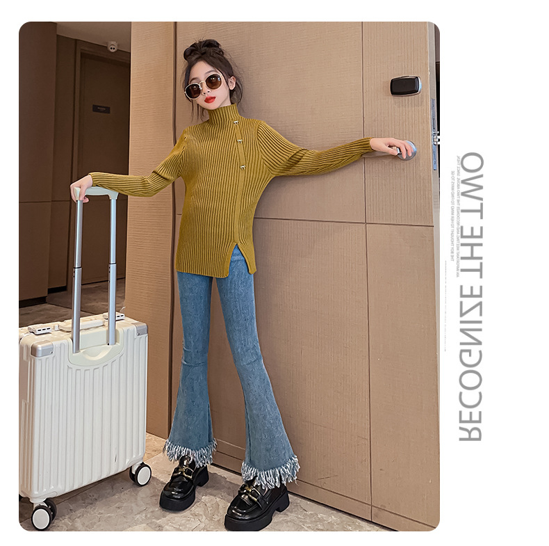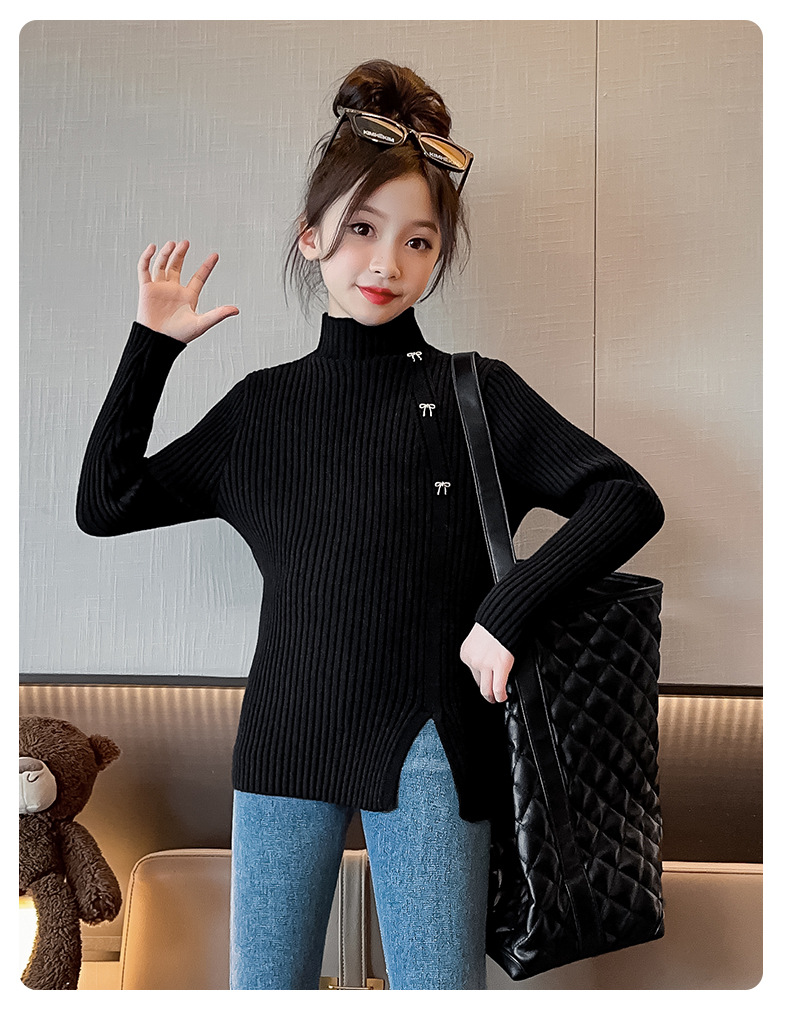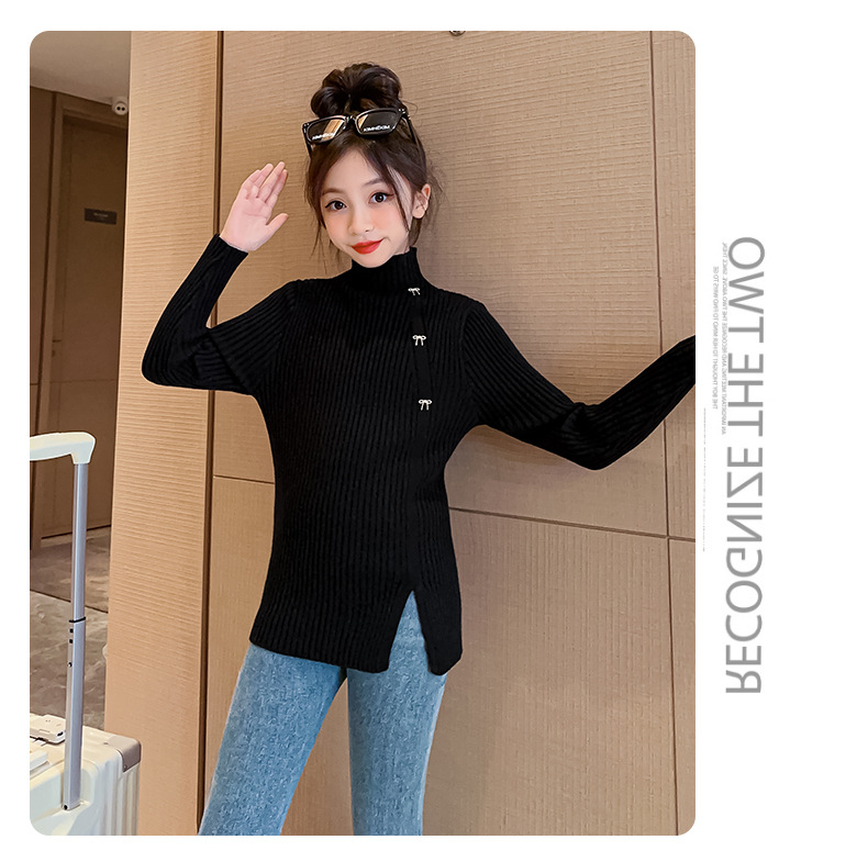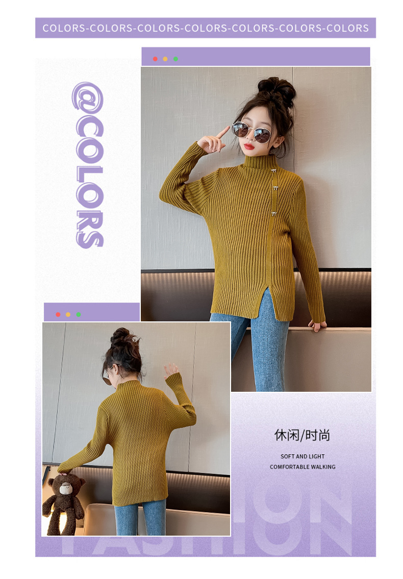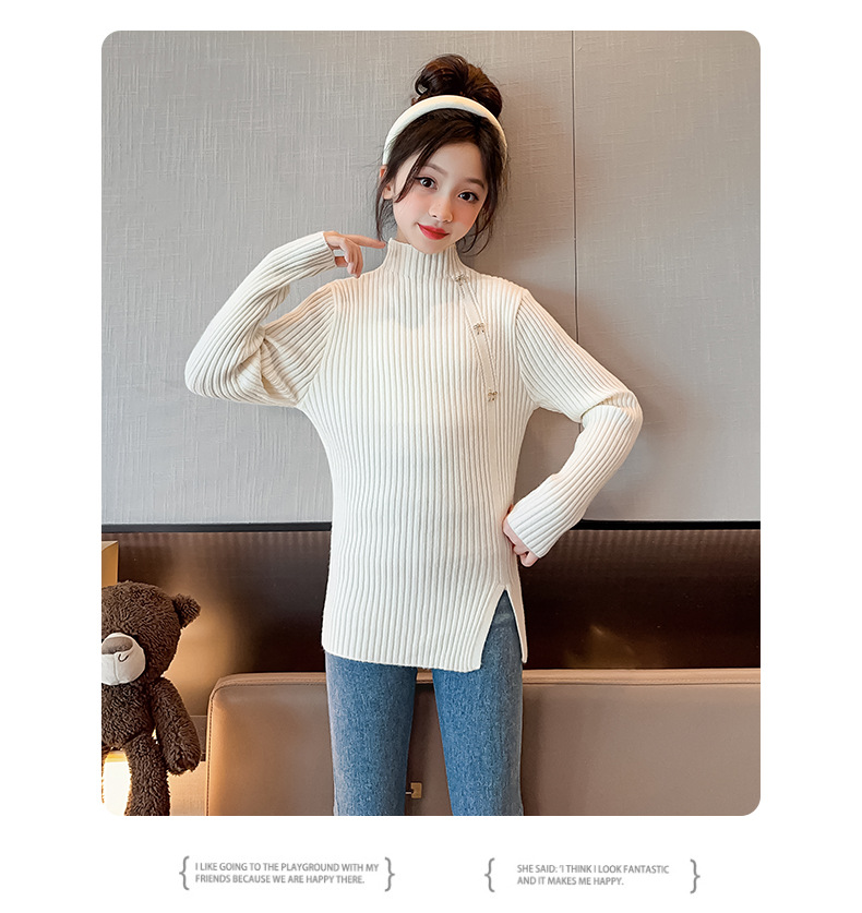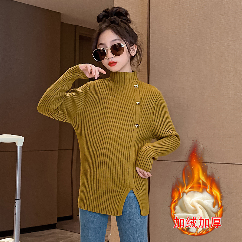 여아 가을/겨울 기모 두꺼운 스웨터 2023 새로운 스타일 중대형 어린이 풀오버 베이스 셔츠 세련된 캐주얼 한국 스타일 유행스토어 가기