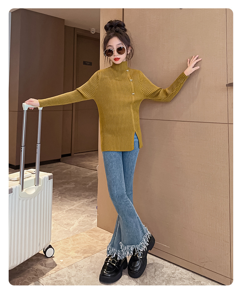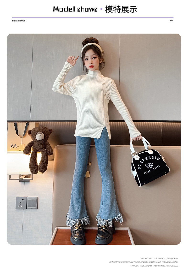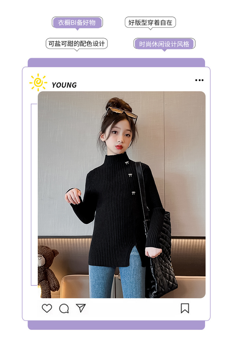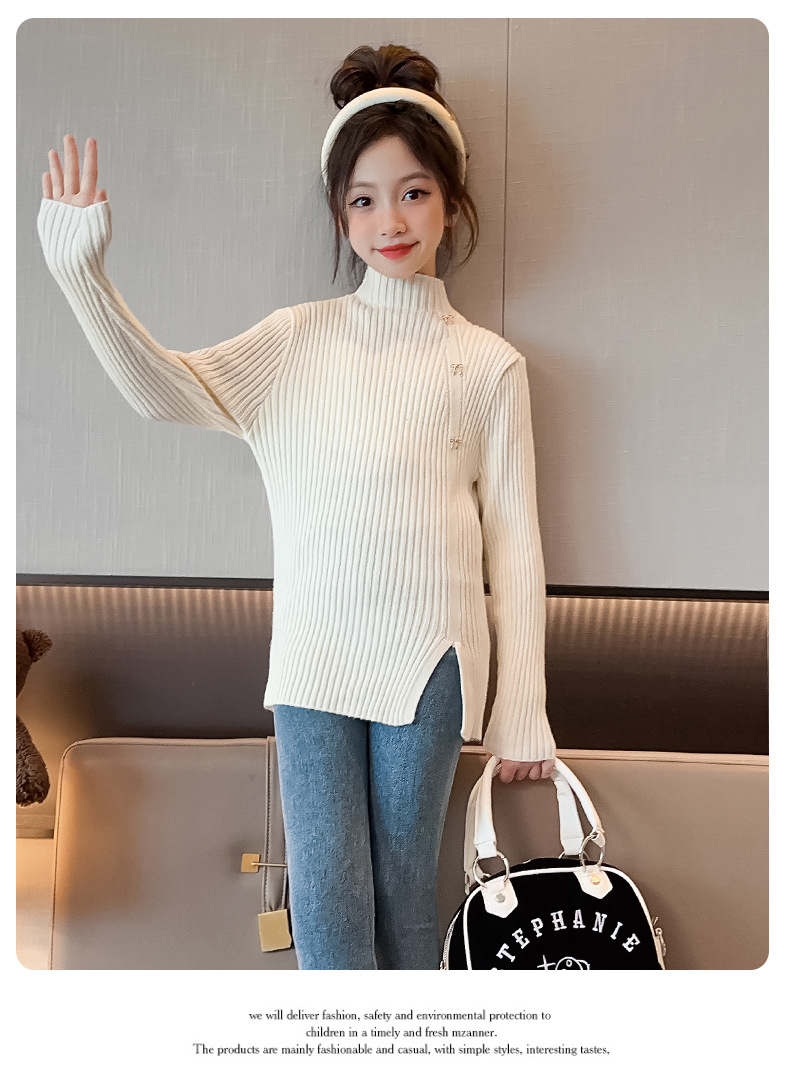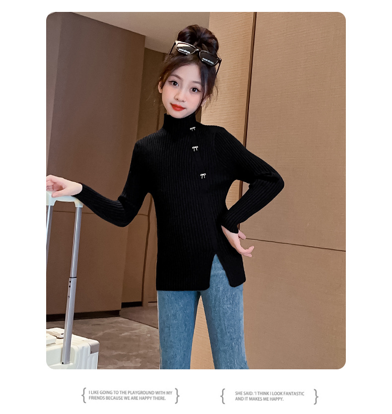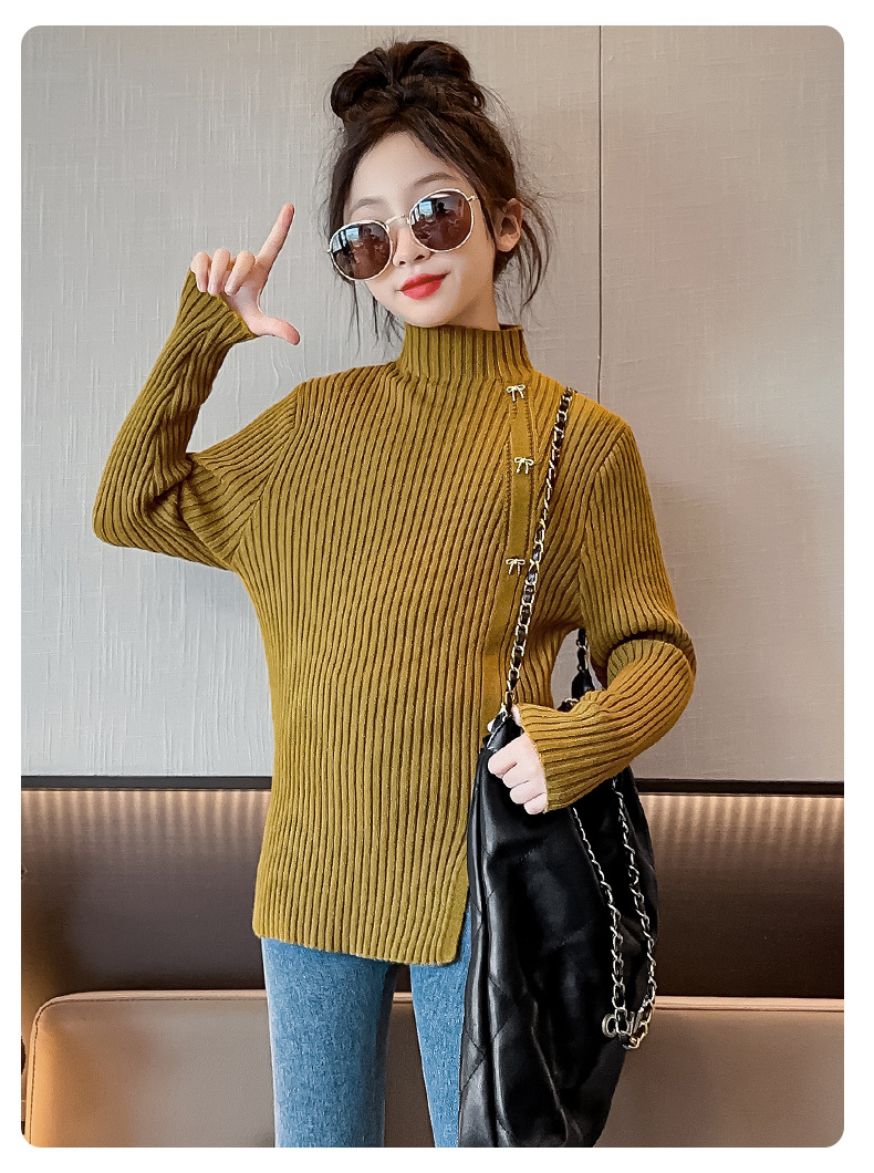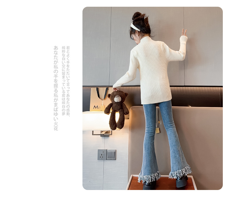 여아 가을/겨울 기모 두꺼운 스웨터 2023 새로운 스타일 중대형 어린이 풀오버 베이스 셔츠 세련된 캐주얼 한국 스타일 유행스토어 가기