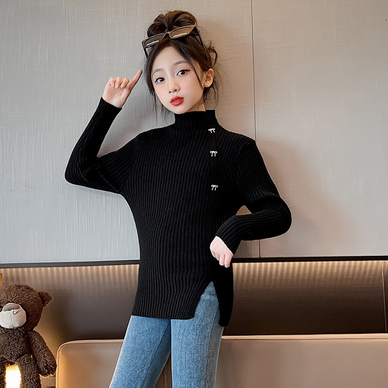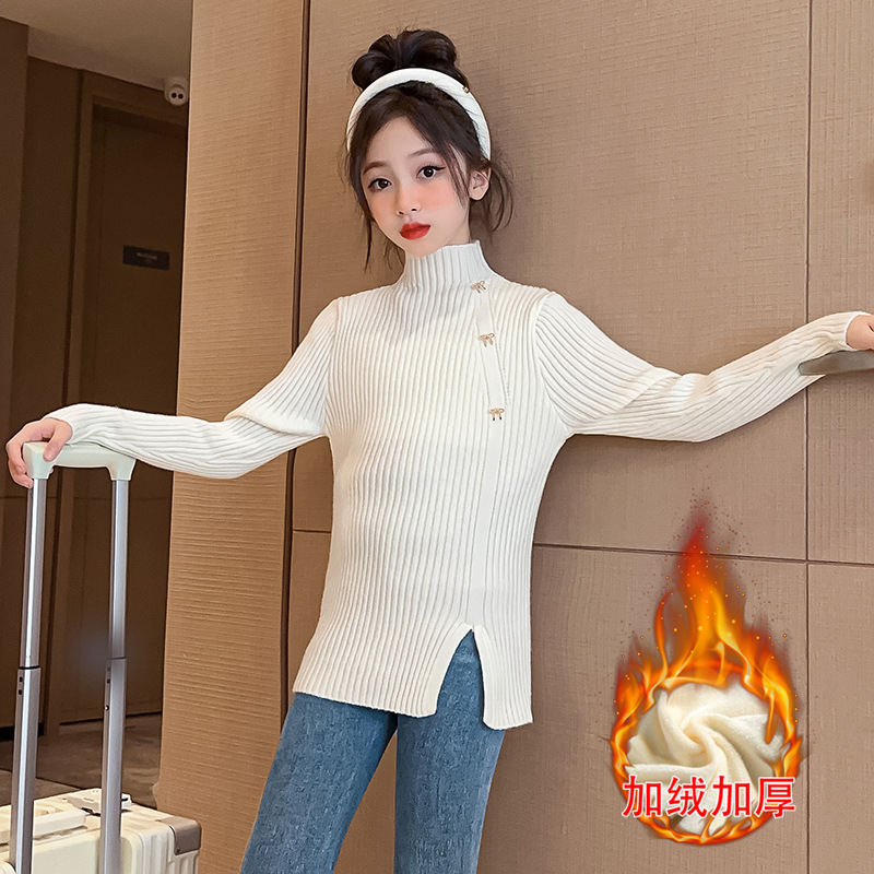 여아 가을/겨울 기모 두꺼운 스웨터 2023 새로운 스타일 중대형 어린이 풀오버 베이스 셔츠 세련된 캐주얼 한국 스타일 유행