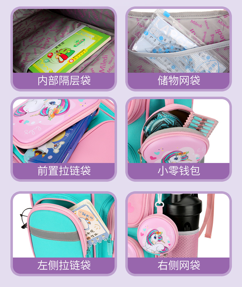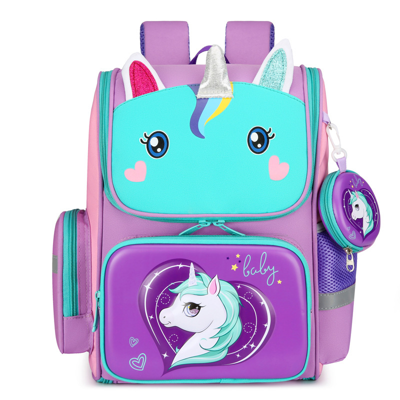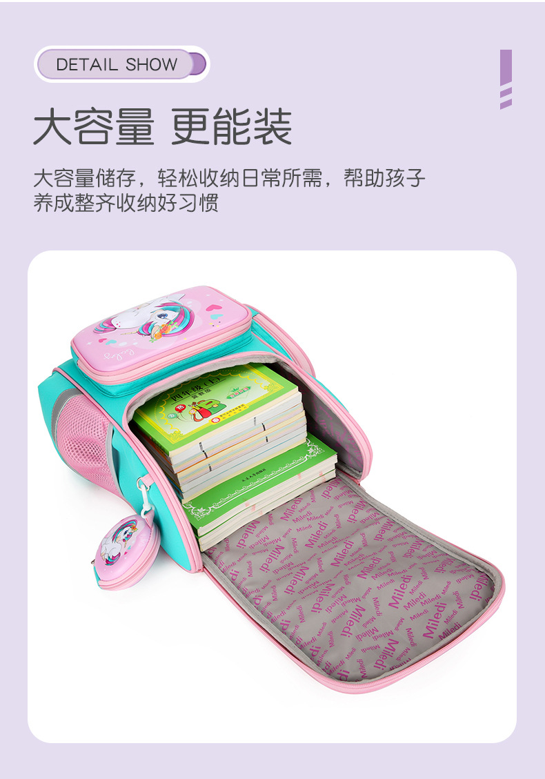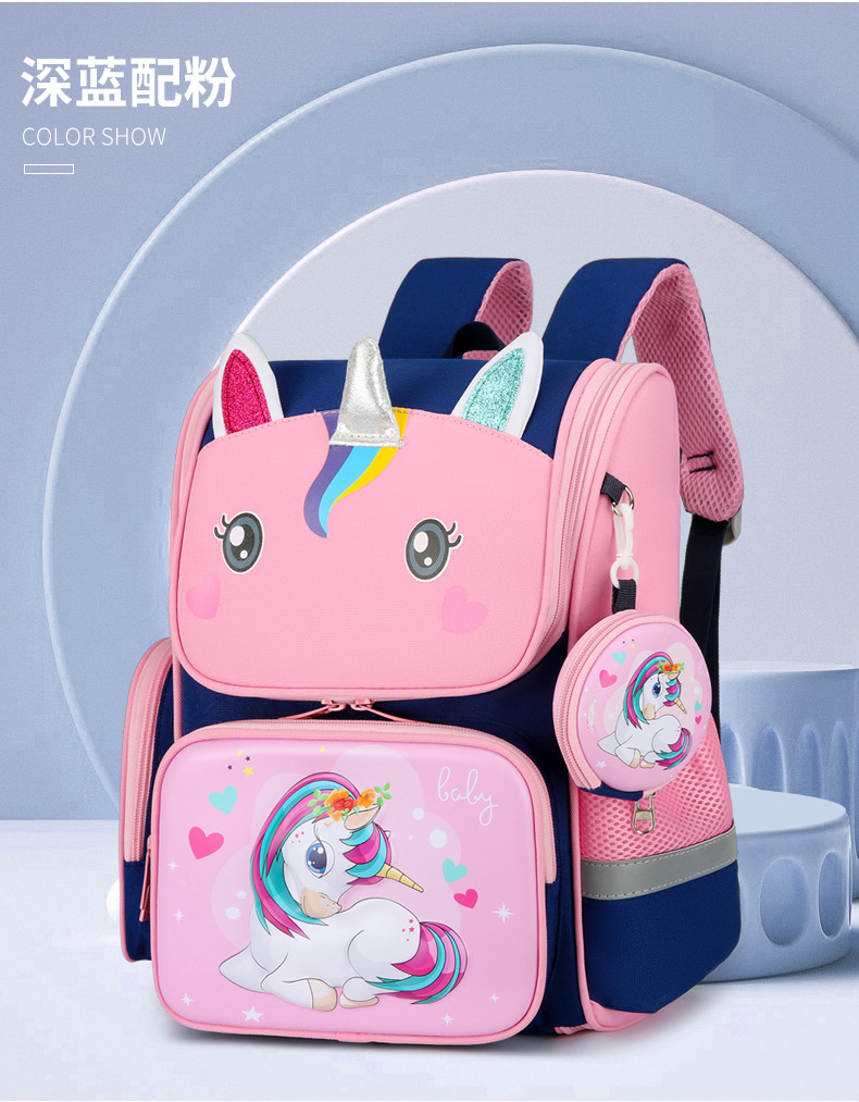 초등 학생을위한 유니콘 만화 책가방 1-6 학년 유치원 가방 귀여운 가벼운 남성과 여성의 능선 보호 어린이 책가방 6