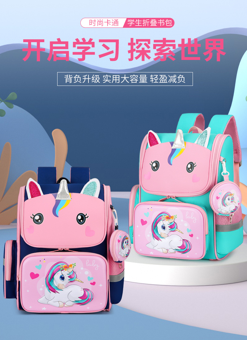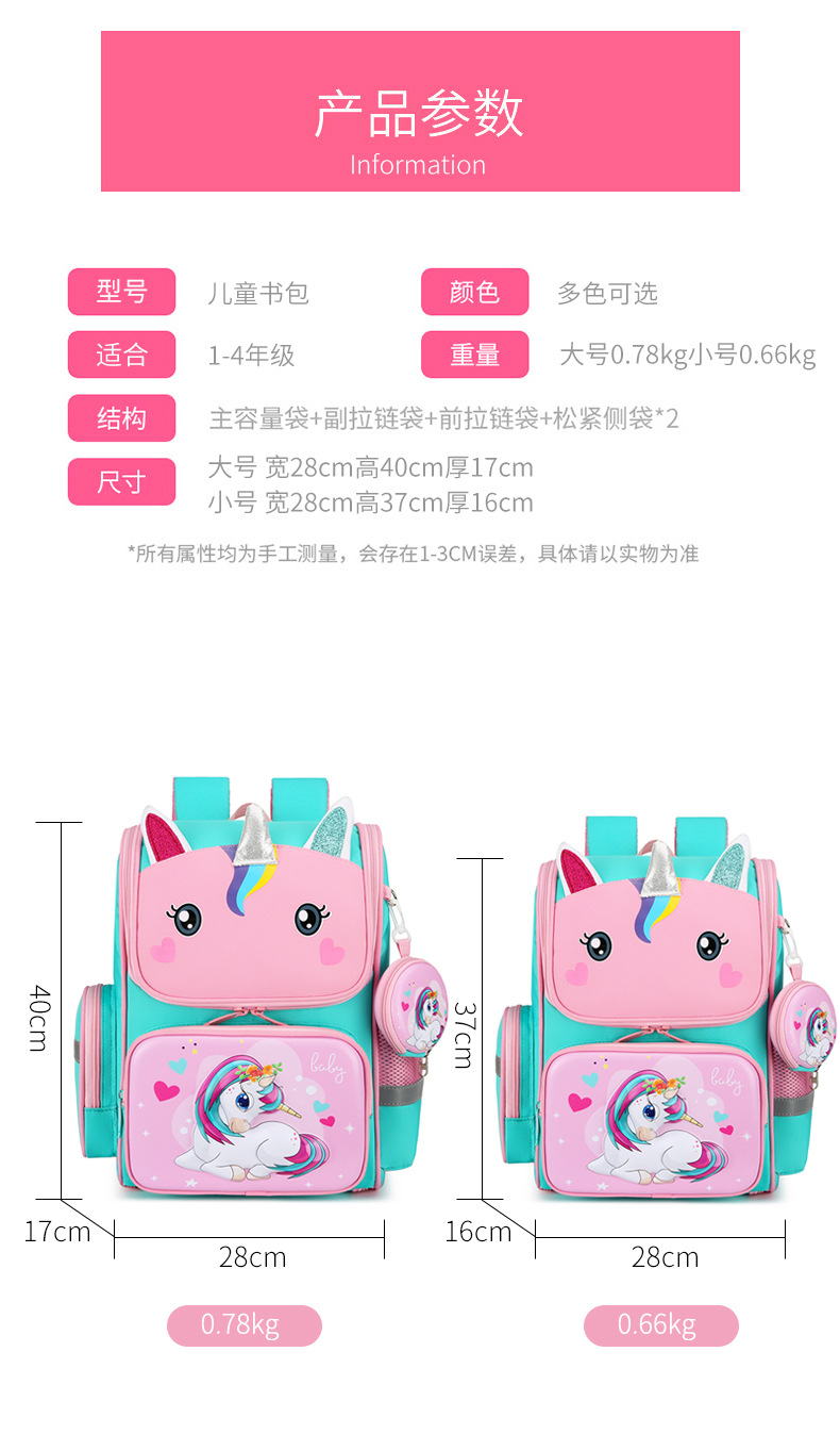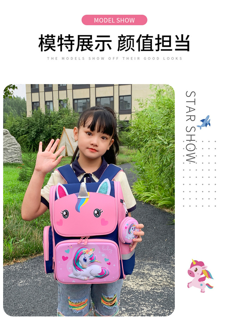 초등 학생을위한 유니콘 만화 책가방 1-6 학년 유치원 가방 귀여운 가벼운 남성과 여성의 능선 보호 어린이 책가방 6스토어 가기
