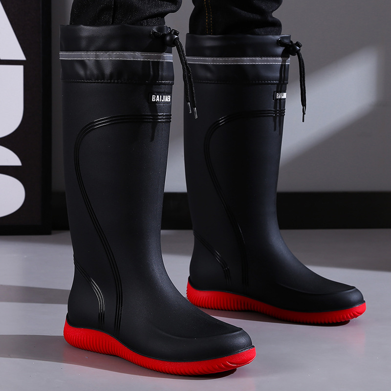 고급 장화 남성용 붕괴 방수 신발 높은 긴 튜브 미끄럼 방지 장화 번들 작업 신발 고무 신발 낚시 신발
