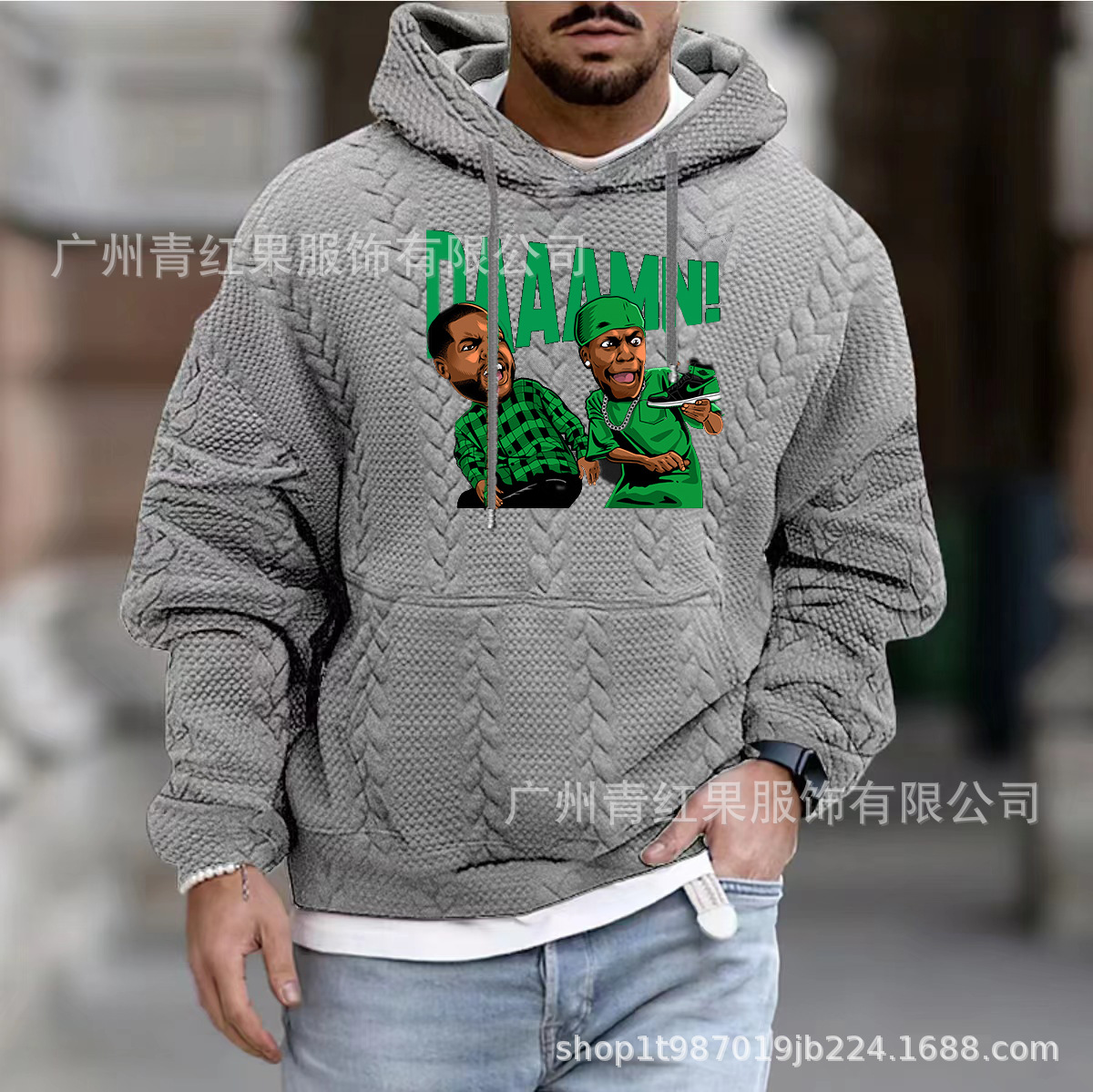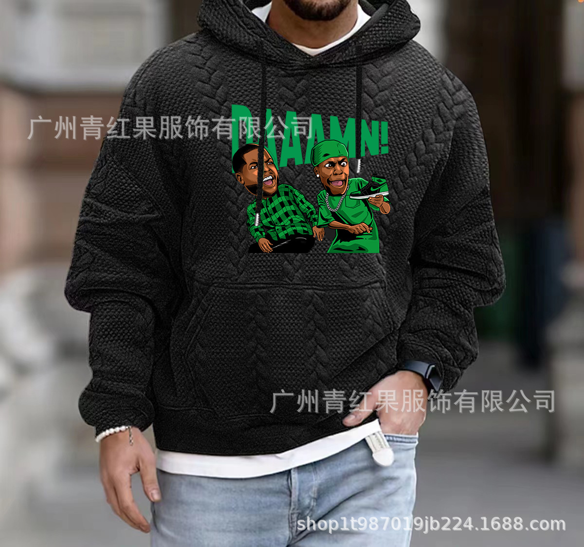 2025년 신상 가을 남성용 빅사이즈 캐주얼 스타일 자켓 자카드 후드 끈 달린 긴팔 스웨트셔츠 니트 남성복스토어 가기
